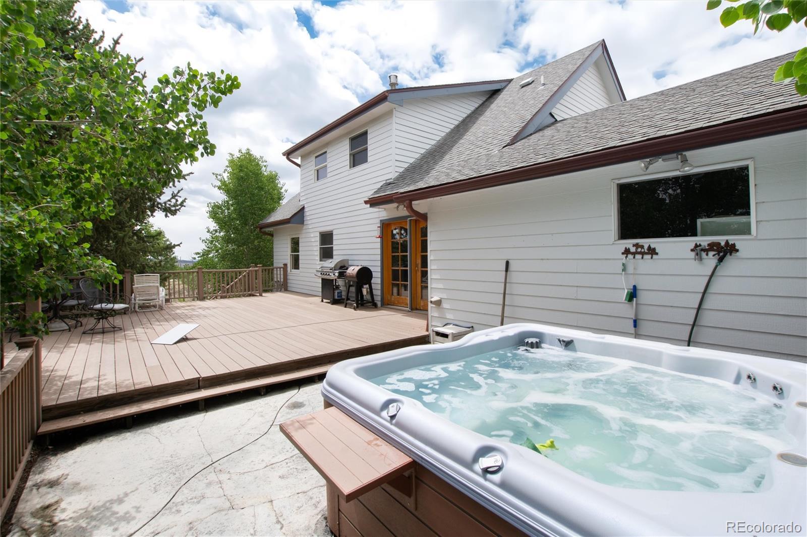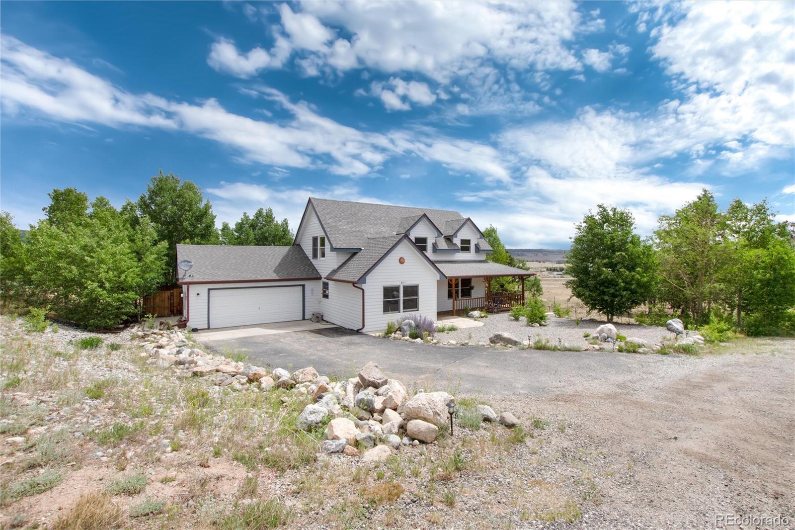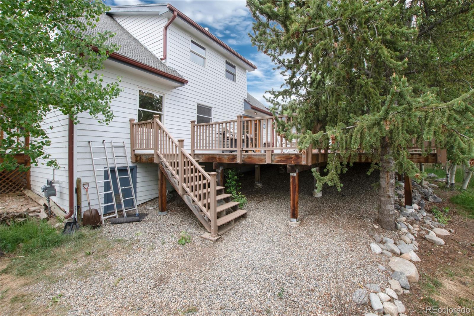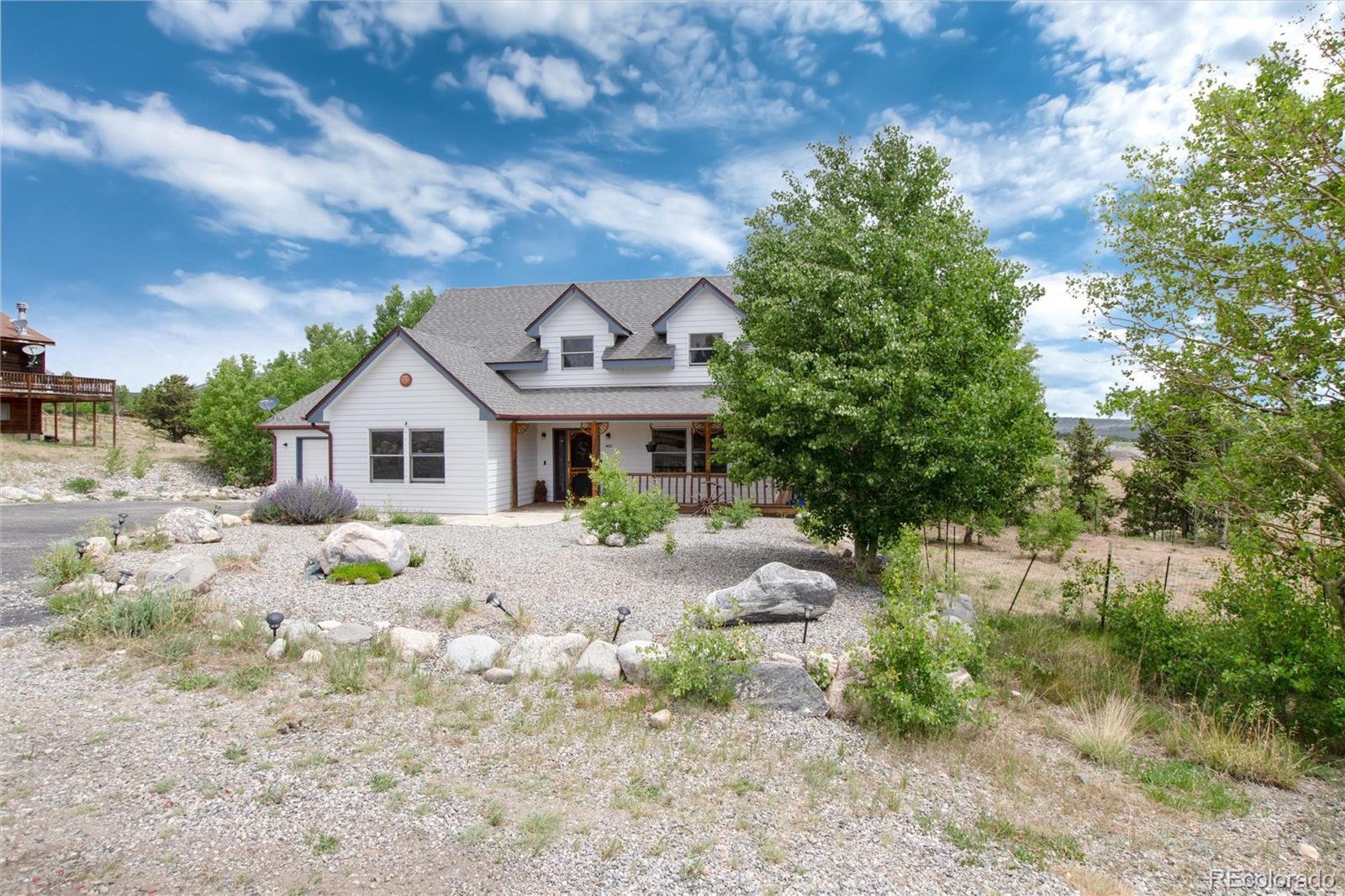 Welcome home! This charming cape-style house perfectly blends privacy and convenience, featuring a fantastic location and a spacious 2-car garage. Tucked away on a quiet cul-de-sac road adjacent to Fairplay's ball fields, you can enjoy peace and quiet while being just moments away from the recreation center and a short stroll into town for schools, restaurants, bars, and unique gift shops. Relax on the front covered porch as you soak in sunsets or entertain guests on the wraparound deck with nice views. The private hot tub on the heated patio is the ideal spot for stargazing, even on those chilly nights. Step inside to discover a well-designed living space that includes a cozy living room, an office/den/playroom, an inviting eat-in kitchen, and a dining area that flows seamlessly through French doors onto the open deck. You'll also find a half-bath and the first of three bedrooms. Unique custom-painted murals in the powder room and den evoke the Colorado lifestyle. Upstairs, find the spacious primary bedroom complete with an en-suite, a second full bath, and a generously-sized third bedroom. Don’t miss this opportunity to own an in-town home that balances privacy and accessibility. Make this house your home today!