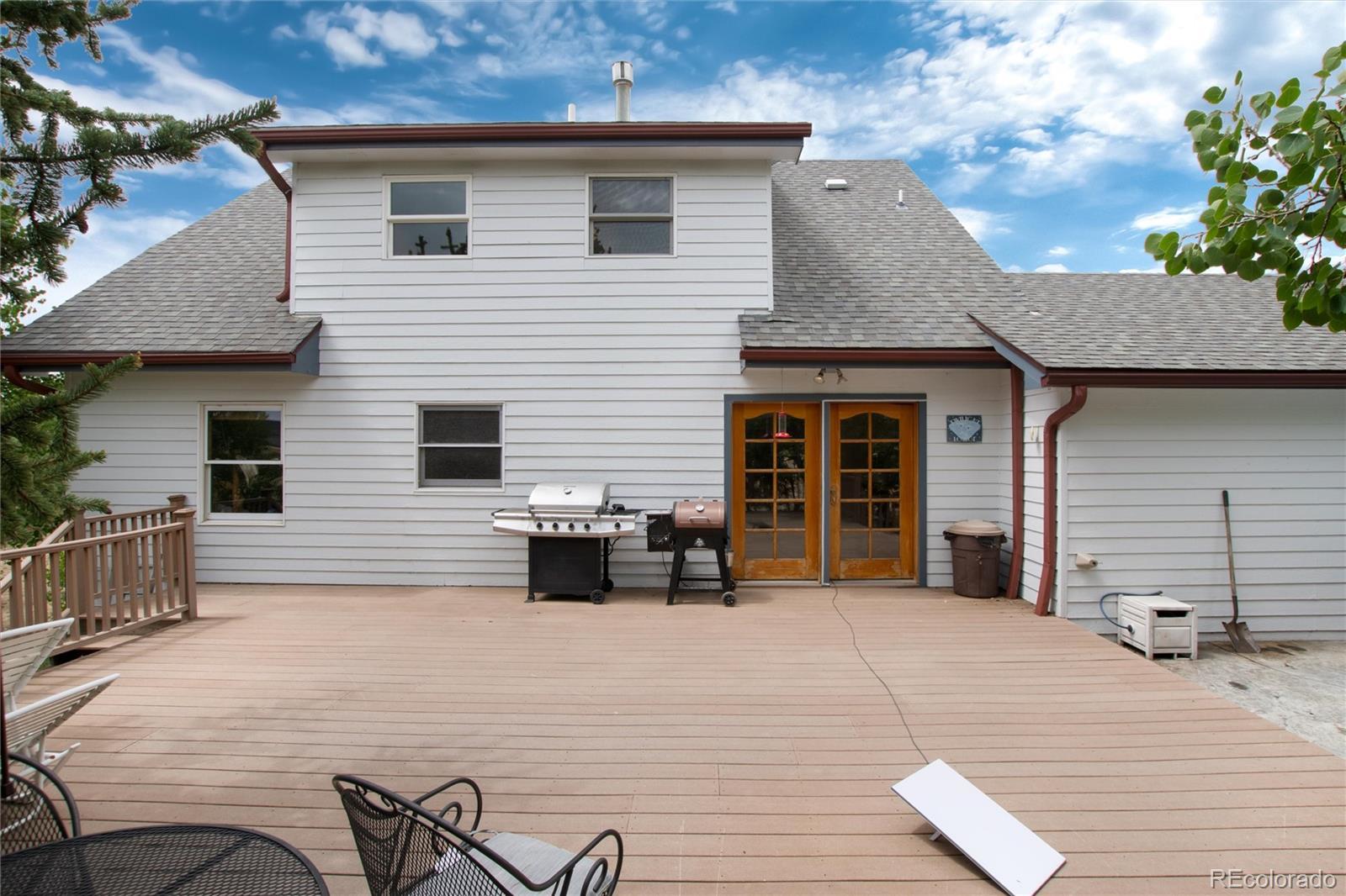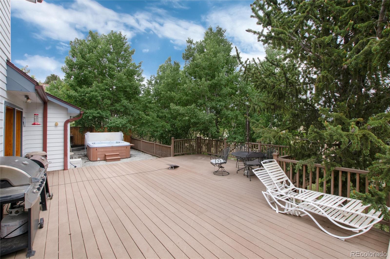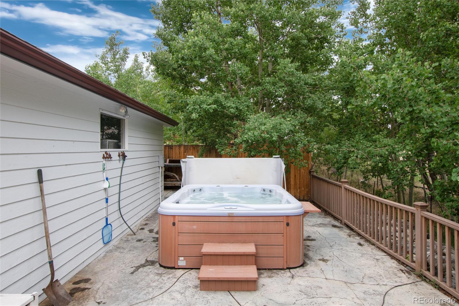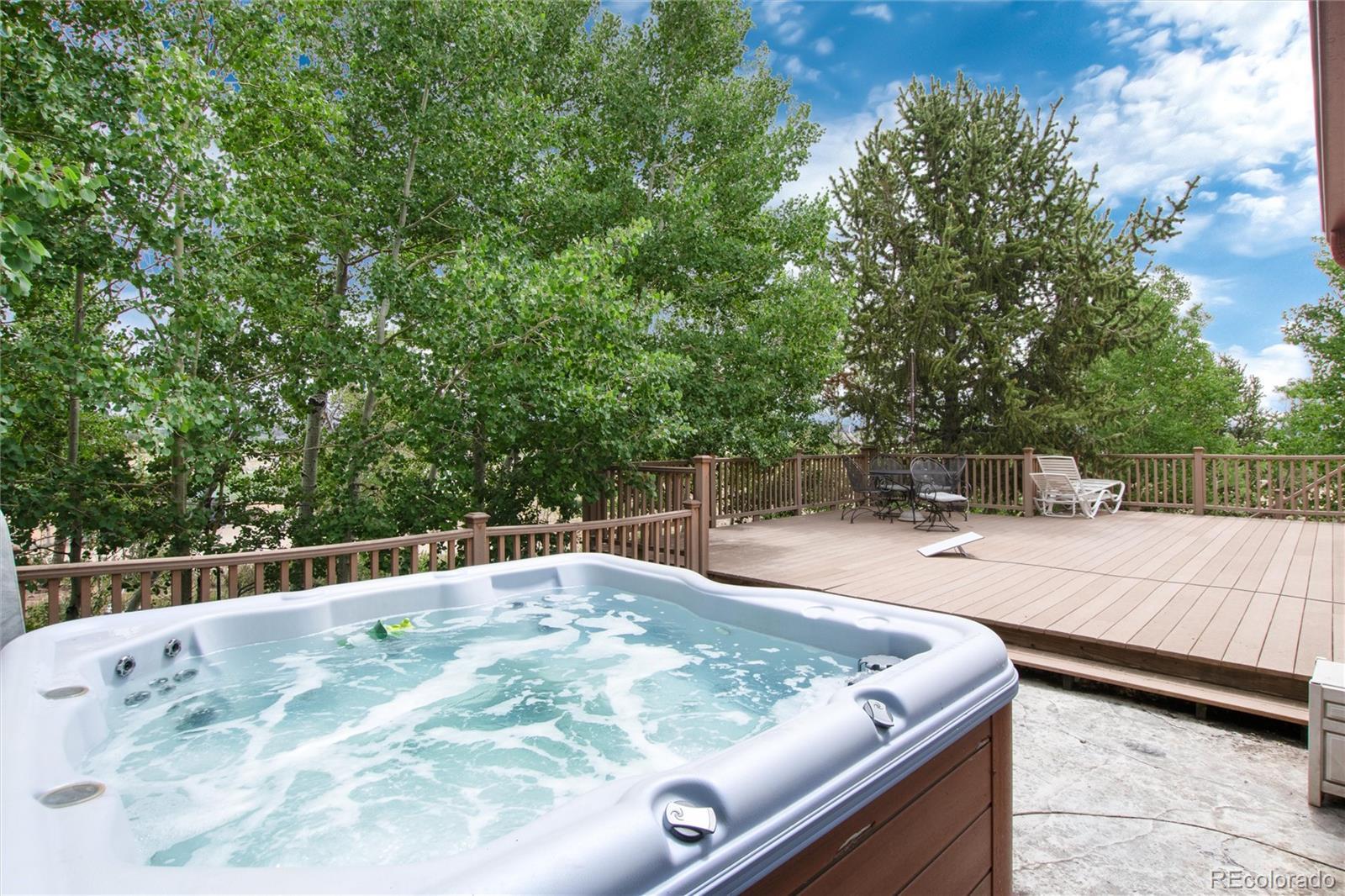 Welcome home! This charming cape-style house perfectly blends privacy and convenience, featuring a fantastic location and a spacious 2-car garage. Tucked away on a quiet cul-de-sac road adjacent to Fairplay's ball fields, you can enjoy peace and quiet while being just moments away from the recreation center and a short stroll into town for schools, restaurants, bars, and unique gift shops. Relax on the front covered porch as you soak in sunsets or entertain guests on the wraparound deck with nice views. The private hot tub on the heated patio is the ideal spot for stargazing, even on those chilly nights. Step inside to discover a well-designed living space that includes a cozy living room, an office/den/playroom, an inviting eat-in kitchen, and a dining area that flows seamlessly through French doors onto the open deck. You'll also find a half-bath and the first of three bedrooms. Unique custom-painted murals in the powder room and den evoke the Colorado lifestyle. Upstairs, find the spacious primary bedroom complete with an en-suite, a second full bath, and a generously-sized third bedroom. Don’t miss this opportunity to own an in-town home that balances privacy and accessibility. Make this house your home today!