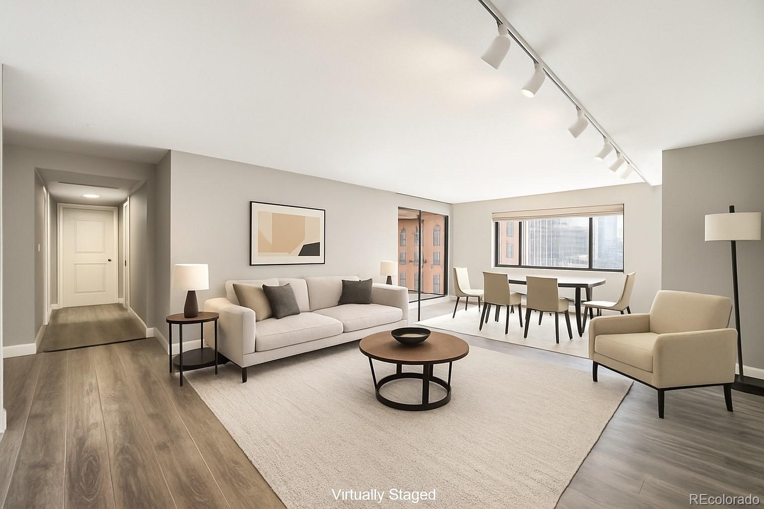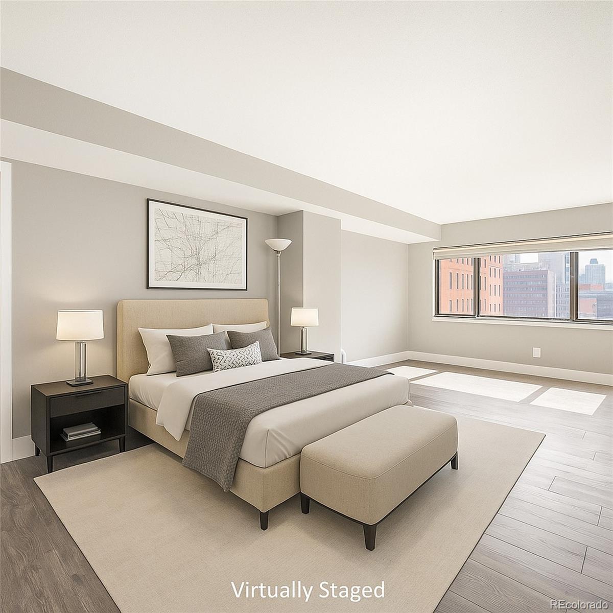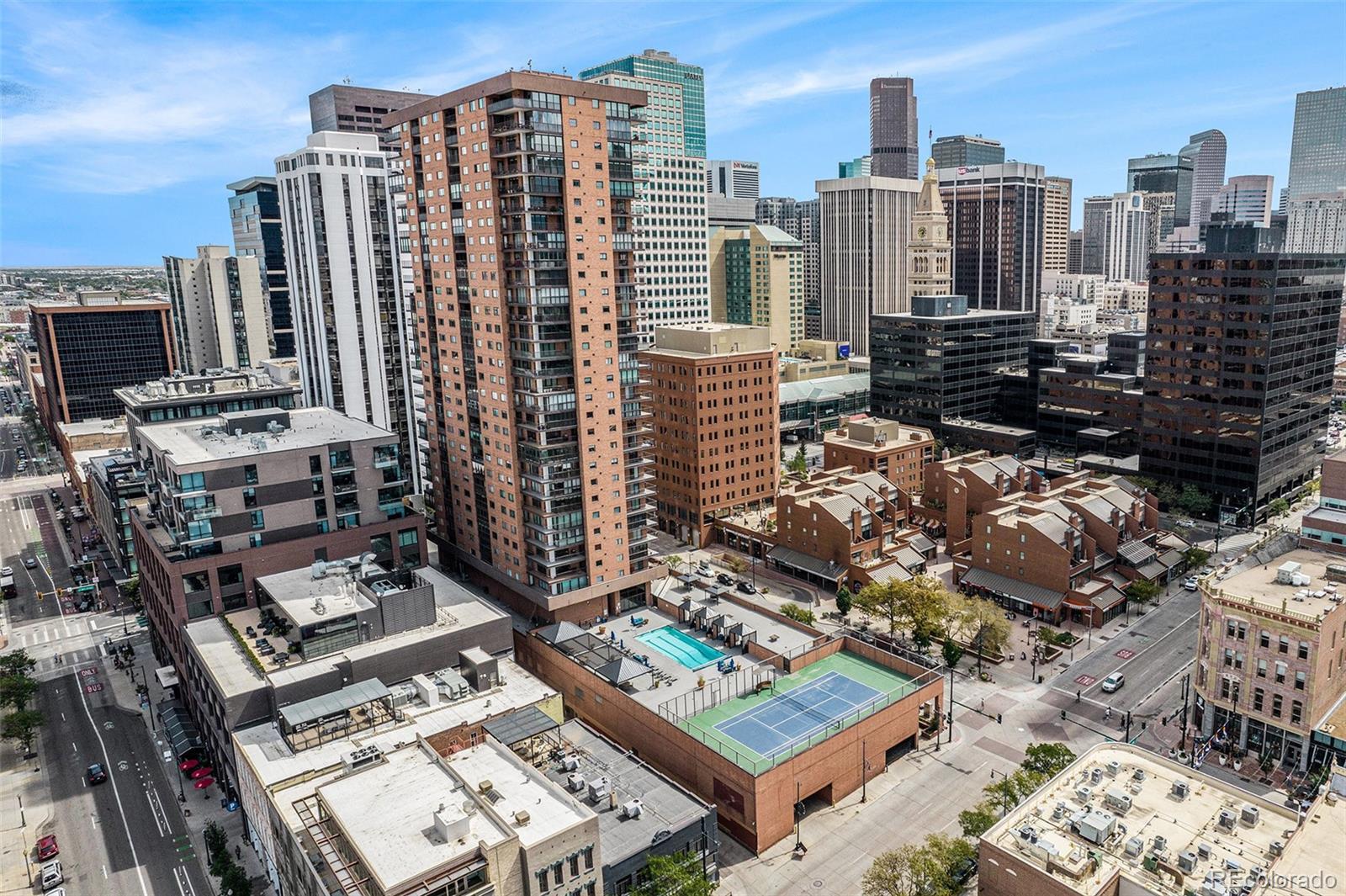 Come tour this gorgeous Condo located in one of downtown Denver’s favorite high rise buildings, Larimer Place. Situated in the heart of downtown, it provides easy access to everything! Restaurants, sporting events, shopping and more! This 2 bedroom unit is just over 1300 square feet (1351) with 2 recently updated bathrooms (the primary is en-suite). Both bedrooms have direct access to the large covered balcony that offers amazing city and mountain View’s. The kitchen has gleaming stainless appliances, center island and granite countertops. The community offers 24 hour security, Concierge services, tennis/pickleball court, fitness center, sauna/spa and pool complete with cabanas and interior and exterior lounging areas for social gatherings. The unit includes one parking space in the secure subterranean garage.