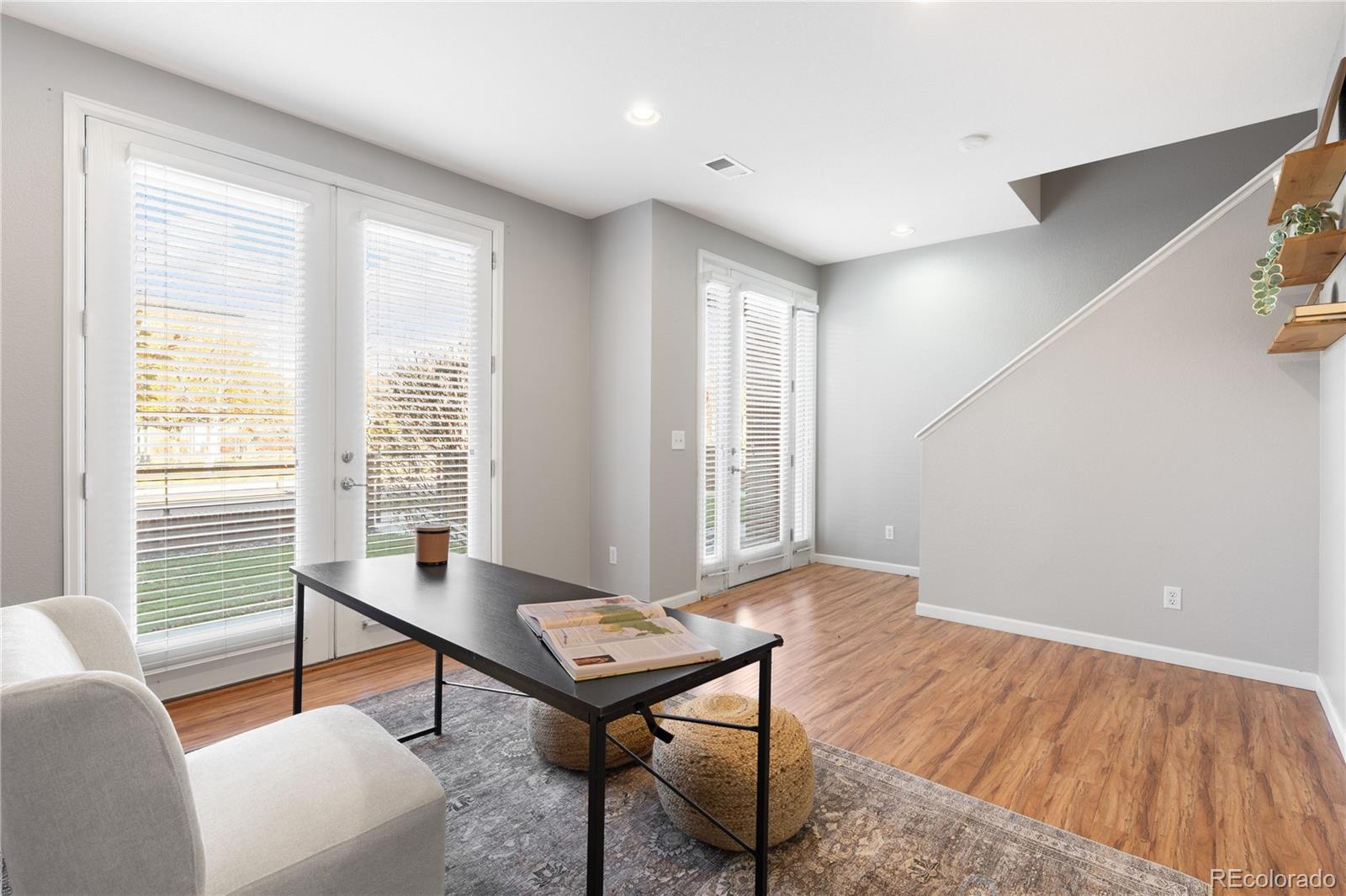 Move-in ready and beautifully updated, this stunning three-story townhome in the heart of Bradburn Village offers the perfect blend of style, comfort, and convenience. Ideally located directly across from the community pool, clubhouse, and a picturesque tree-lined park, this home delivers the ultimate walkable lifestyle in one of Westminster’s most sought-after neighborhoods. The bright entry level features a flexible office or guest space with a powder bath, ideal for remote work or hosting visitors. The open-concept main floor is filled with natural light and showcases a spacious living area with a cozy three-sided fireplace, along with a modern kitchen featuring quartz countertops, stainless steel appliances, a waterfall island, and tons of storage. Two balconies—one off the kitchen and another off the living room—plus a charming front patio and fenced yard offer plenty of options for outdoor relaxation and entertaining. Upstairs, the primary suite provides a private retreat with vaulted ceilings, a walk-in closet, and a luxurious five-piece bath with a soaking tub. Two additional bedrooms, a full bath, and a convenient laundry room complete the upper level. The attached two-car garage, plus extra guest and street parking, make daily living easy. HOA dues cover exterior maintenance, landscaping, and snow removal—creating a truly low-maintenance, lock-and-leave lifestyle perfect for travelers or those seeking effortless living. Enjoy access to neighborhood amenities including a lifeguarded pool, tennis courts, clubhouse, community garden, and scenic trails. Located in the top-rated Adams 12 Five Star School District and minutes from Whole Foods, shops, restaurants, and major highways, this home combines modern living with small-town charm. Make this your new home and start living your best Colorado life right away.