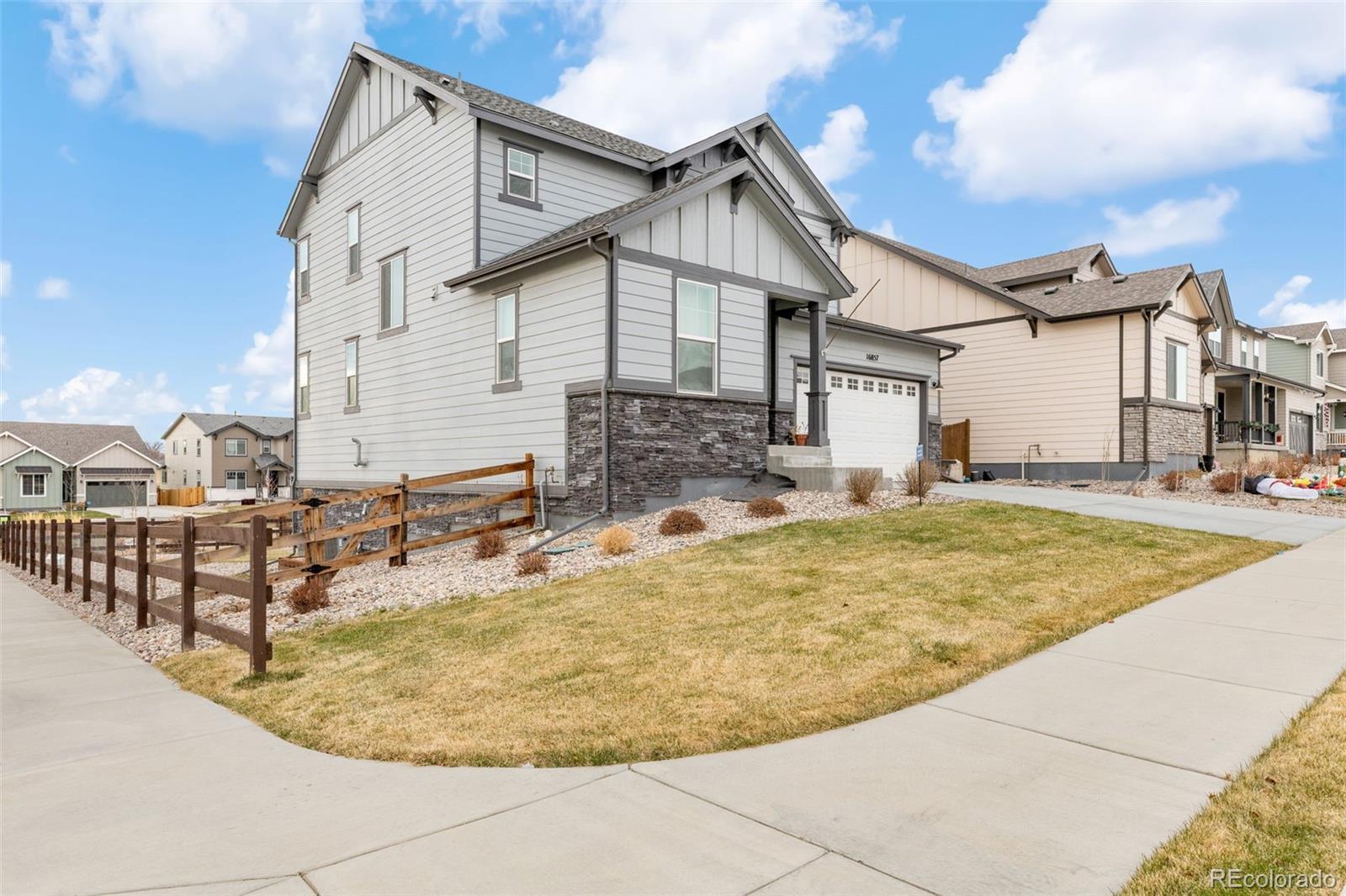 Welcome to this spacious and beautifully designed two-story home perfectly positioned on an east-facing, large corner lot with gorgeous mountain views. Offering approximately 3,201 sq. ft., this home delivers an ideal blend of functionality, comfort, and style. The main level features a private study, convenient powder bath, a two-bay garage, and an open-concept layout that seamlessly connects the kitchen, dining area, and great room. The kitchen is a standout, showcasing 42" Maple Lancaster cabinets, a large entertaining island, and plenty of workspace for everyday living or hosting gatherings. Upstairs, the second level of the Jackson floor plan offers a generous loft, perfect for a second living space, play area, or media room. You’ll also find three well-sized bedrooms, two full bathrooms, and a conveniently located laundry room. The home also features an unfinished walkout basement, providing incredible storage options and the potential to finish and create even more living space in the future. Situated on a corner lot backing to a small neighborhood park, this home combines privacy, views, and outdoor space—truly a fantastic setting.