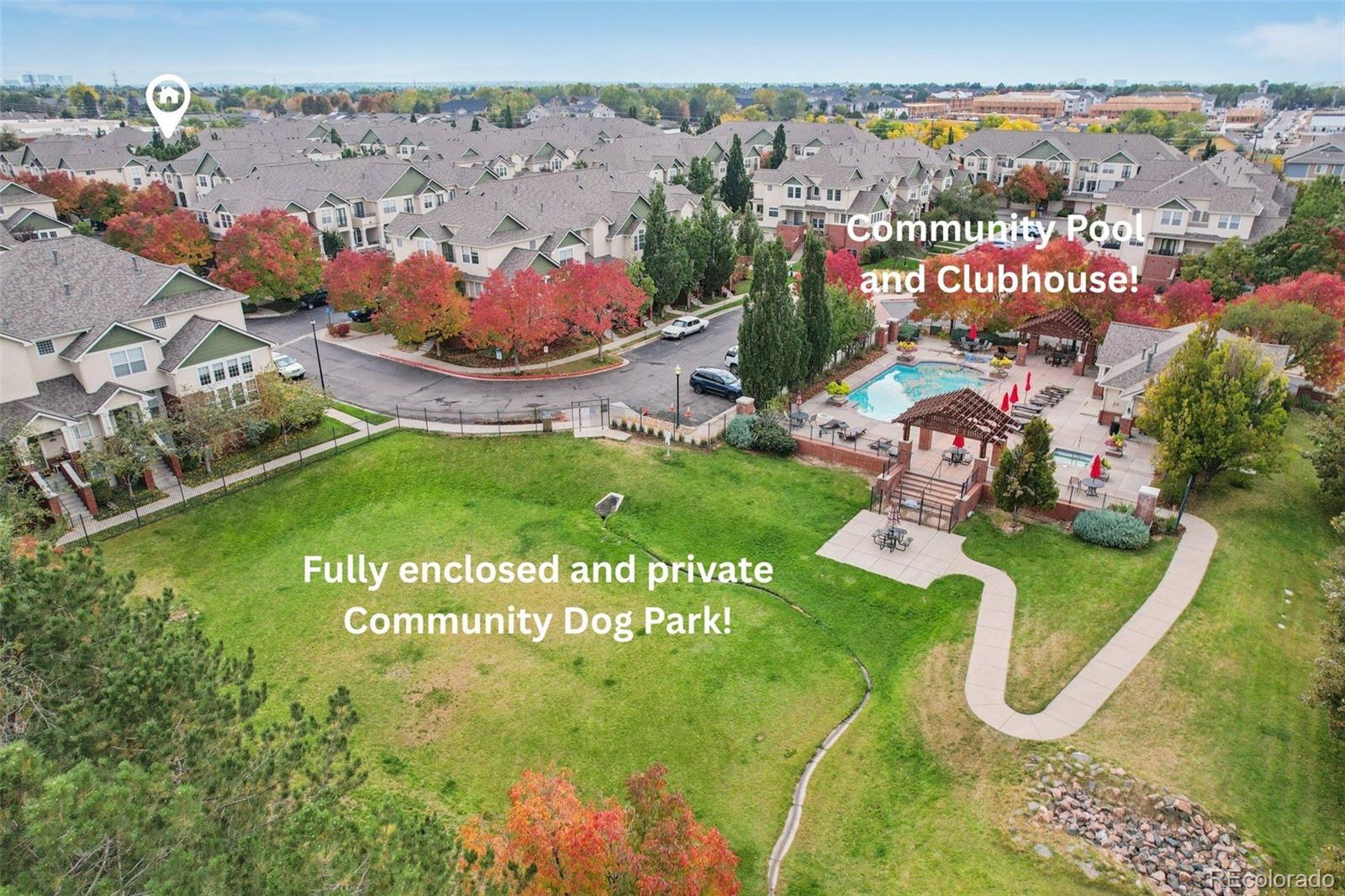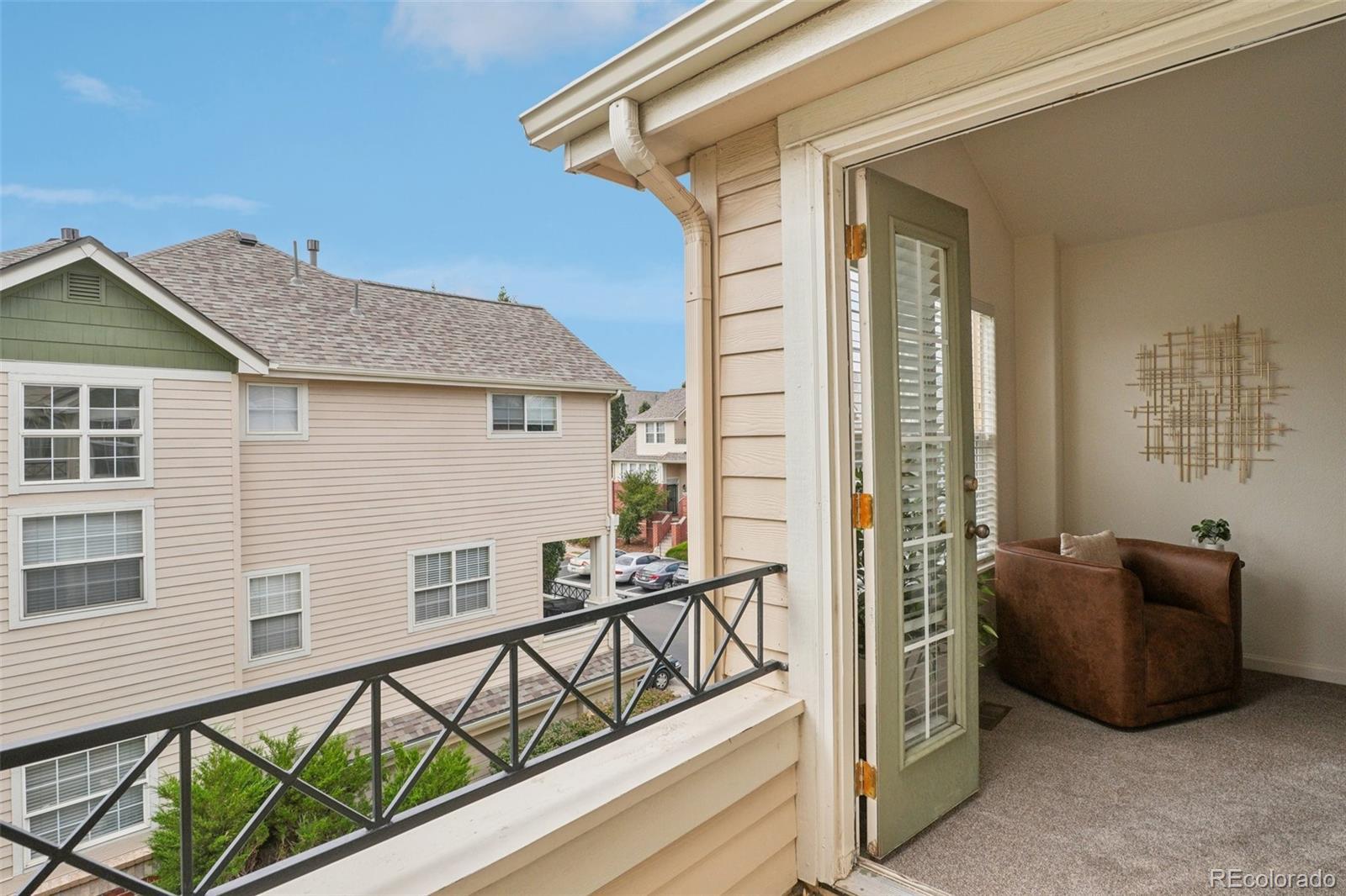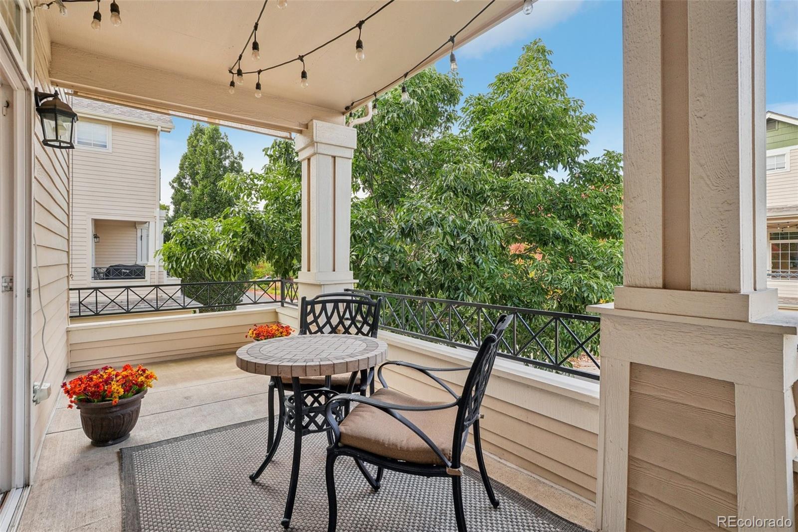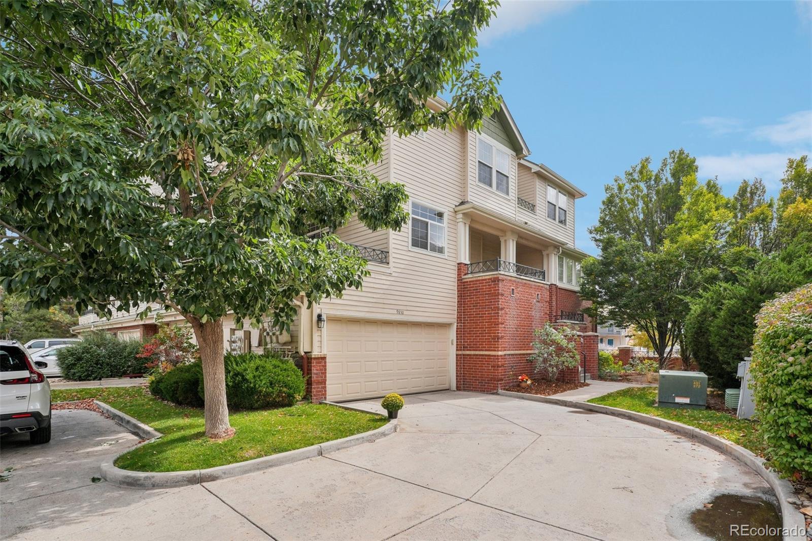 End unit, multiple balconies, resort-style pool, and private fully enclosed dog park — this Kensington townhome and community is an exceptional opportunity in value, living space, and location! Boasting the largest floorplan in the neighborhood, this home lives like a single-family residence and is ideal for flexible living, roommates (house hack!), or anyone craving room to spread out. The thoughtful split-level layout provides functional separation and privacy across every floor. Entering through the extended two-car garage with a dedicated driveway and storage bump-out, an oversized storage/coat closet awaits and is the perfect catch-all. The lower level lives like its own suite, with laundry, storage, a garden-level bedroom, and attached full bath—great for guests, roommates, or a private workspace. The main levels provide generous living and dining spaces for both everyday routines and special gatherings. A dedicated entertainment wall grounds the airy living room, and a convenient powder bath is tucked nearby. The dedicated dining area opens to its own private balcony, while the kitchen impresses with ample cabinetry, eat-in potential, and direct access to a large outdoor space perfect for grilling and al fresco dining. Upstairs, the primary suite is spacious and serene with vaulted ceilings, a cozy reading nook, private balcony, five-piece en-suite bath, and a huge walk-in closet you will love! A secondary bedroom, with it's own full bath, complete the upper level. Recent updates include: ROOF (2024), kitchen sink/faucet/disposal (2023), two upstairs toilets (2023), carpet (2022), furnace/AC with whole house humidifier (2019), washer and dryer (2018), and select light fixtures (newer). Conveniently located near Gardens on Havana, Costco, and countless restaurants and amenities, 9850 E Florida Place offers space, comfort, and an unbeatable lifestyle.