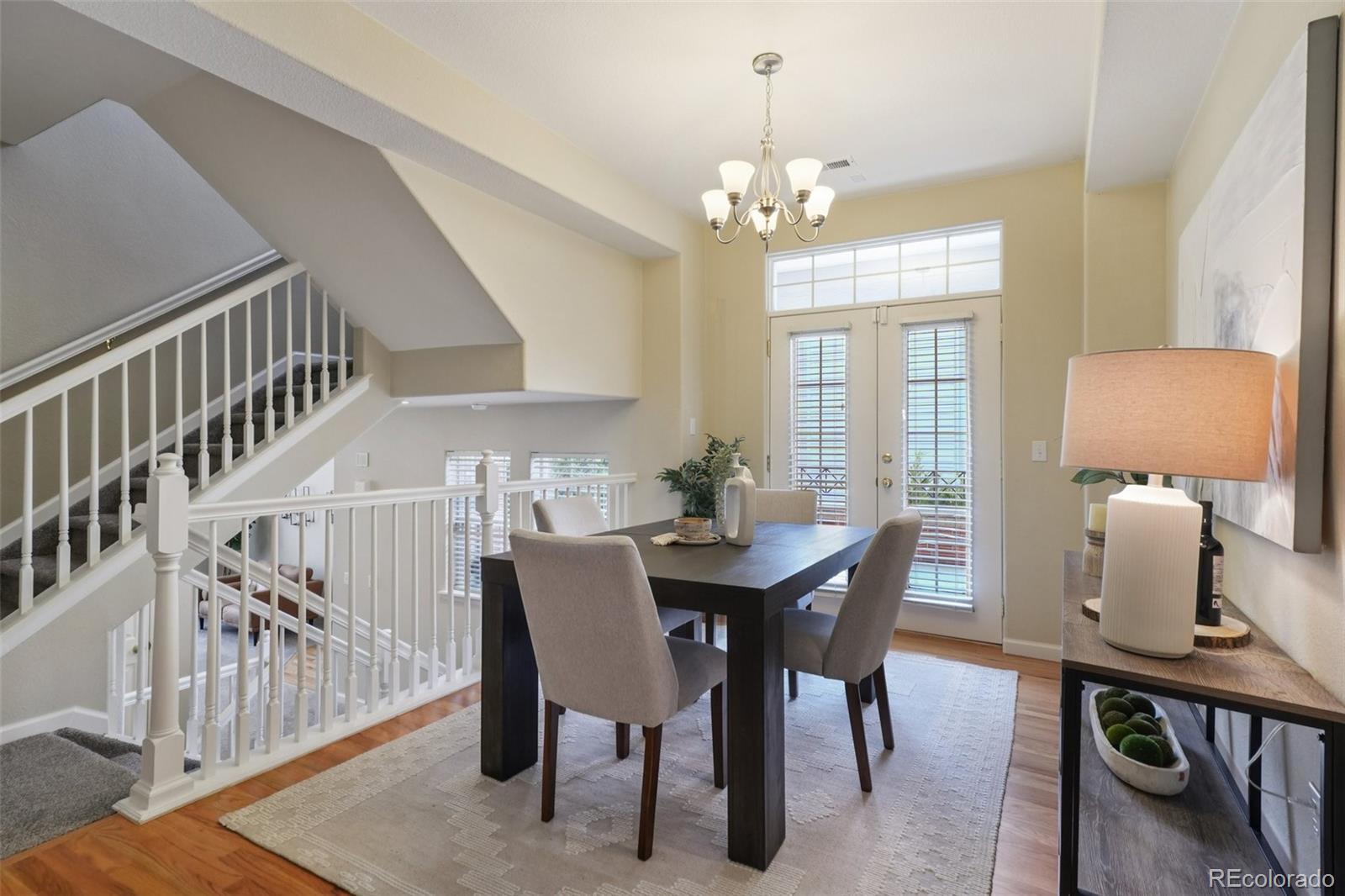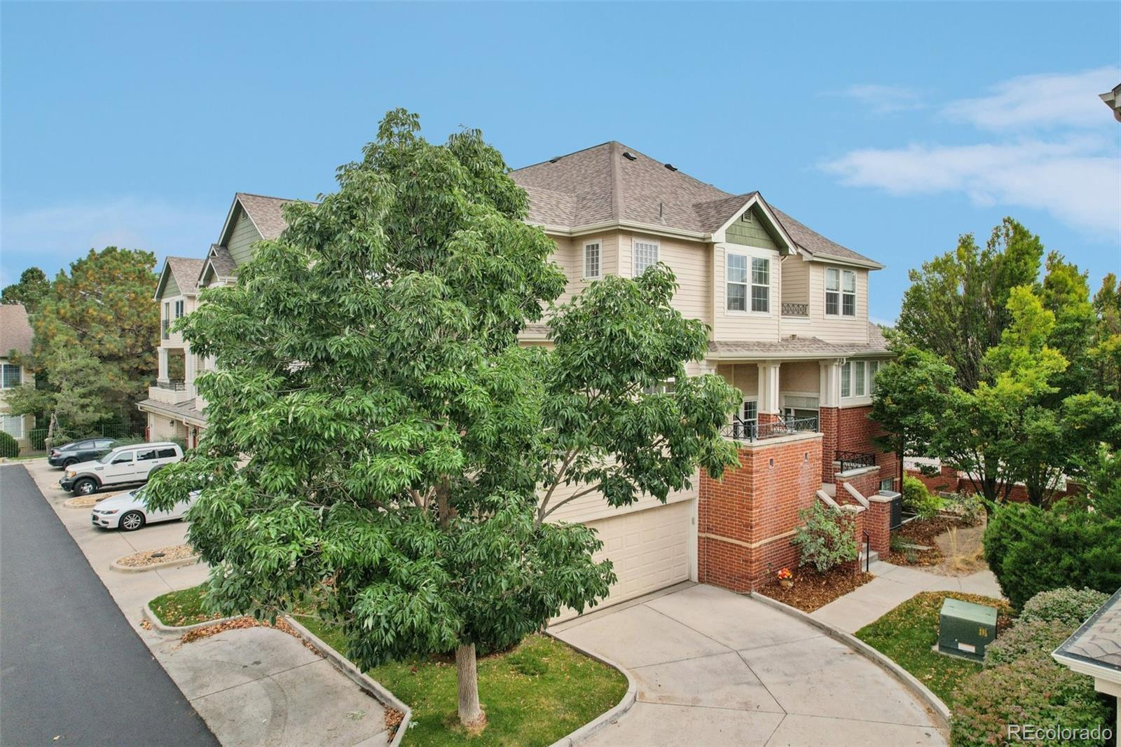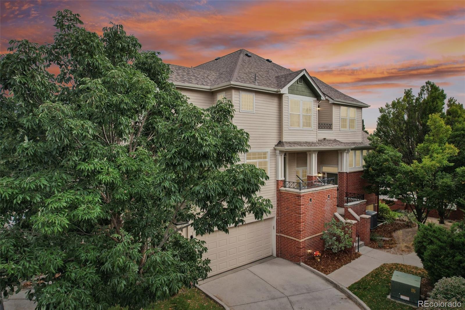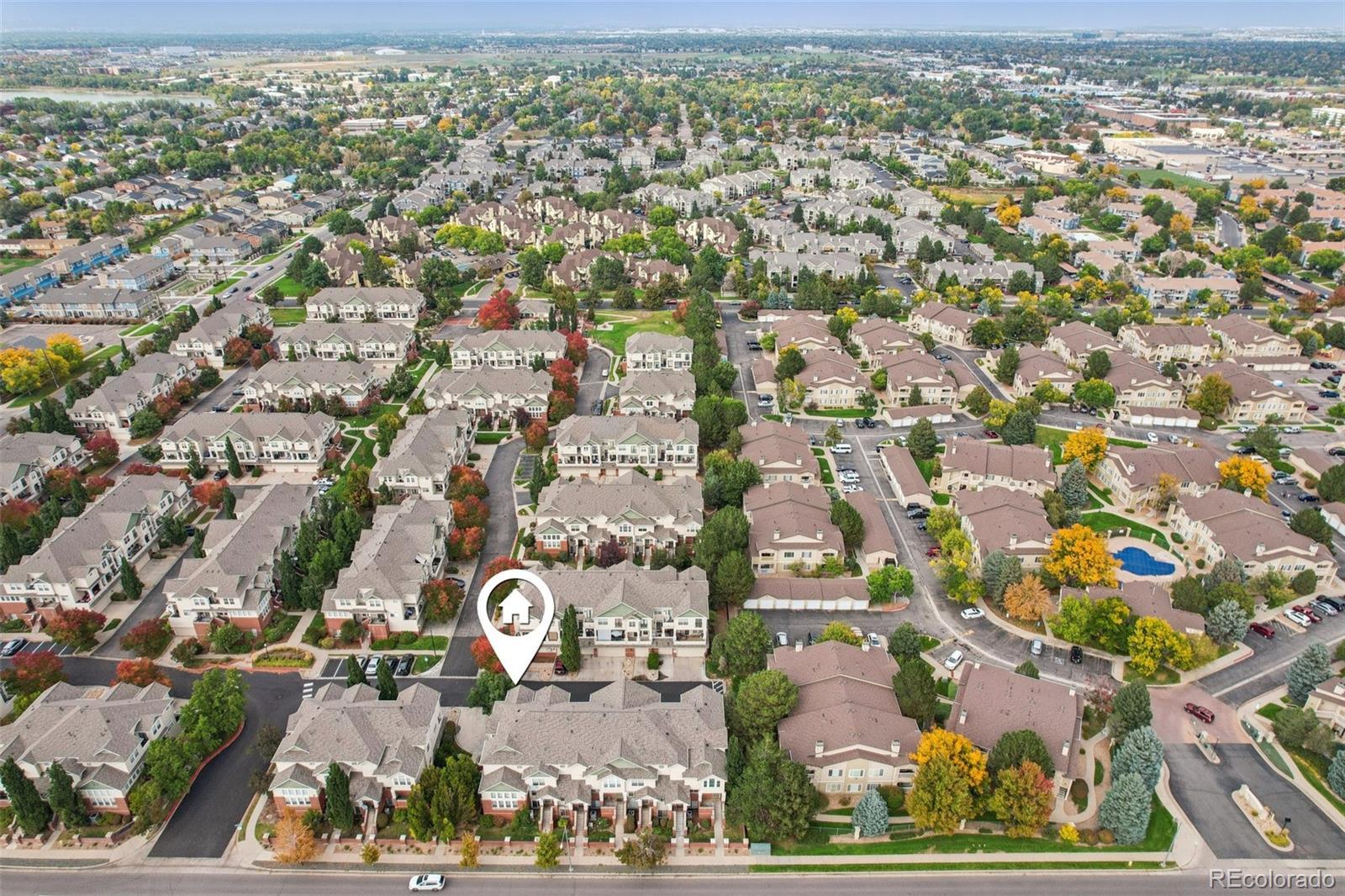 End unit, multiple balconies, resort-style pool, and private fully enclosed dog park — this Kensington townhome and community is an exceptional opportunity in value, living space, and location! Boasting the largest floorplan in the neighborhood, this home lives like a single-family residence and is ideal for flexible living, roommates (house hack!), or anyone craving room to spread out. The thoughtful split-level layout provides functional separation and privacy across every floor. Entering through the extended two-car garage with a dedicated driveway and storage bump-out, an oversized storage/coat closet awaits and is the perfect catch-all. The lower level lives like its own suite, with laundry, storage, a garden-level bedroom, and attached full bath—great for guests, roommates, or a private workspace. The main levels provide generous living and dining spaces for both everyday routines and special gatherings. A dedicated entertainment wall grounds the airy living room, and a convenient powder bath is tucked nearby. The dedicated dining area opens to its own private balcony, while the kitchen impresses with ample cabinetry, eat-in potential, and direct access to a large outdoor space perfect for grilling and al fresco dining. Upstairs, the primary suite is spacious and serene with vaulted ceilings, a cozy reading nook, private balcony, five-piece en-suite bath, and a huge walk-in closet you will love! A secondary bedroom, with it's own full bath, complete the upper level. Recent updates include: ROOF (2024), kitchen sink/faucet/disposal (2023), two upstairs toilets (2023), carpet (2022), furnace/AC with whole house humidifier (2019), washer and dryer (2018), and select light fixtures (newer). Conveniently located near Gardens on Havana, Costco, and countless restaurants and amenities, 9850 E Florida Place offers space, comfort, and an unbeatable lifestyle.