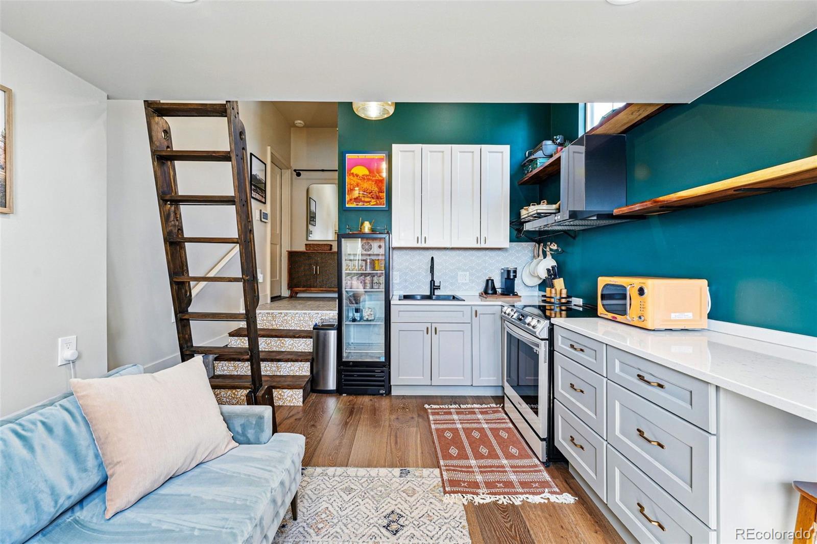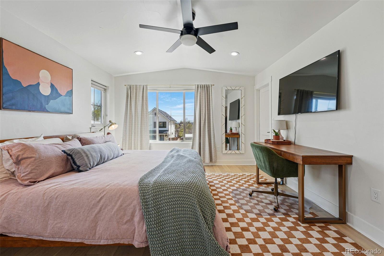 Welcome to 949 Raleigh Street—a modern farmhouse-style duplex designed for those who love to entertain, relax, and stay connected to the city. This bright and open 3 bed / 3 bath home offers a seamless flow from the spacious living area to a large deck and fully fenced private and newly landscaped yard—ideal for summer BBQs, cocktail nights with friends, or just enjoying a quiet coffee in the morning sun. The kitchen features quartz countertops, sleek GE appliances, and shaker cabinets. Hardwood floors add warmth and style, while big windows let in plenty of natural light. The primary suite is your personal retreat with a beautiful ensuite bath and a walk-in closet with natural light. On the entry level two additional bedrooms, a full bath, and a built-in desk nook create a versatile space ideal for remote work or hosting guests. Just steps away, the stylish converted garage studio adds even more flexibility—perfect as a cozy guest suite, home office, or creative retreat. Located on a quiet cul-de-sac next to Martinez Park, you’re just 3 blocks from the Perry Light Rail Station (Union Station in 12 minutes!) and minutes from Sloans Lake’s running trails, breweries, and hot spots like Odell and Edgewater Public Market. If you’ve been searching for the perfect blend of style, space, and city access—this is it.