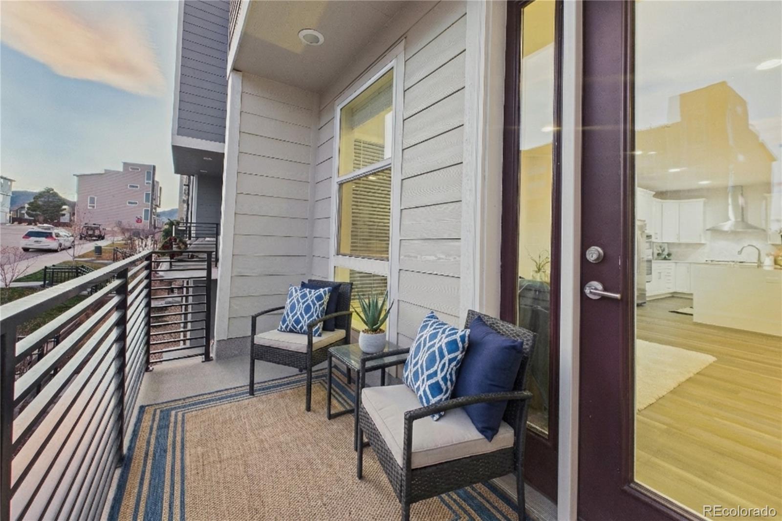 Modern design and thoughtful features come together in this light-filled home positioned close to the foothills, offering an ideal balance of outdoor access and city convenience. Expansive windows throughout the home bring in abundant natural light, creating an open and welcoming atmosphere across every level. The living room is wired for a sound system, making it easy to elevate everyday living or entertain with ease. The kitchen flows seamlessly into the living area, designed for both gathering and day-to-day use. The kitchen features a gas range cooktop, generous storage, seating space for bar stools, and room for a kitchen table. Step outside to enjoy multiple outdoor living areas, including a welcoming front porch, balcony, and an impressive rooftop deck with mountain and city views. The rooftop deck is equipped with a built-in gas valve, ideal for grilling or adding a fire feature. Additional highlights include a video security doorbell, a low-maintenance yard, and a location that places hiking and biking trails just minutes away. Downtown Denver is an easy drive, and convenient highway access makes commuting simple. This home offers a lifestyle defined by comfort, functionality, and proximity to Colorado’s outdoor amenities—all without sacrificing urban accessibility.