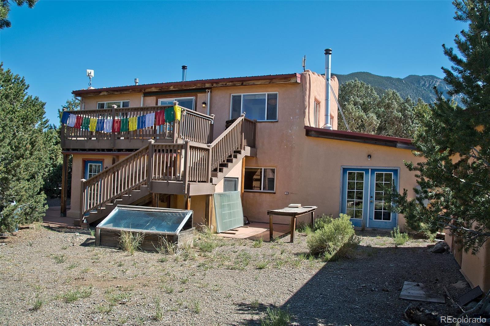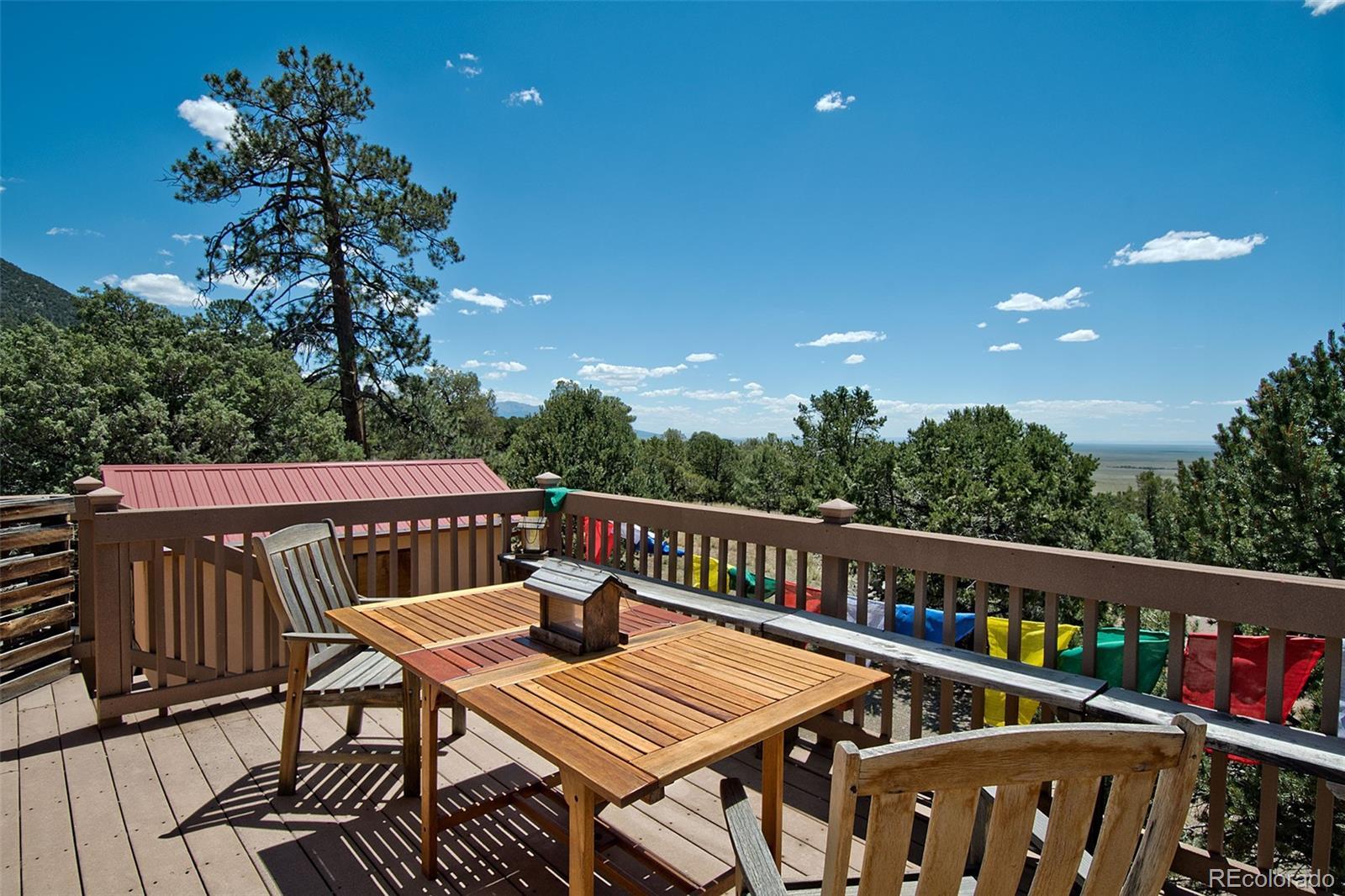 Nestled at the end of the subdivision, this one-of-a-kind 1.5-acre retreat offers not just a home, but a creative sanctuary. A true woodworker or artist's dream! The main floor features 2 bedrooms and full bath, a bright, welcoming floorplan with solid wood flooring, cozy wood-burning stove, and serene views from every window. The small but functional kitchen includes a window perfectly placed to frame the soaring peaks of the Sangre de Cristos—making even simple meals feel inspired. A deck off the living room opens to expansive views over the San Luis Valley—offering front-row seats to phenomenal sunsets and ever-changing skies. Walk downstairs, from the deck, through the entry room that leads to two dedicated workshop areas with a wood stove—perfect for woodworking, crafts, or teaching studio—plus a bonus living space, with bathroom and laundry area. Whether you're building, crafting, or dreaming, these spaces are ready to bring your vision to life. Step outside to wander the piñon-dotted lot, or head down the path to a charming 466 sq ft detached studio cottage with kitchenette and a full bath—ideal for guests, a rental, or private studio. There’s also a large storage shed for tools, gear, or gardening equipment. Located in Chalet 2 of the Baca Grande subdivision—famous for its wild beauty, starry nights, and spiritual quietude—this retreat offers endless potential for homesteaders, artists, or anyone seeking inspiration and space to breathe. Just moments from liberty trail that leads to the Great Sand Dunes National Park, this charming home offers unparalleled privacy, mountain views, and easy trail access right from your backyard. Surrounded by piñon, sage, and silence, the setting invites both productivity and peace. Whether you're a craftsman, artist, or seeker of stillness, this soulful homestead offers a rare blend of functionality and beauty. Work with your hands under star-filled skies, and find quiet purpose where the mountains meet the dunes.