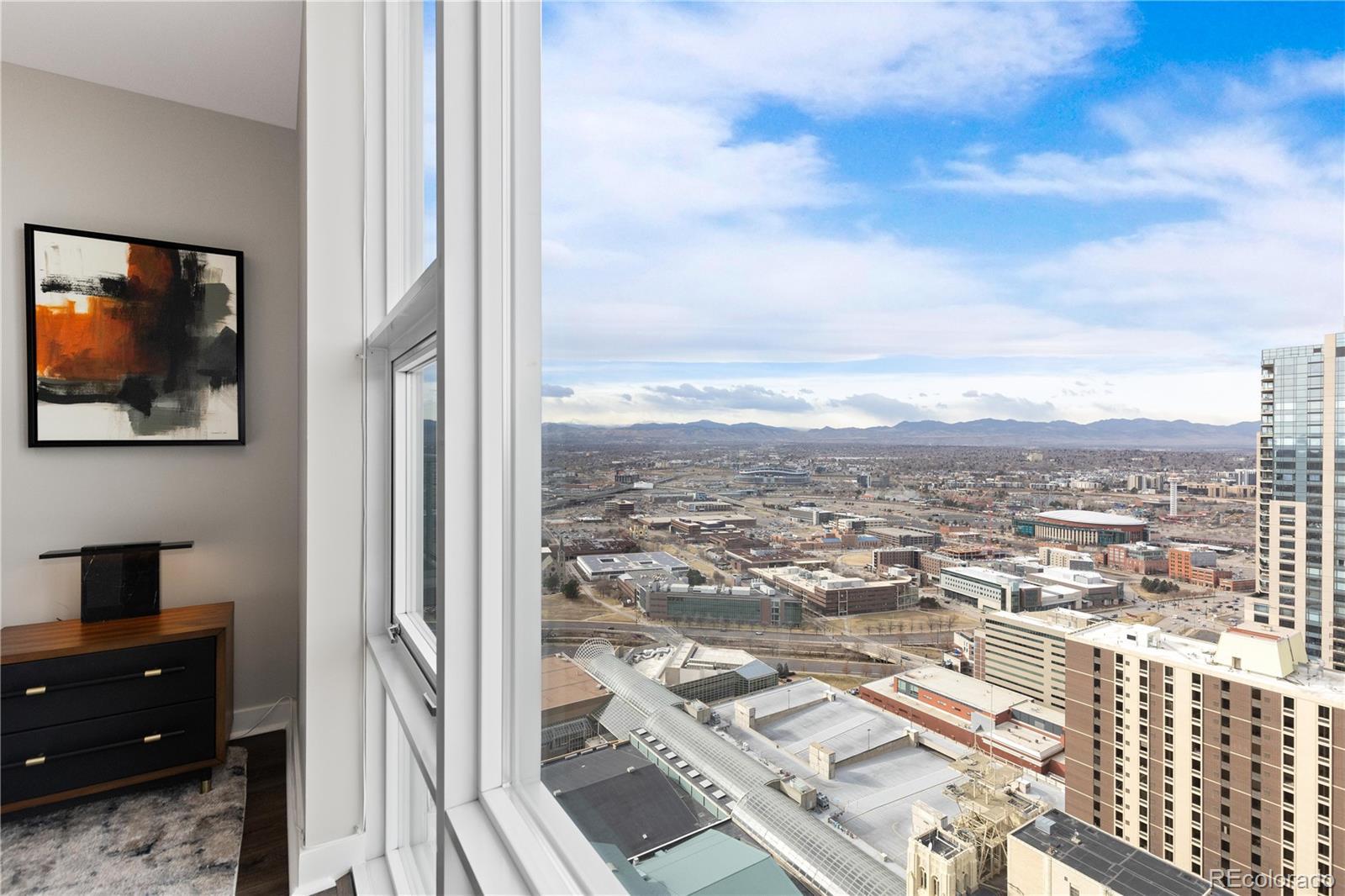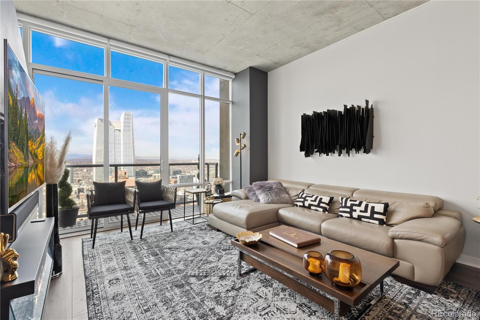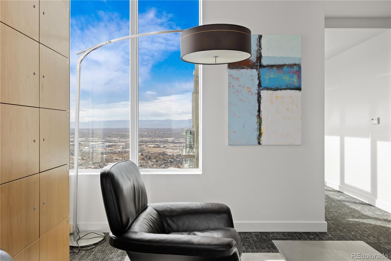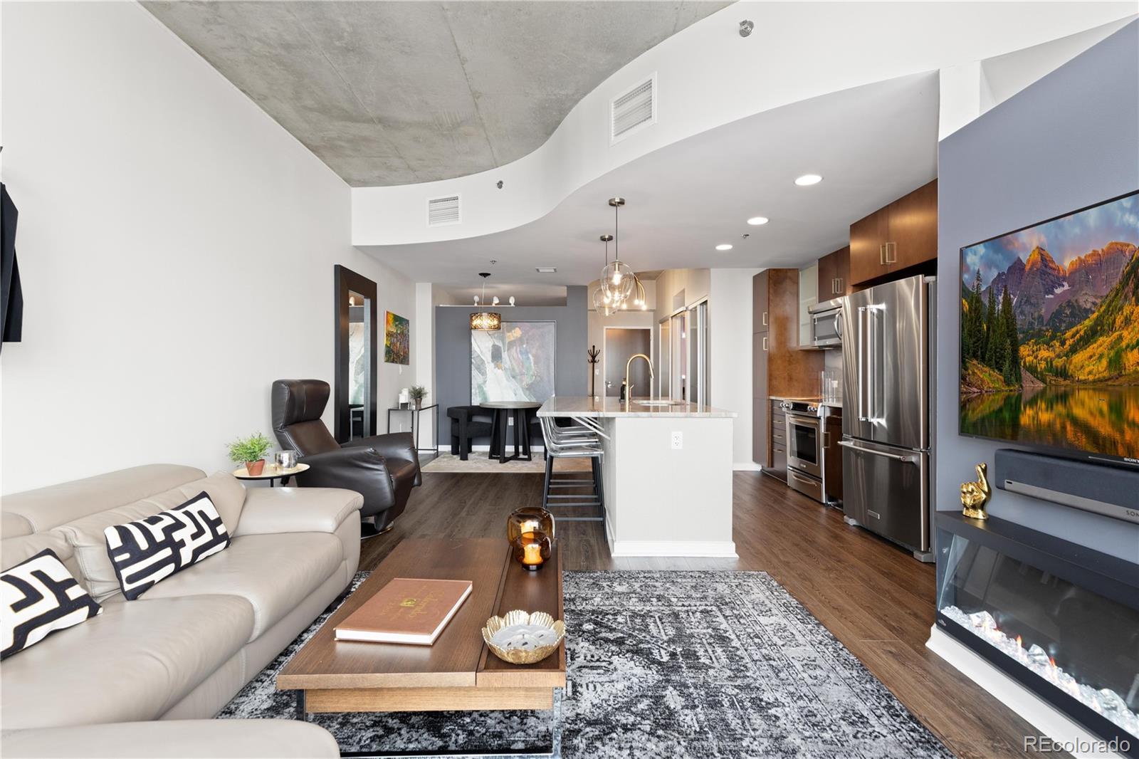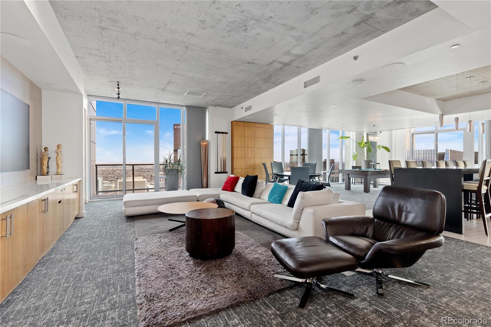 Perched on the 42nd floor of Denver’s iconic SPIRE high-rise, this top-level penthouse offers a refined downtown living experience defined by panoramic west-facing mountain & skyline views framed by floor-to-ceiling windows. The residence unfolds in an open, light-filled layout where exposed concrete ceilings, wide-plank flooring, & a sleek electric fireplace create a sophisticated atmosphere. The designer kitchen anchors the home with slab stone countertops, a statement island with seating, contemporary cabinetry, modern lighting, & stainless steel appliances, making it ideal for both daily living & entertaining. An enclosed den provides flexible space for a private office, guest retreat, or secondary bedroom. The primary suite serves as a tranquil escape with striking views, dual closets, & an attached bath. A private balcony extends the living space outdoors & offers stunning sunset & city light views from above it all. Smart-powered shades, an integrated SONOS sound system, & a professionally designed interior offered furnished deliver a true turnkey opportunity. A deeded parking space & private storage complete the residence. Just steps from the front door, the Sky Lounge offers a resort-like extension of the home, complete with spaces designed for relaxation, entertaining, & social gatherings, all within effortless reach. SPIRE residents enjoy a thoughtfully curated lifestyle that includes a year-round pool & hot tubs, an expansive fitness center, & a variety of resident lounges for work or leisure. Additional conveniences such as private event spaces, a theater room, library, outdoor grilling areas, dog park, & 24-hour courtesy desk enhance everyday living without compromise. Located in the heart of downtown, the building offers walkable access to Larimer Street, major sports venues, & direct A-Line rail service to DIA. Live above it all in this top-floor sanctuary with iconic views and a home as striking as the skyline itself!