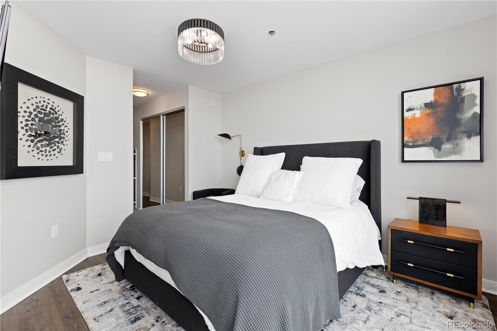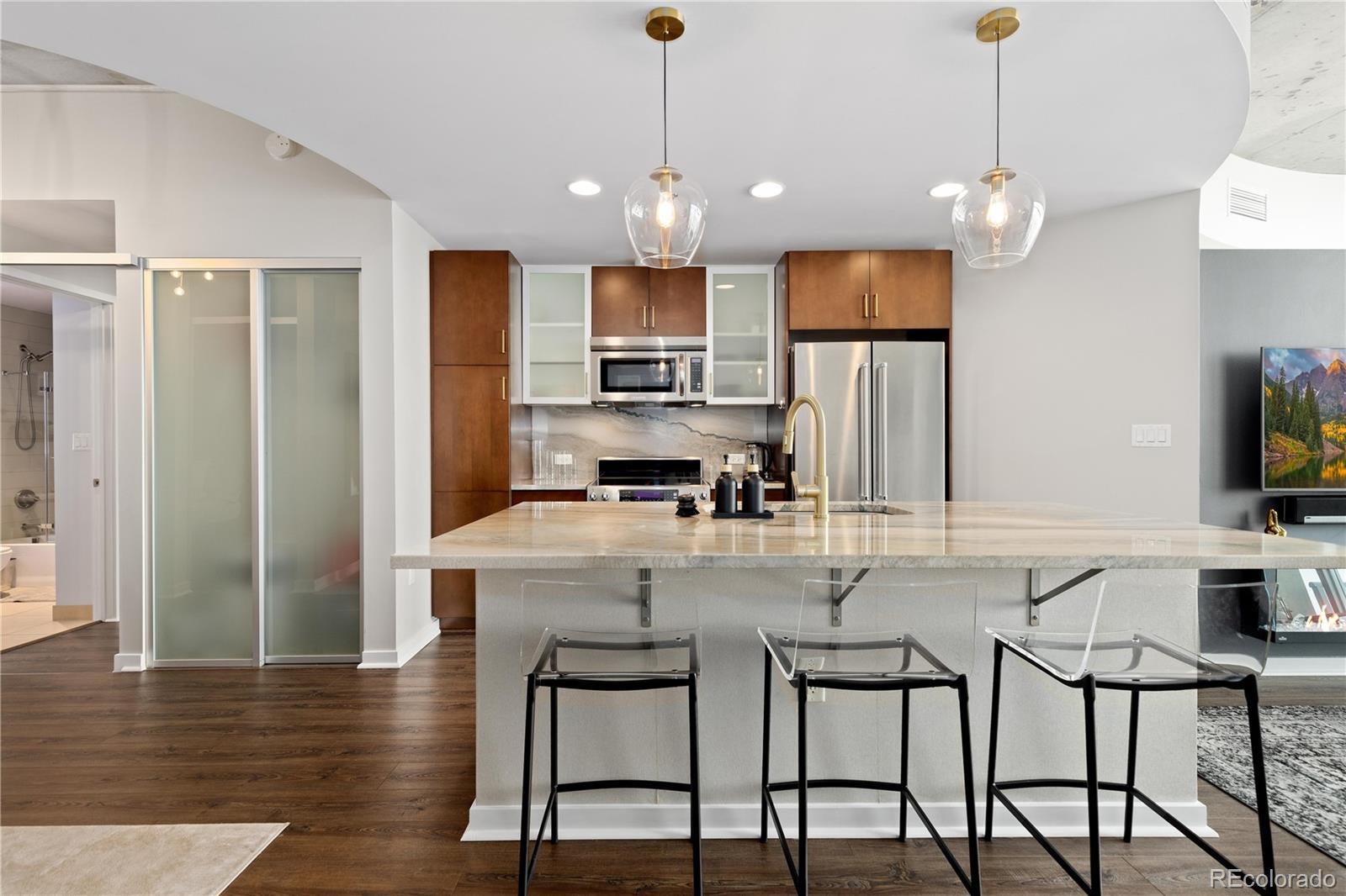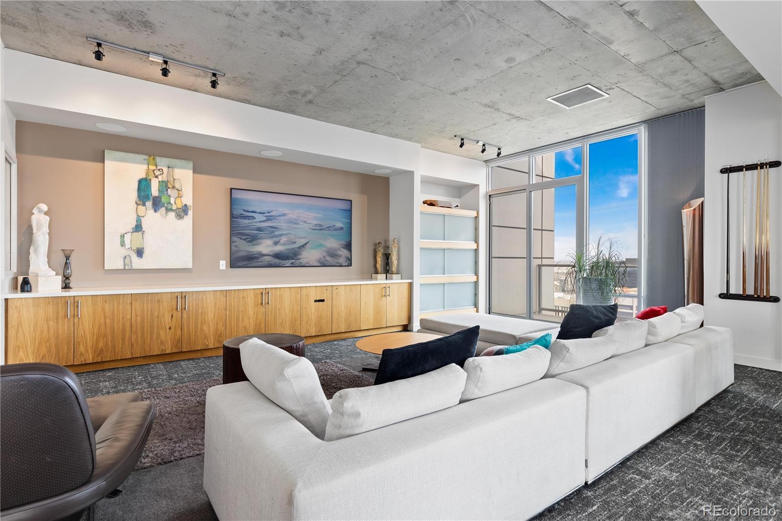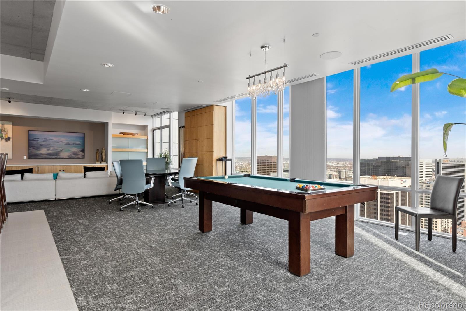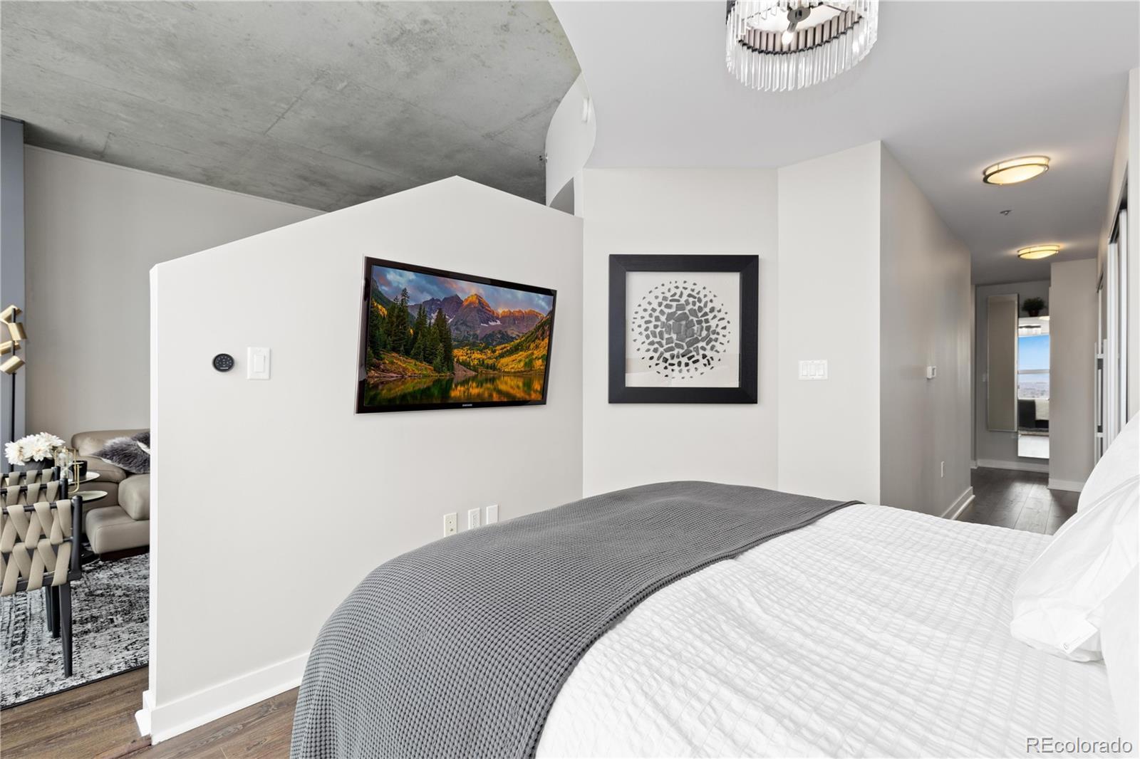 Perched on the 42nd floor of Denver’s iconic SPIRE high-rise, this top-level penthouse offers a refined downtown living experience defined by panoramic west-facing mountain & skyline views framed by floor-to-ceiling windows. The residence unfolds in an open, light-filled layout where exposed concrete ceilings, wide-plank flooring, & a sleek electric fireplace create a sophisticated atmosphere. The designer kitchen anchors the home with slab stone countertops, a statement island with seating, contemporary cabinetry, modern lighting, & stainless steel appliances, making it ideal for both daily living & entertaining. An enclosed den provides flexible space for a private office, guest retreat, or secondary bedroom. The primary suite serves as a tranquil escape with striking views, dual closets, & an attached bath. A private balcony extends the living space outdoors & offers stunning sunset & city light views from above it all. Smart-powered shades, an integrated SONOS sound system, & a professionally designed interior offered furnished deliver a true turnkey opportunity. A deeded parking space & private storage complete the residence. Just steps from the front door, the Sky Lounge offers a resort-like extension of the home, complete with spaces designed for relaxation, entertaining, & social gatherings, all within effortless reach. SPIRE residents enjoy a thoughtfully curated lifestyle that includes a year-round pool & hot tubs, an expansive fitness center, & a variety of resident lounges for work or leisure. Additional conveniences such as private event spaces, a theater room, library, outdoor grilling areas, dog park, & 24-hour courtesy desk enhance everyday living without compromise. Located in the heart of downtown, the building offers walkable access to Larimer Street, major sports venues, & direct A-Line rail service to DIA. Live above it all in this top-floor sanctuary with iconic views and a home as striking as the skyline itself!