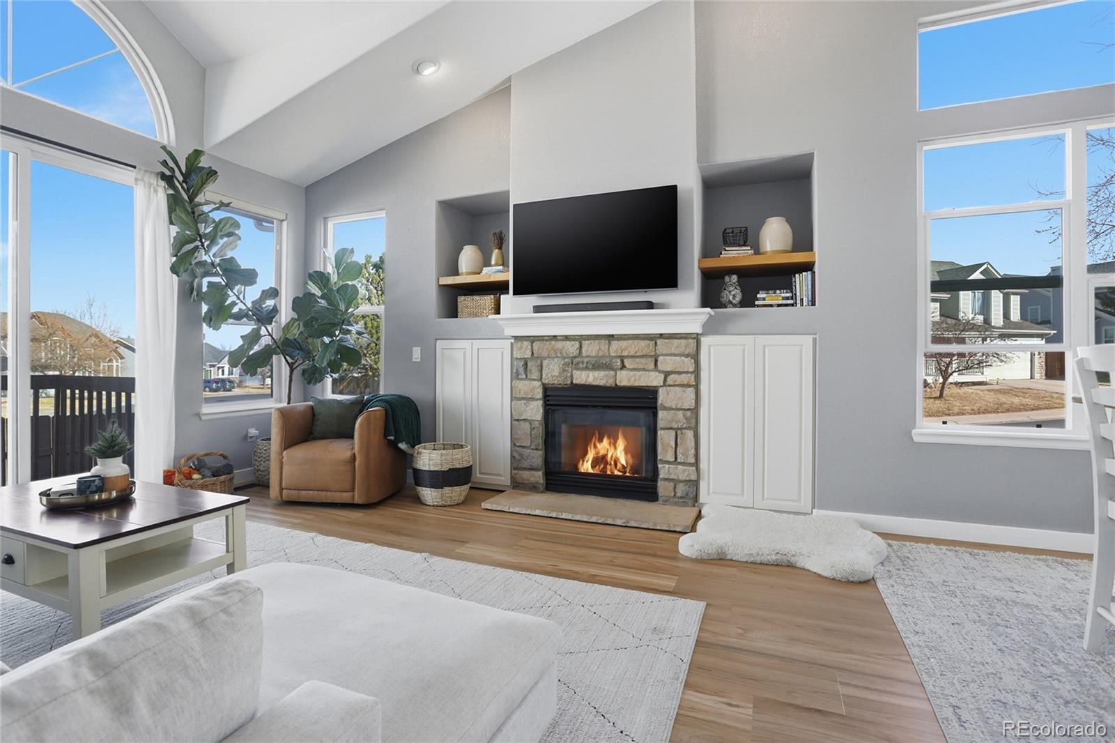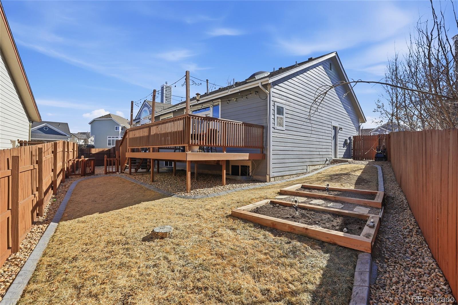This exceptional single-family residence in the highly sought-after Stroh Ranch community presents a unique opportunity for discerning buyers. Boasting 3 bedrooms and 2 full bathrooms within 1,518 square feet, this property exemplifies modern suburban living. The attached two-car garage provides ample parking and storage, enhancing the home's functionality. Upon entry, the foyer greets you with elegant laminate wood-finished floors and a striking chandelier, leading to a spacious living room characterized by vaulted ceilings and a stone fireplace. The kitchen is equipped with high-quality stainless steel appliances, gray cabinetry, and light stone countertops, making it both stylish and practical. The adjoining dining area, near the fireplace, offers an inviting space for formal dining or casual meals. The outdoor space is equally impressive, featuring a fenced backyard, a deck for entertaining, and a barbecue area. The Stroh Ranch community is known for its access to all things outdoors. Whether it is local parks, walking/cycling trails, indoor and outdoor pools, tennis, pickleball, or the community recreation center, you are sure to find an activity that is perfect for you. Add award winning Douglas County Schools, an abundance of top notch dining options and easy access to the Denver Tech Center and DIA and the choice is clear. This property is a great decision for those seeking a blend of comfort, convenience, and community in Parker, Colorado.