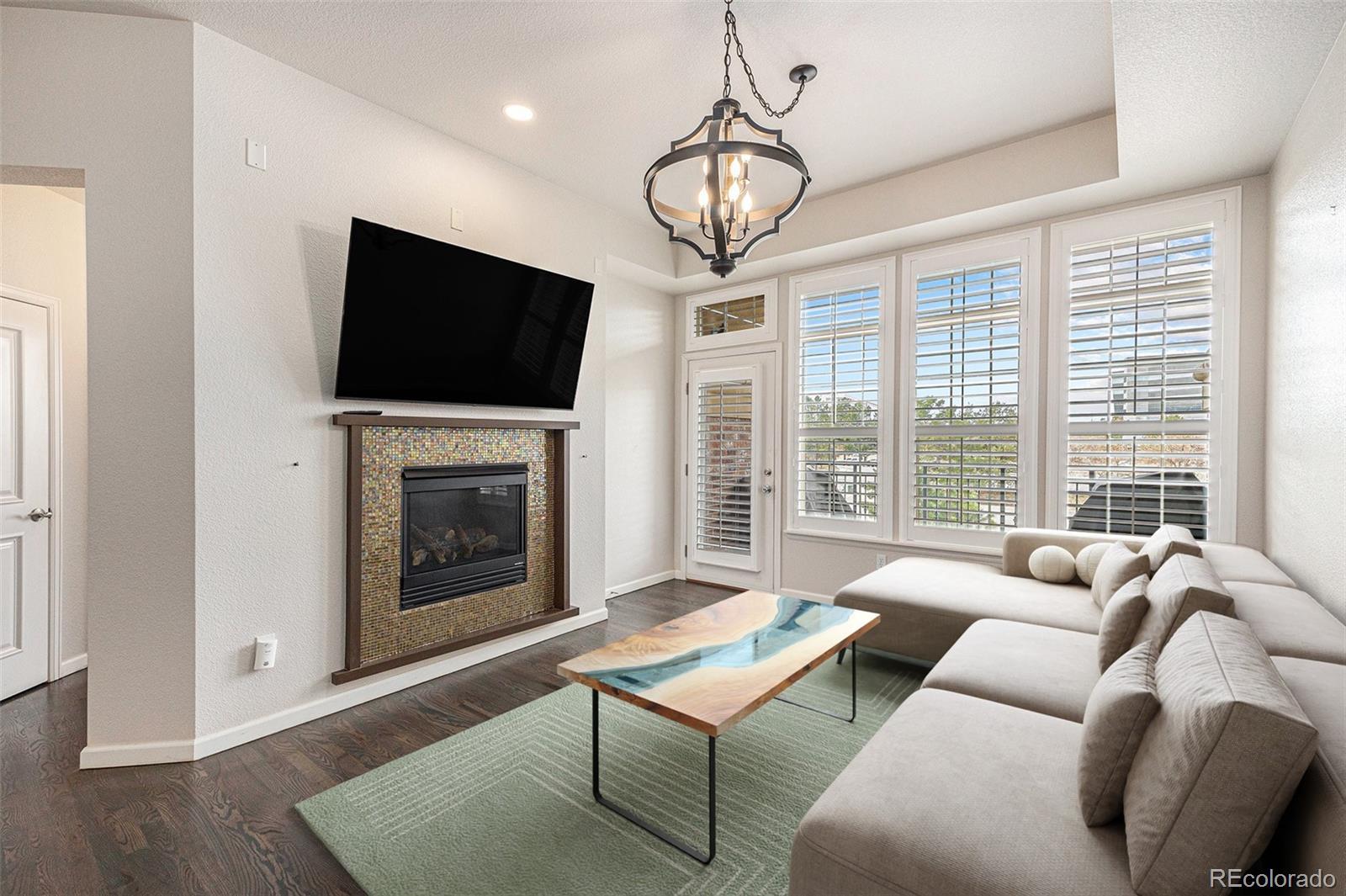 Trying to secure a closer work commute before the snow arrives? Welcome to 7865 Vallagio Lane #308- a perfect blend of style and comfort with and unbeatable location This 2-bed, 2-bath beauty serves up 1,381 sq ft of light-filled living with freshly refinished hardwood floors, sleek black stainless steel appliances, and an open layout that’s perfect for everyday living and effortless entertaining. The kitchen flows into a sunny living room with built-in surround sound, cozy gas fireplace, and plantation shutters for that extra touch of charm. The spacious primary suite has everything you want—walk-in closet, private en-suite bath, and room to relax. The second bedroom and full bath are perfect for guests, a roommate, or your home office setup. Bonus points for the built-in desk nook and a full laundry room—because convenience matters. Enjoy coffee or cocktails on your private covered balcony, plus secure 2-car tandem parking and your own storage unit just across the hall. All tucked into the highly desirable Vallagio community, minutes from DTC, light rail, I-25, and surrounded by shopping and dining — you'll love living here!