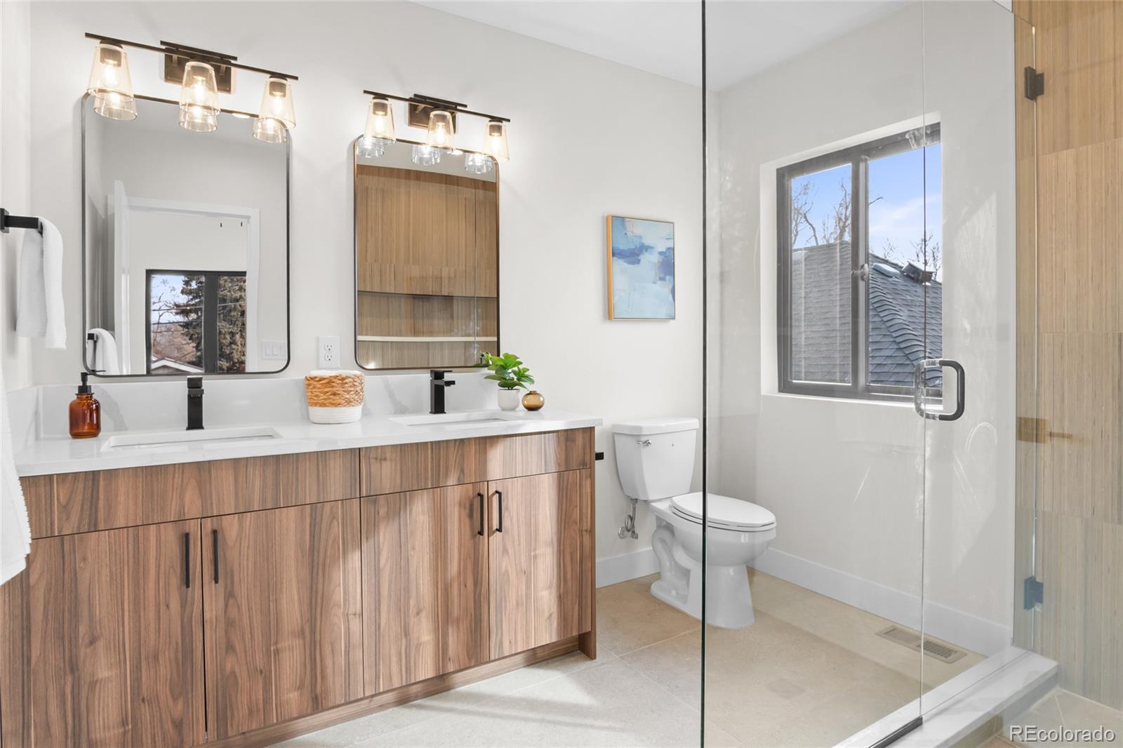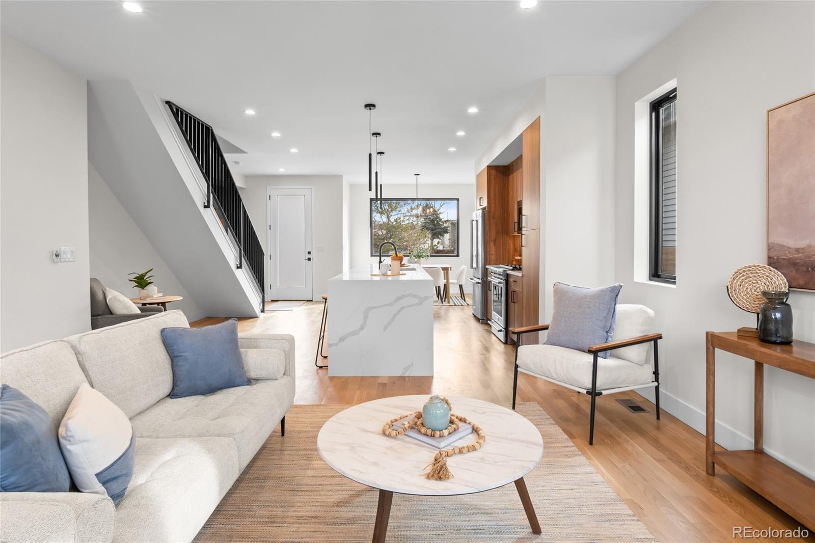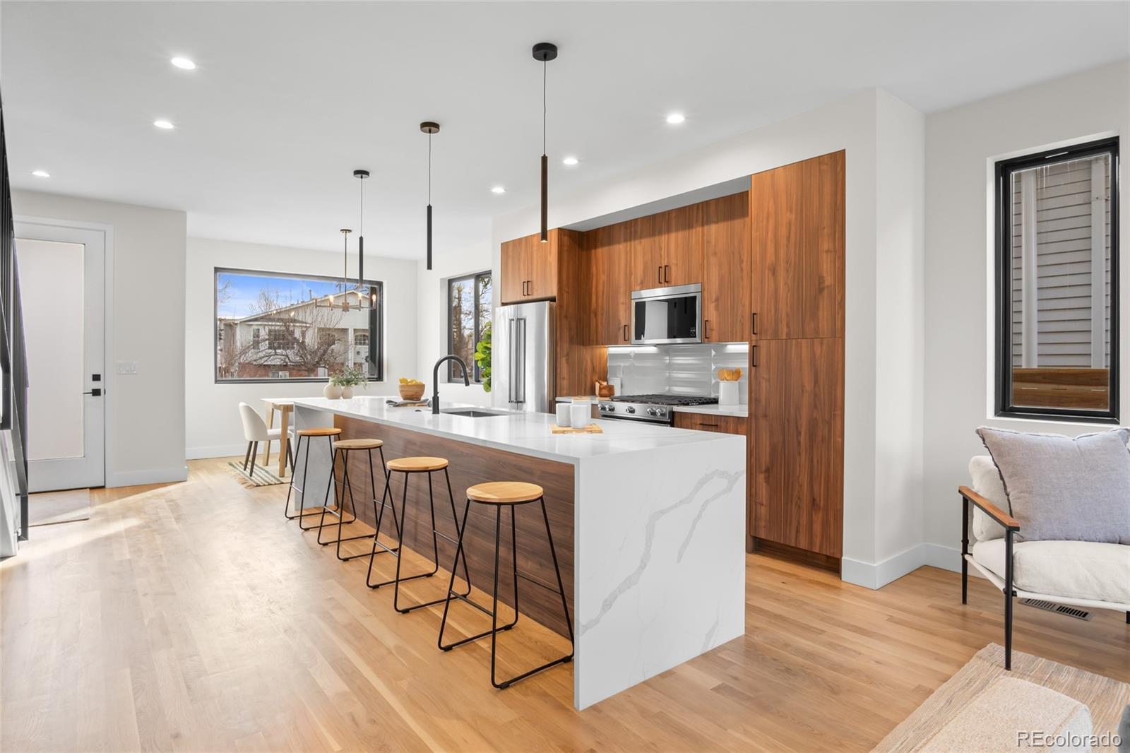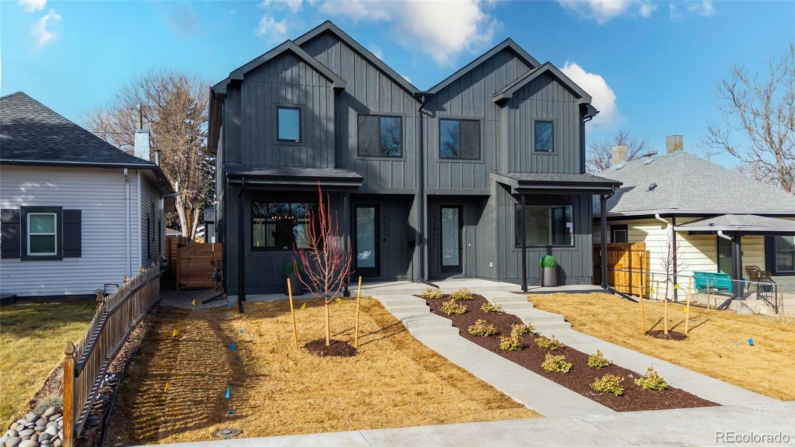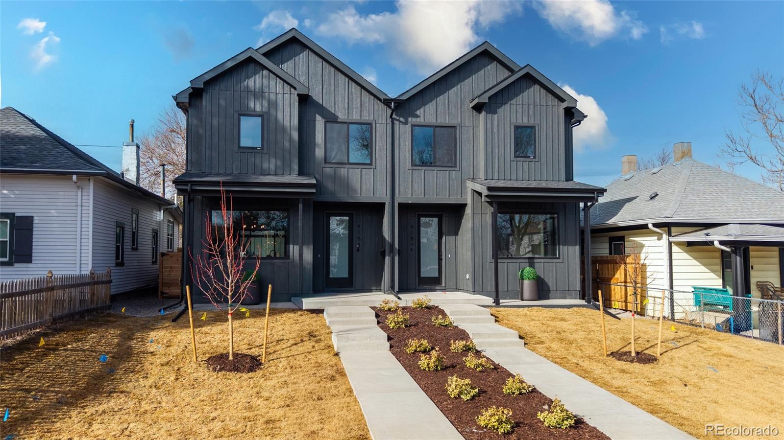 Stunning contemporary NEW construction 1/2 duplex (South unit) just completed in super hot South Broadway. Luxury kitchen with modern cabinetry, huge 11' eat-in island with stunning movement in the quartz countertops, closet-style pantry, under-cabinet & under-island lights & Kitchen Aid appliances. An upgraded contemporary handrail opens the floor plan. Solid white oak hardwoods on the main floor. Custom seating area for storage & coats just inside the front door. Beautifully upgraded main floor half bath with custom woodwork and stylish black accents. 2 bedrooms upstairs w/vaulted ceilings. The primary bedroom has a massive, beautifully lit walk-in closet. Ensuite primary bath w/ huge walk-in shower, floor-to-ceiling custom tile & more. Contemporary black Anderson windows. Detached 2-car garage w/ wifi/smart opener, insulated garage door & wiring for electric vehicle charger. 2 bedrooms w/ vaulted ceilings. Various rooms are prewired for TV locations. No HOA. Party wall agreement in place. Buyer to verify taxes as they have not yet been assessed. Pictures are of an identical unit. Interactive Content: https://www.zillow.com/view-imx/4e2ea037-3449-4b58-9048-0cd7e93143a7?wl=true&setAttribution=mls&initialViewType=pano