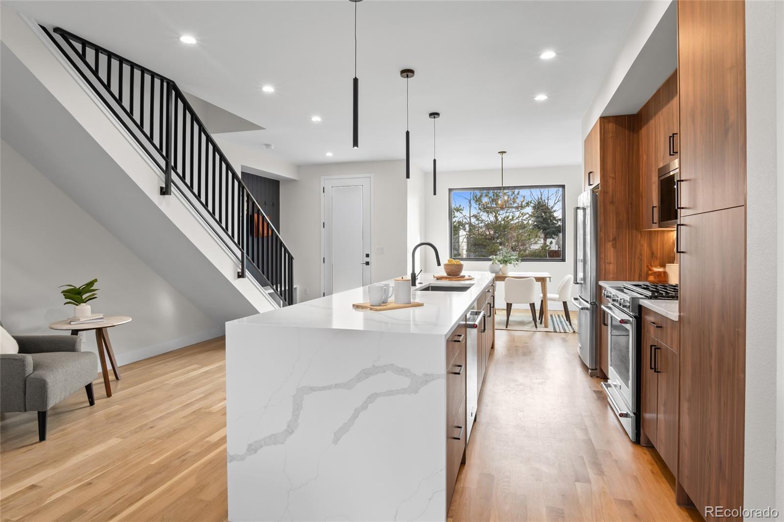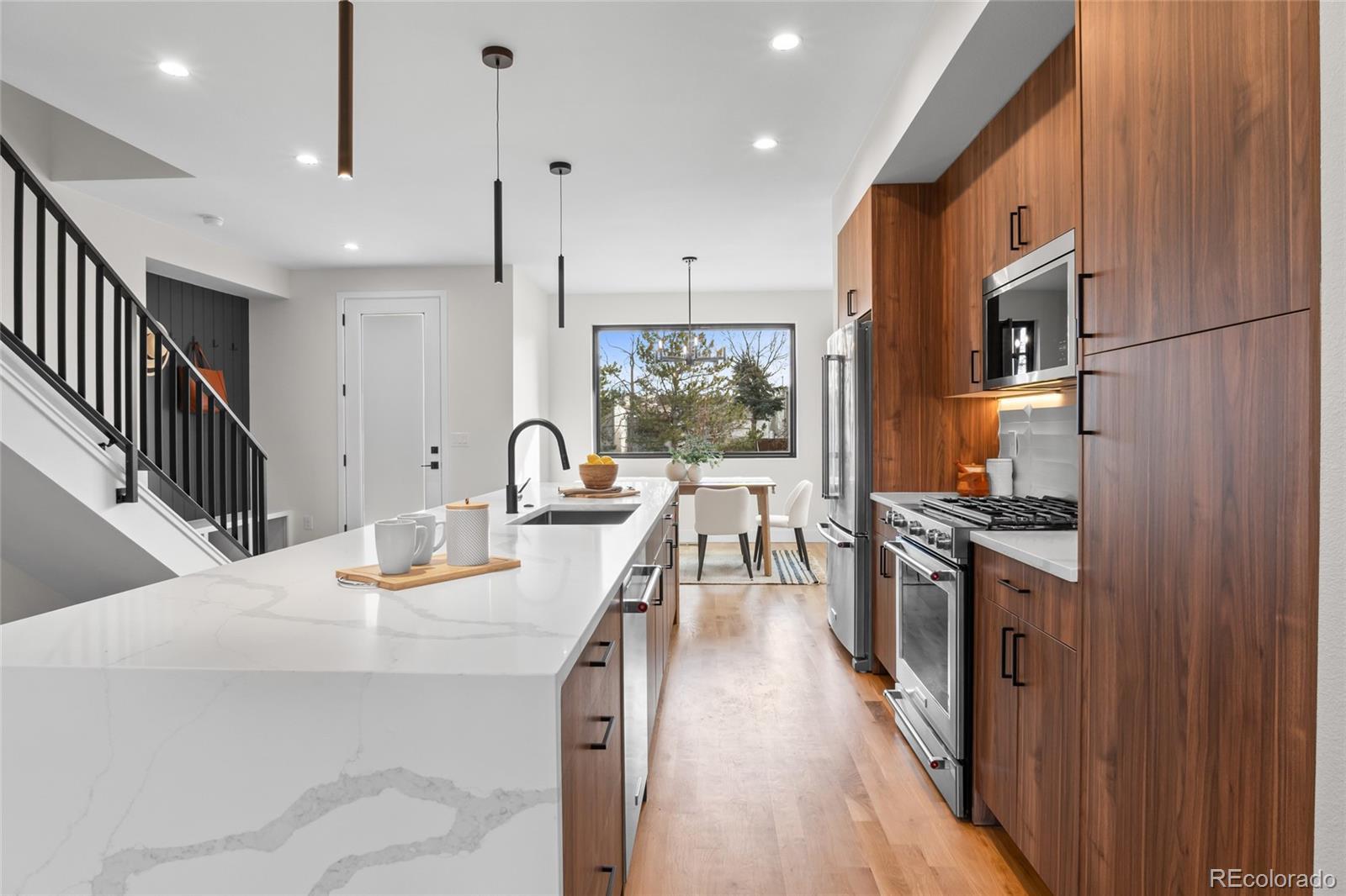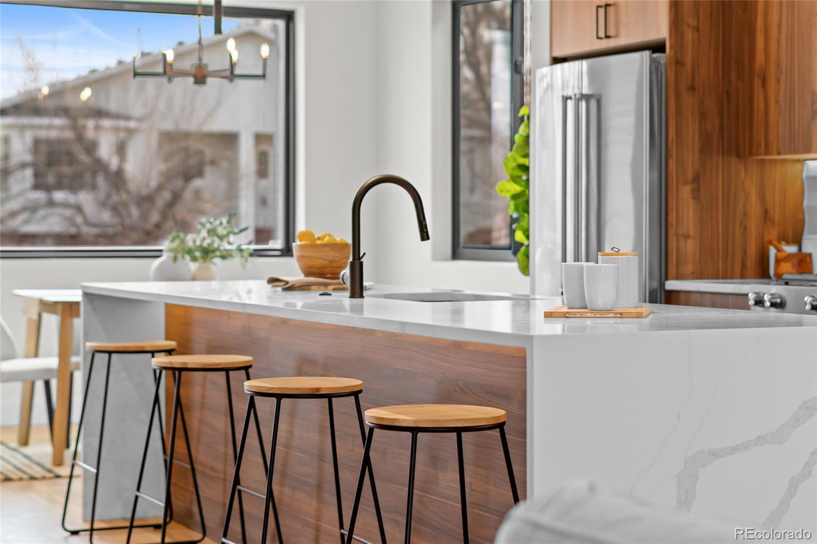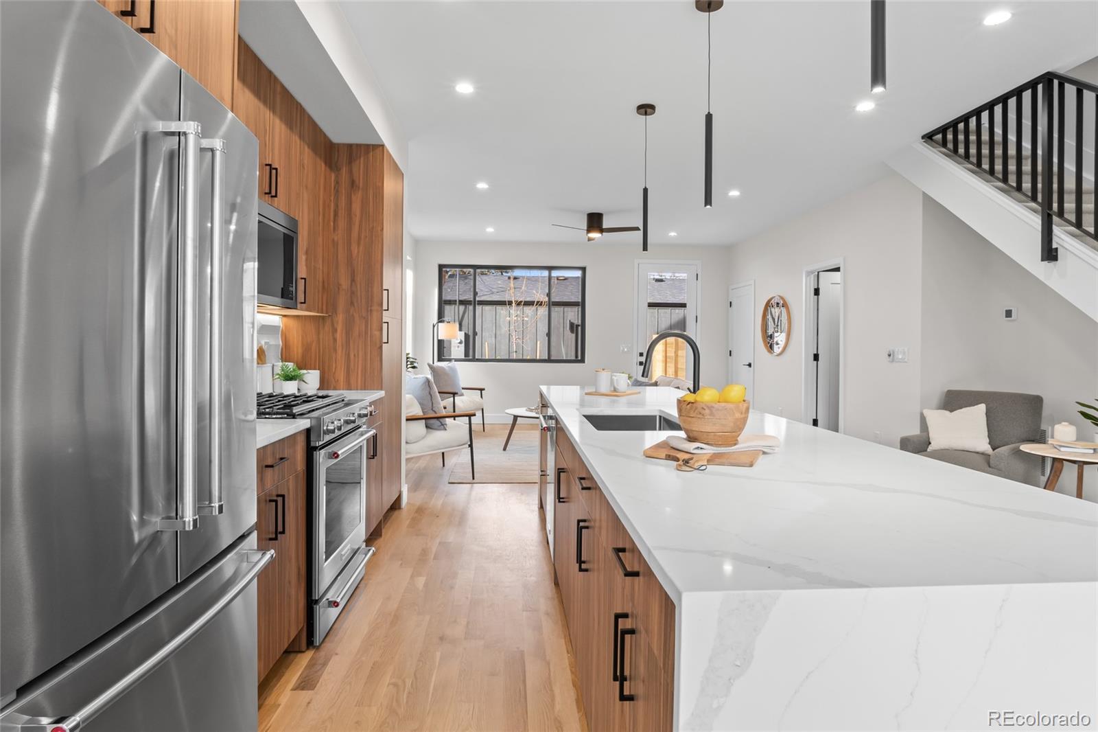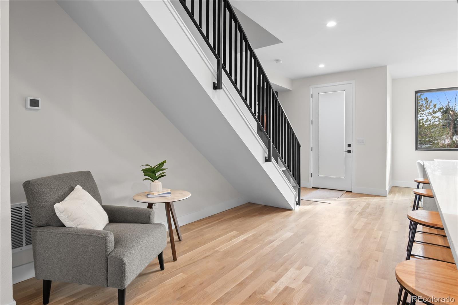 Stunning contemporary NEW construction 1/2 duplex (South unit) just completed in super hot South Broadway. Luxury kitchen with modern cabinetry, huge 11' eat-in island with stunning movement in the quartz countertops, closet-style pantry, under-cabinet & under-island lights & Kitchen Aid appliances. An upgraded contemporary handrail opens the floor plan. Solid white oak hardwoods on the main floor. Custom seating area for storage & coats just inside the front door. Beautifully upgraded main floor half bath with custom woodwork and stylish black accents. 2 bedrooms upstairs w/vaulted ceilings. The primary bedroom has a massive, beautifully lit walk-in closet. Ensuite primary bath w/ huge walk-in shower, floor-to-ceiling custom tile & more. Contemporary black Anderson windows. Detached 2-car garage w/ wifi/smart opener, insulated garage door & wiring for electric vehicle charger. 2 bedrooms w/ vaulted ceilings. Various rooms are prewired for TV locations. No HOA. Party wall agreement in place. Buyer to verify taxes as they have not yet been assessed. Pictures are of an identical unit. Interactive Content: https://www.zillow.com/view-imx/4e2ea037-3449-4b58-9048-0cd7e93143a7?wl=true&setAttribution=mls&initialViewType=pano