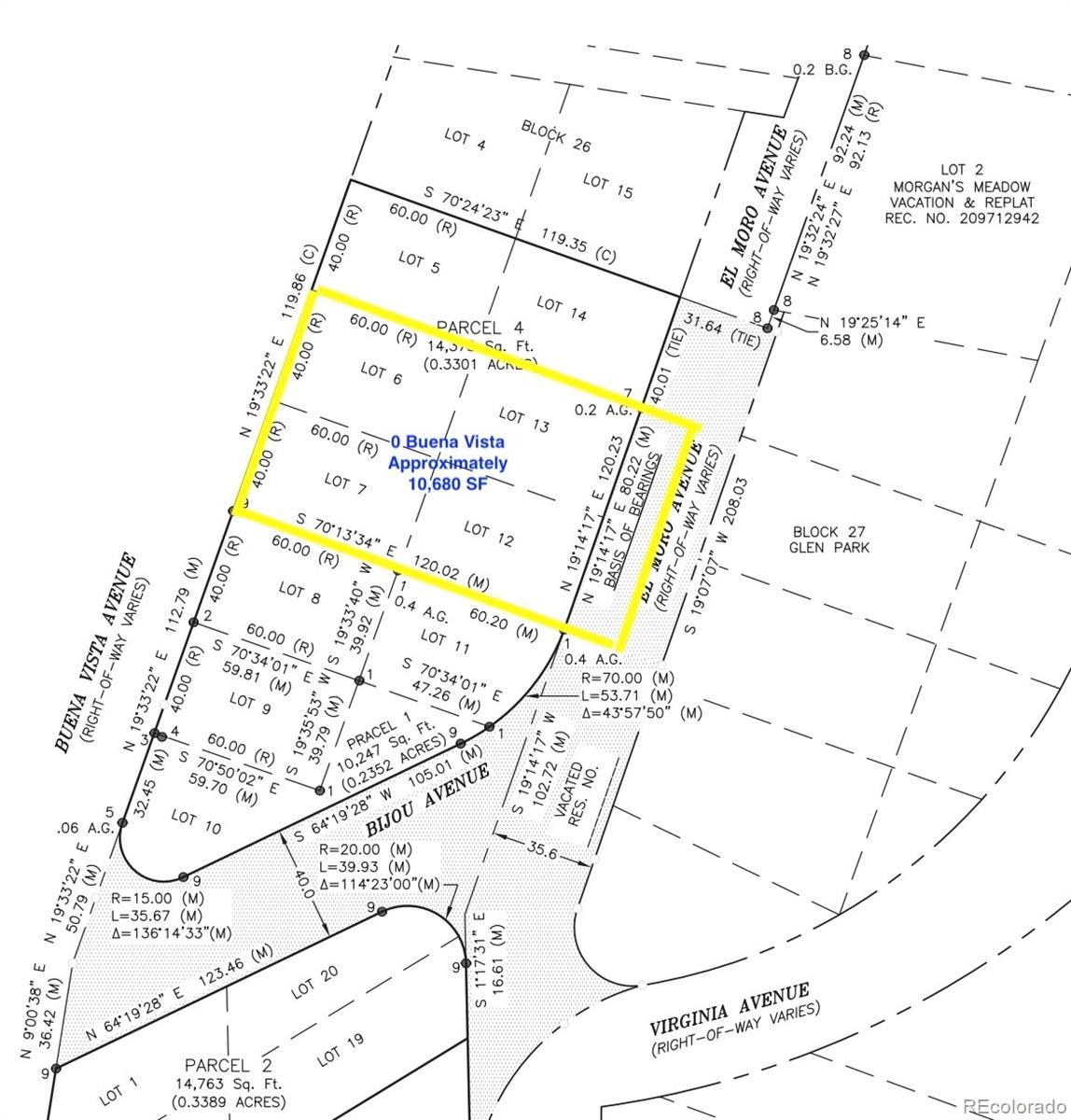 Build your dream home, or possibly two. This is a collection of four platted lots totaling 11,024 SF. Together the lots have approachable access from Buena Vista with a gentle slope that would likely work for a walk-out basement. The views of the surrounding mountains and rock formations are stunning. Walk through the charming Glen Park neighborhood and down to the Reservoir Trail. Enjoy the tight-knit community of Palmer Lake while being just a short drive to Monument, Colorado Springs, and the Denver Tech Center. The adjacent house at 347 Buena Vista is also for sale. Public water and sewer is available. Contact Palmer Lake for details and pricing regarding taps.