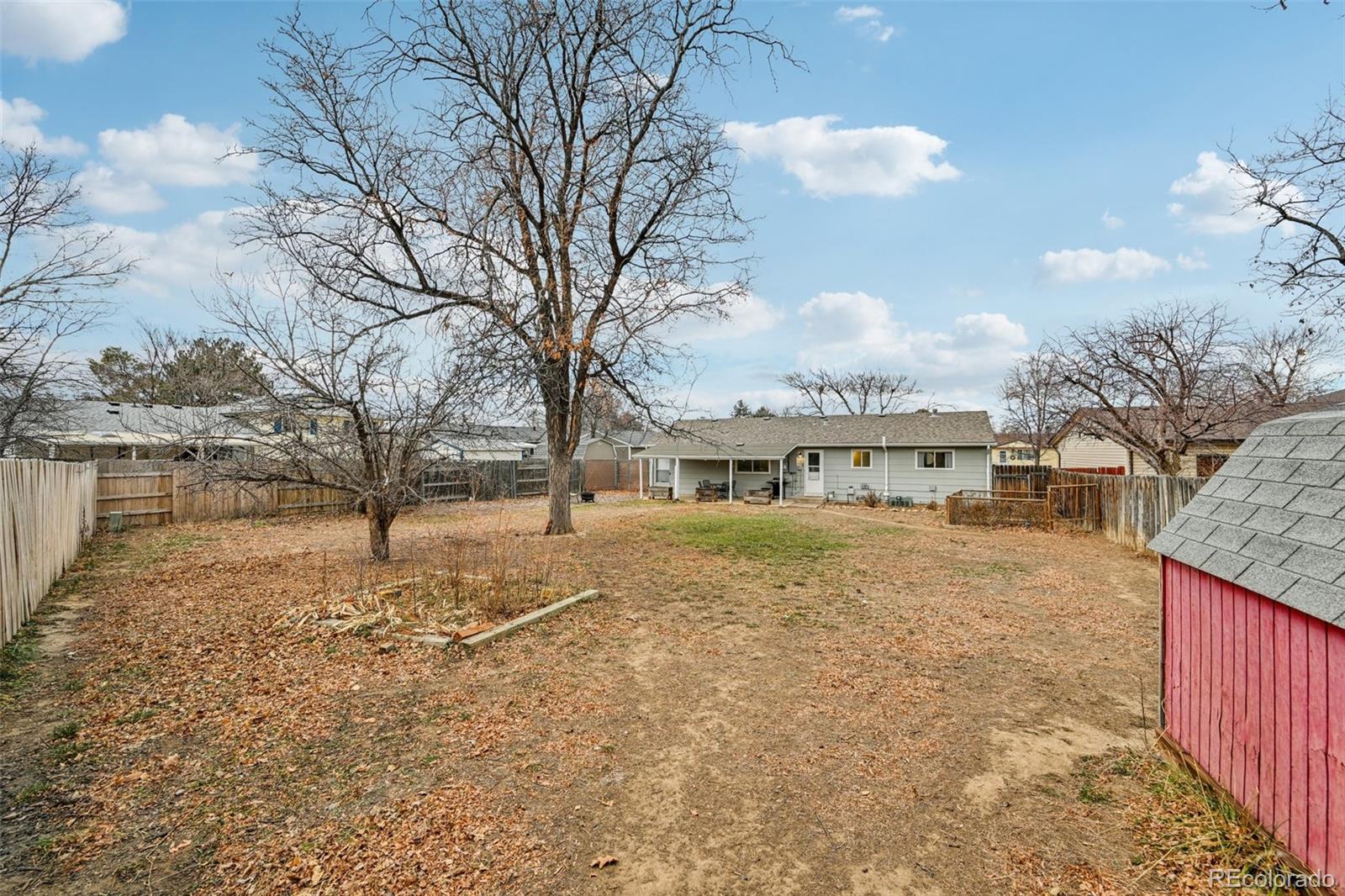 Welcome home to this move-in-ready ranch-style home on a spacious lot, offering the perfect blend of modern amenities and timeless design. All new exterior paint, mature trees, and clean landscaping greet you from the street with instant curb appeal. Inside, beautifully refinished hardwood floors, abundant natural light, and upgraded fixtures unfold to an inviting open floor plan, ideal for everyday, functional living. The updated eat-in kitchen features new tile flooring, painted cabinetry with new hardware, a stainless steel appliance package, and a mobile butcher-block center island. Step outside to a sizeable covered patio, ready for summer BBQ and entertaining. The large fenced-in yard is a canvas of endless potential, including multiple mature trees and a utility shed for all your tools and toys. Retreat to your main-floor primary bedroom, complete with an ensuite bathroom and a custom closet system. Two generously sized secondary bedrooms, a full bath with new flooring, and a large laundry room with shelving offering additional storage. Additional features of this turnkey residence include a replaced electrical panel, closet organizers in each bedroom, fresh interior paint, a radon mitigation system, and an attached 1-car garage. 746 S Nile Way is ideally located within minutes of neighborhood Cherry Creek schools, parks, shopping, dining, public transportation, and major roadways. This stunning home is ready for its next chapter; all it needs is you!