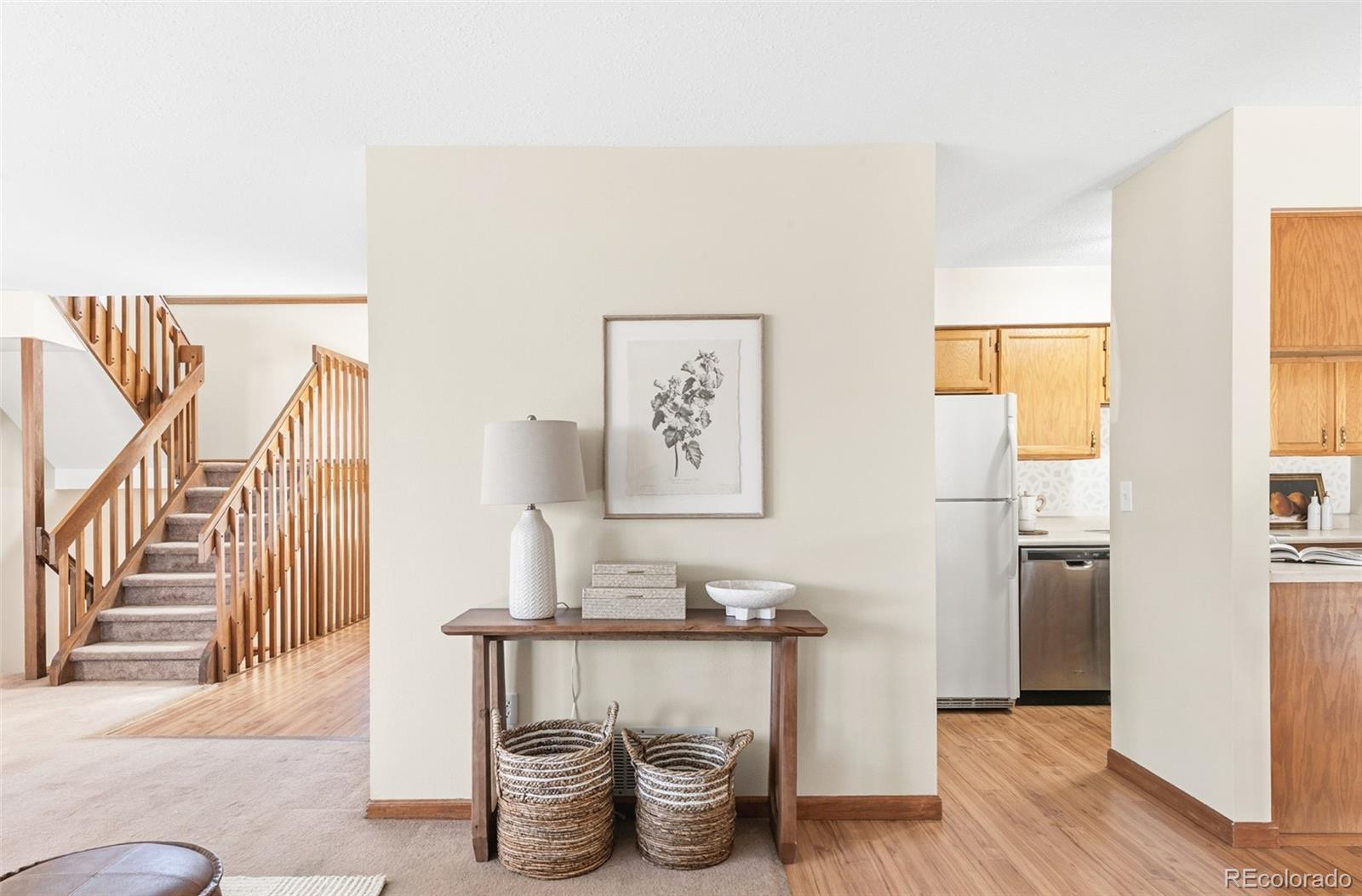 A RARE FIND! Warm interiors commingle with effortless livability and NO HOA in this bright townhome. A covered porch welcomes residents into a flowing open floor plan grounded by a wood-burning fireplace in the living area. Neutral colors, newer laminate floors, and warm wood trim continue into the dining room, where seamless access to both the kitchen and the backyard offers endless potential for entertaining. Ascend the open stairwell to the second floor, where a loft space affords flexibility for a home office, exercise area, play space, and more. The nearby primary suite showcases a dual-entry bathroom with generous counter space and storage. An unfinished basement with washer and dryer provides ample storage today and is ready to be finished, offering excellent potential to expand another bedroom and bath. Retreat outside to the private backyard anchored by a new Trex deck and encircled by updated fencing. A townhome that has a two car attached garage, a private fenced yard AND no HOA. Where else can you find that in Thornton? Additional upgrades include new roof (2020), new AC/furnace (2025), new trex deck (2022), new gutter guards (2022), new exterior and interior paint, all new doors upstairs, a new sprinkler system controller (2025), new front door (2021), new light fixture (2026), and new radon mitigation system — all of which come together to create worry-free livability. Convenient access to I-25 or the RTD Eastlake/124th Ave rail for an easy commute to Denver. Just minutes from Cottonwood Park, Heritage Trail, Eastlake Park and Nature Preserve, and a wide variety of nearby shopping, dining, and local attractions.