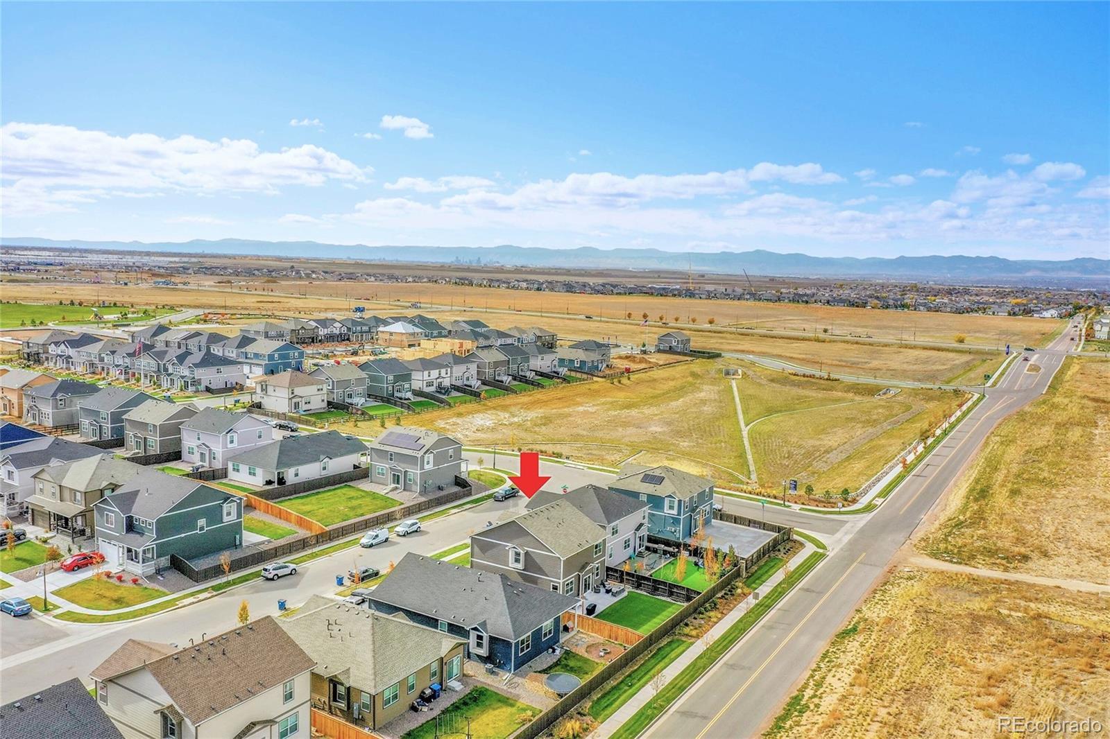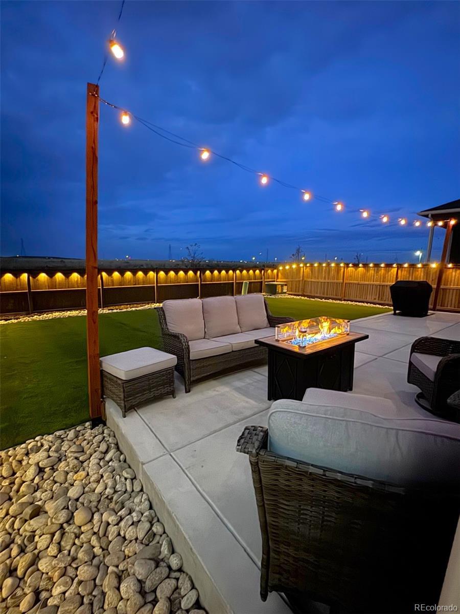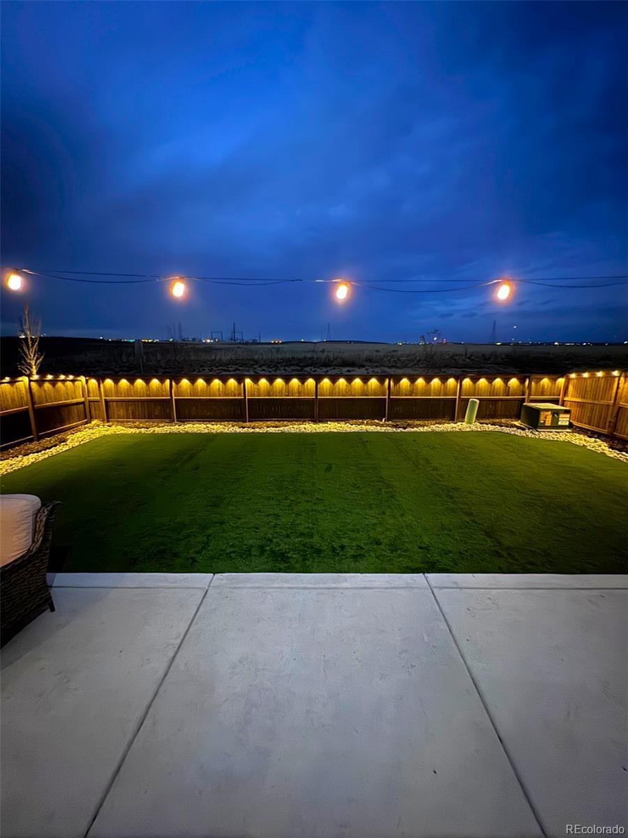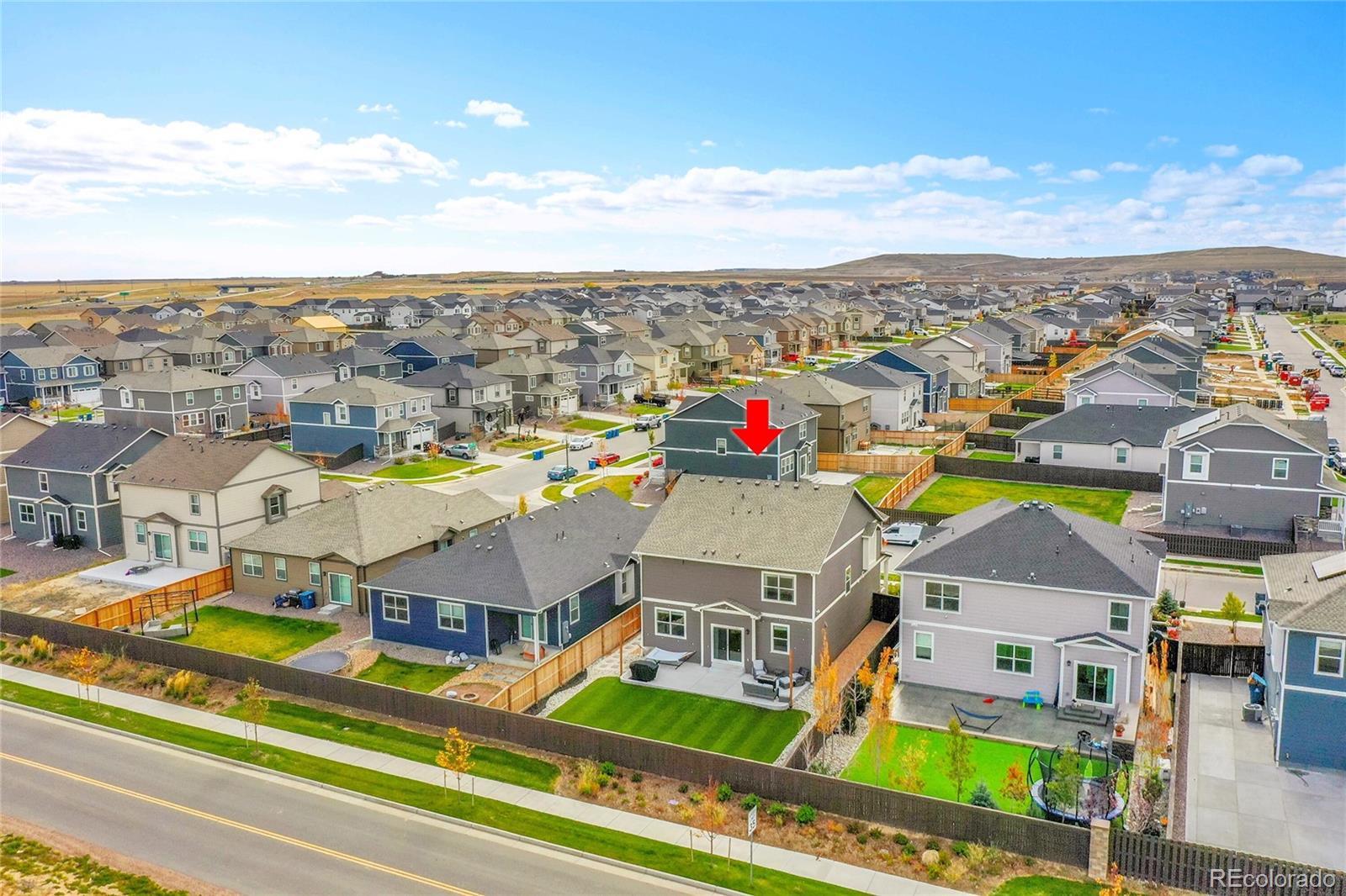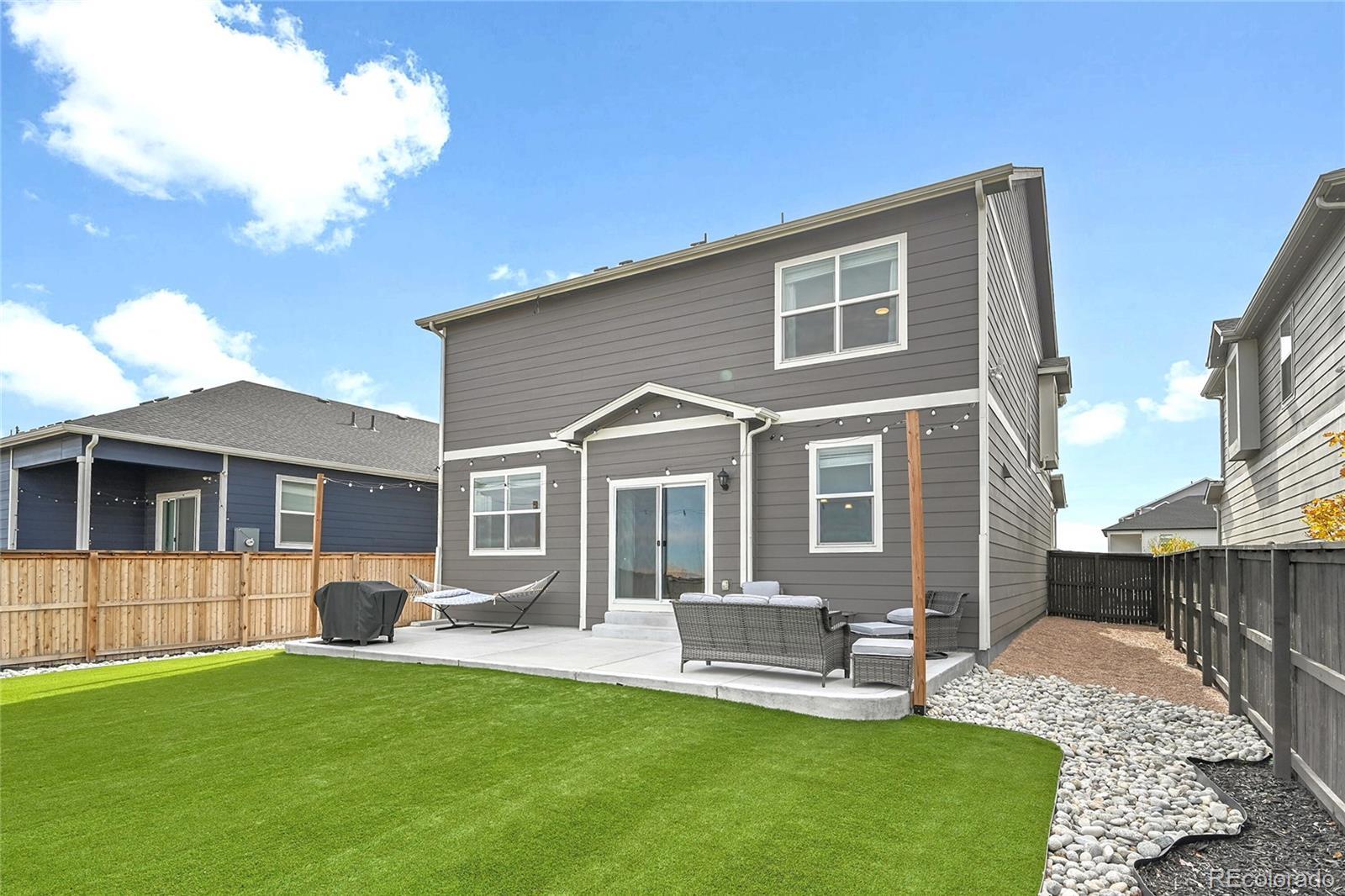Unbelievable opportunity in Settlers Crossing! Better than new home where everything is already done - all you have to do is move in. Stunning back yard with extended patio, maintenance free turf and custom lighting creates the perfect setting to soak in all the magic that Colorado offers. Wide open floor plan where the kitchen is the center of this special home which connects both the dining & family rooms seamlessly - ideal for both everyday living or hosting parties & holiday events. The beautiful kitchen boasts granite countertops, subway tile backsplash, gas range and a large island with seating for 4. The family room has a stunning custom built-in entertainment wall. There is also a main floor office space and convenient guest powder bath. Upstairs you will find the spacious primary bedroom with ensuite bath and expansive walk-in closet. There are 3 additional secondary bedrooms, a full bath with double vanities and best of all a 2nd floor laundry room. Out back everything is done - landscaping, fencing, turf are completely finished and ready for your fall barbeques or a special evening around the fire pit under the glow of numerous string lights. All this plus everything you typically have to still pay for with a new build is already included: All window blinds, kitchen refrigerator, back yard landscaping and fencing. Central AC, Radon Mitigation, South facing driveway, Deako Smart Lighting switches throughout entire home, Smart Home IQ panel controls door locks, garage & lights, water softener system installed, Arlo security cameras/doorbell - this home has it all. Hurry!