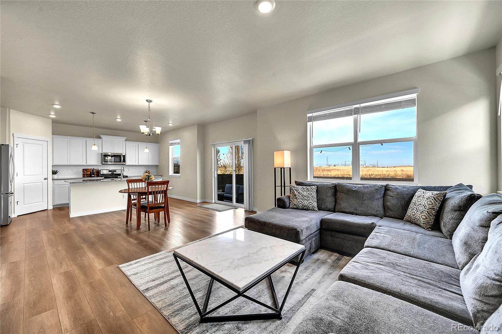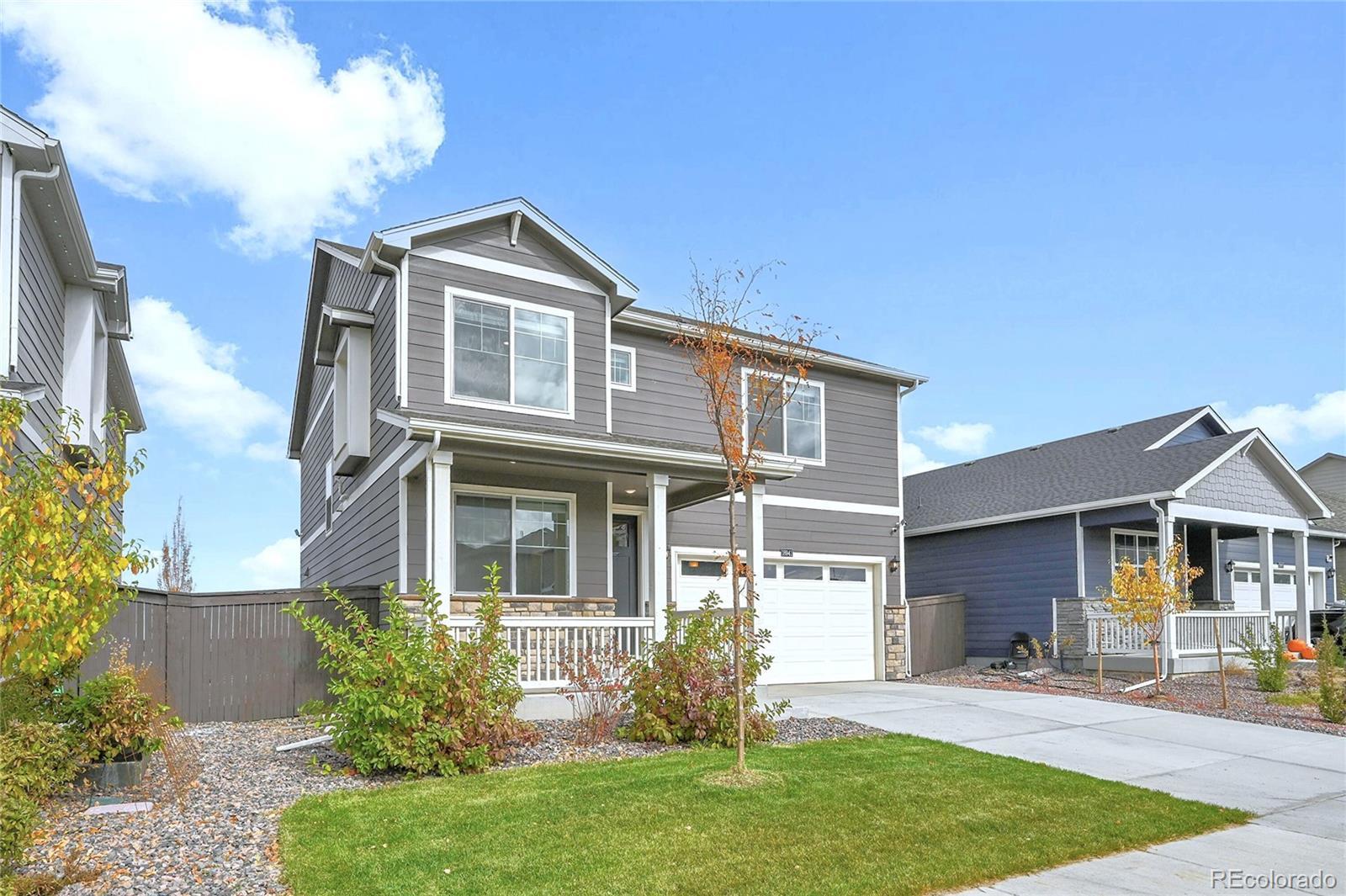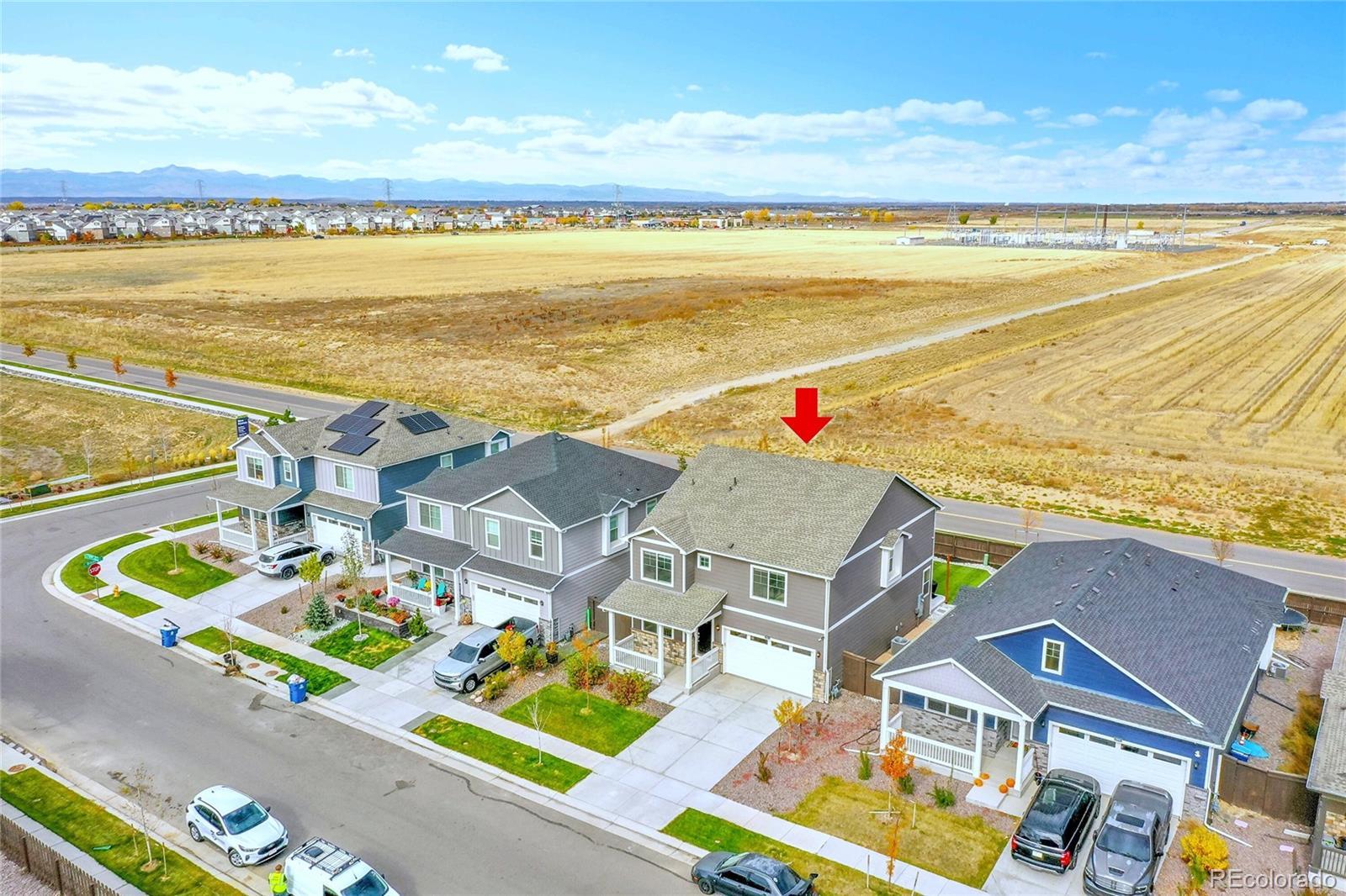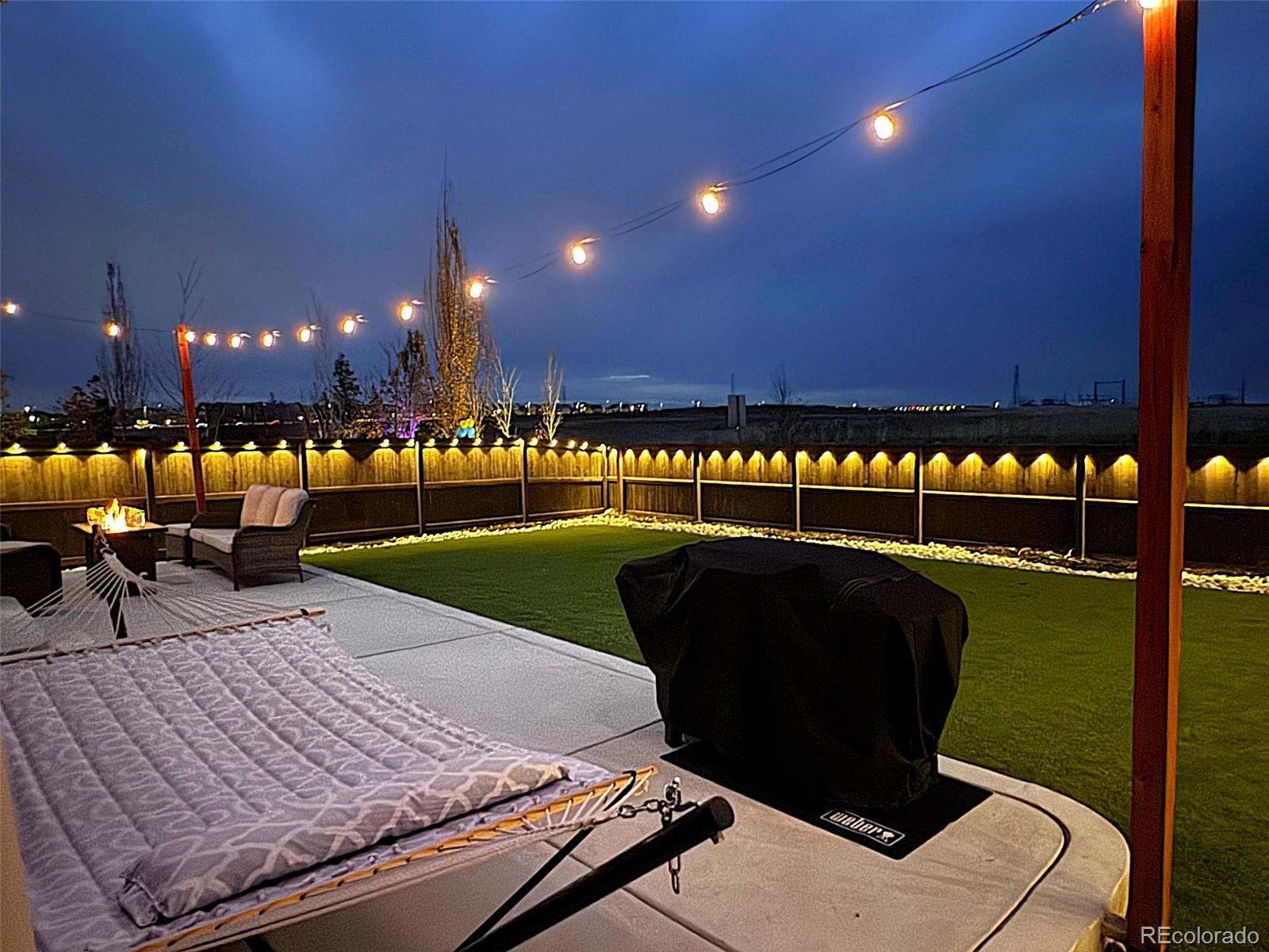 Unbelievable opportunity in Settlers Crossing! Better than new home where everything is already done - all you have to do is move in. Stunning back yard with extended patio, maintenance free turf and custom lighting creates the perfect setting to soak in all the magic that Colorado offers. Wide open floor plan where the kitchen is the center of this special home which connects both the dining & family rooms seamlessly - ideal for both everyday living or hosting parties & holiday events. The beautiful kitchen boasts granite countertops, subway tile backsplash, gas range and a large island with seating for 4. The family room has a stunning custom built-in entertainment wall. There is also a main floor office space and convenient guest powder bath. Upstairs you will find the spacious primary bedroom with ensuite bath and expansive walk-in closet. There are 3 additional secondary bedrooms, a full bath with double vanities and best of all a 2nd floor laundry room. Out back everything is done - landscaping, fencing, turf are completely finished and ready for your fall barbeques or a special evening around the fire pit under the glow of numerous string lights. All this plus everything you typically have to still pay for with a new build is already included: All window blinds, kitchen refrigerator, back yard landscaping and fencing. Central AC, Radon Mitigation, South facing driveway, Deako Smart Lighting switches throughout entire home, Smart Home IQ panel controls door locks, garage & lights, water softener system installed, Arlo security cameras/doorbell - this home has it all. Hurry!