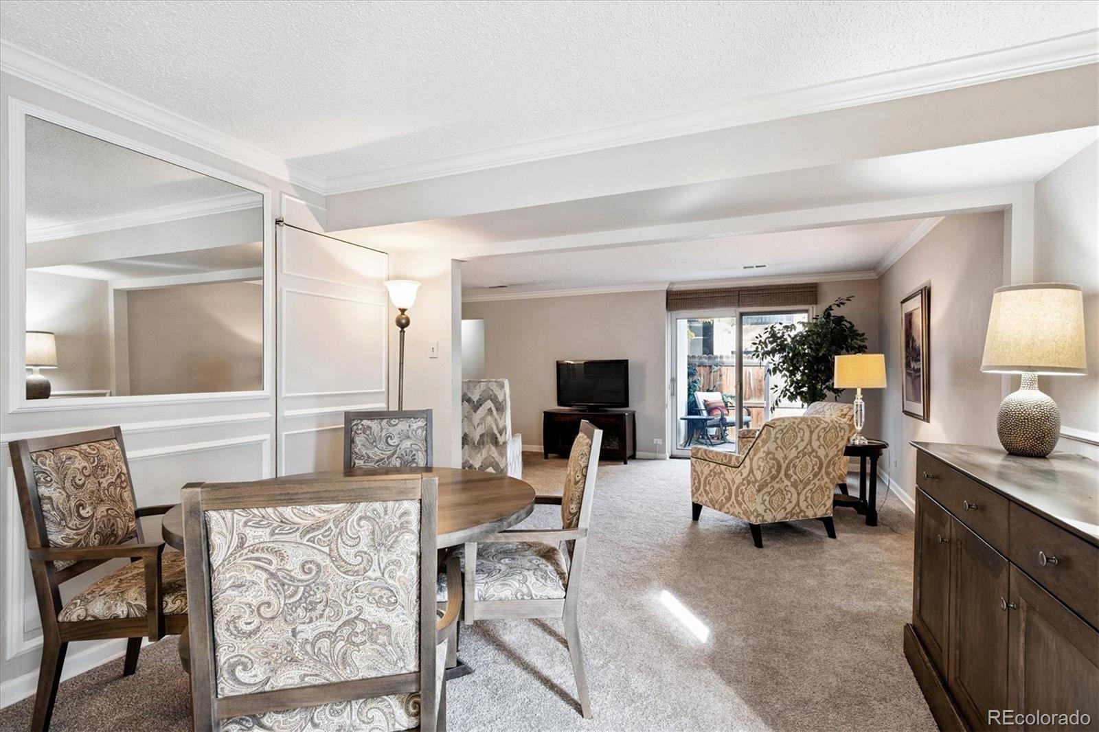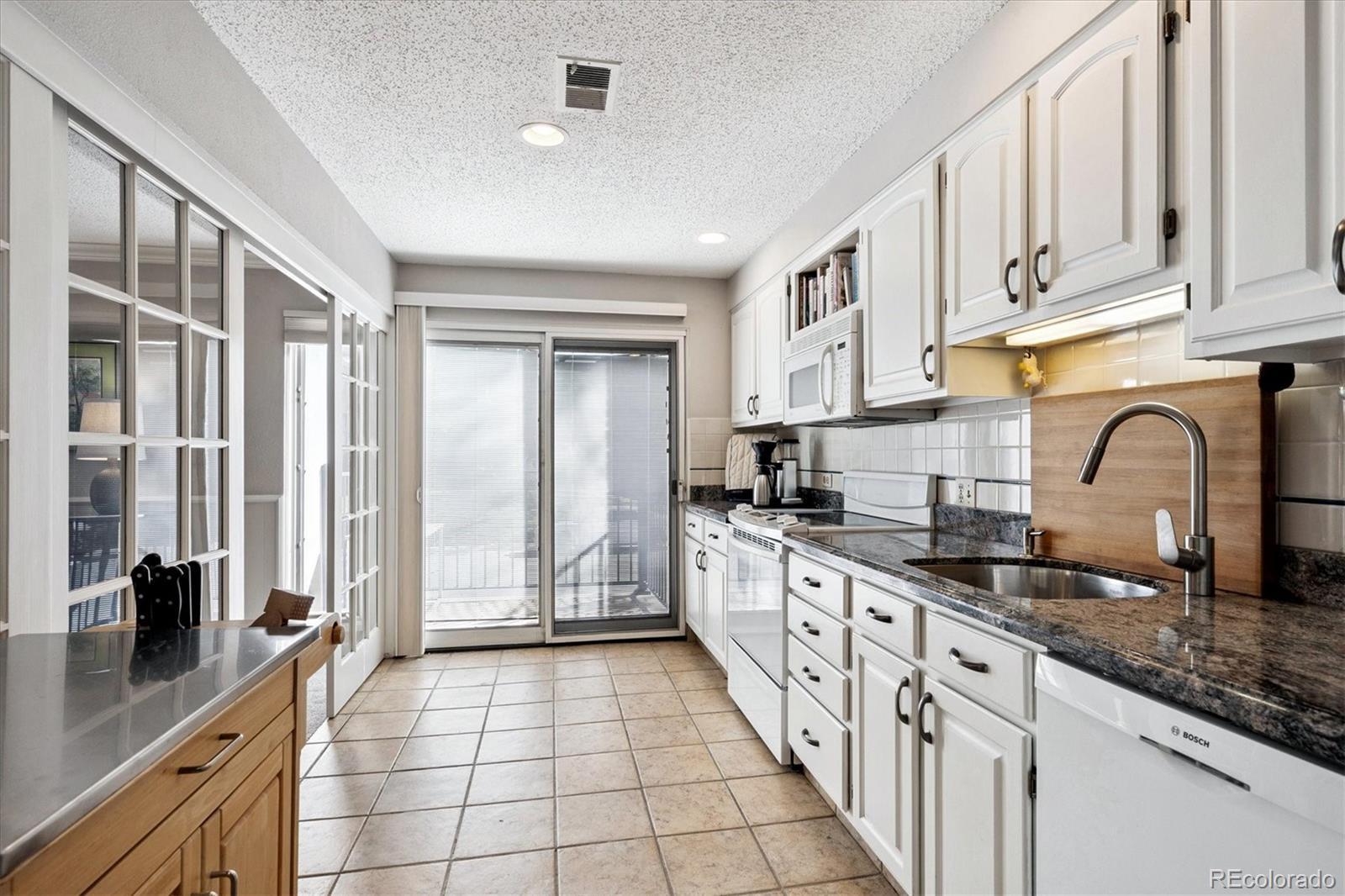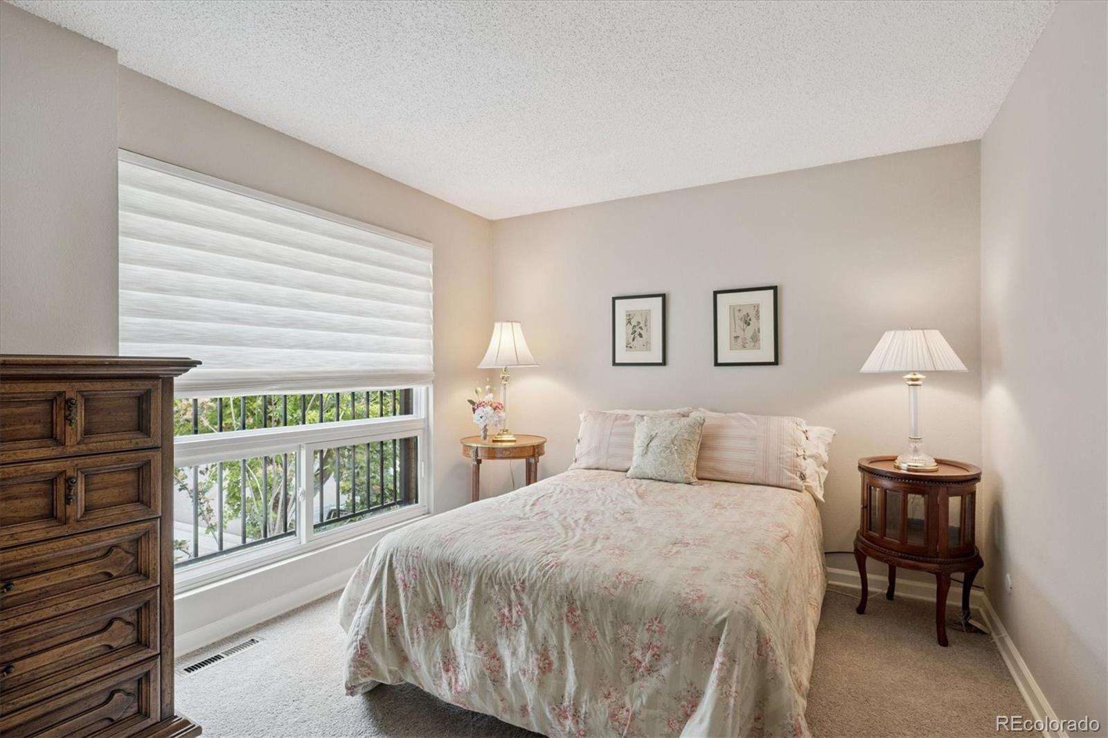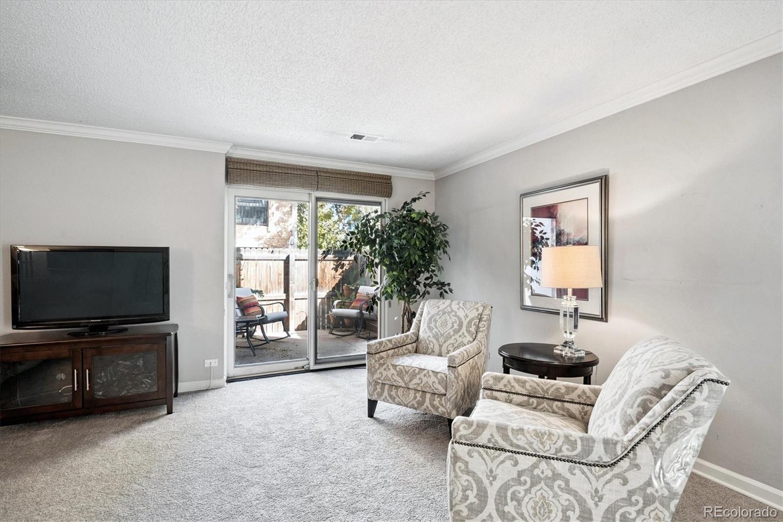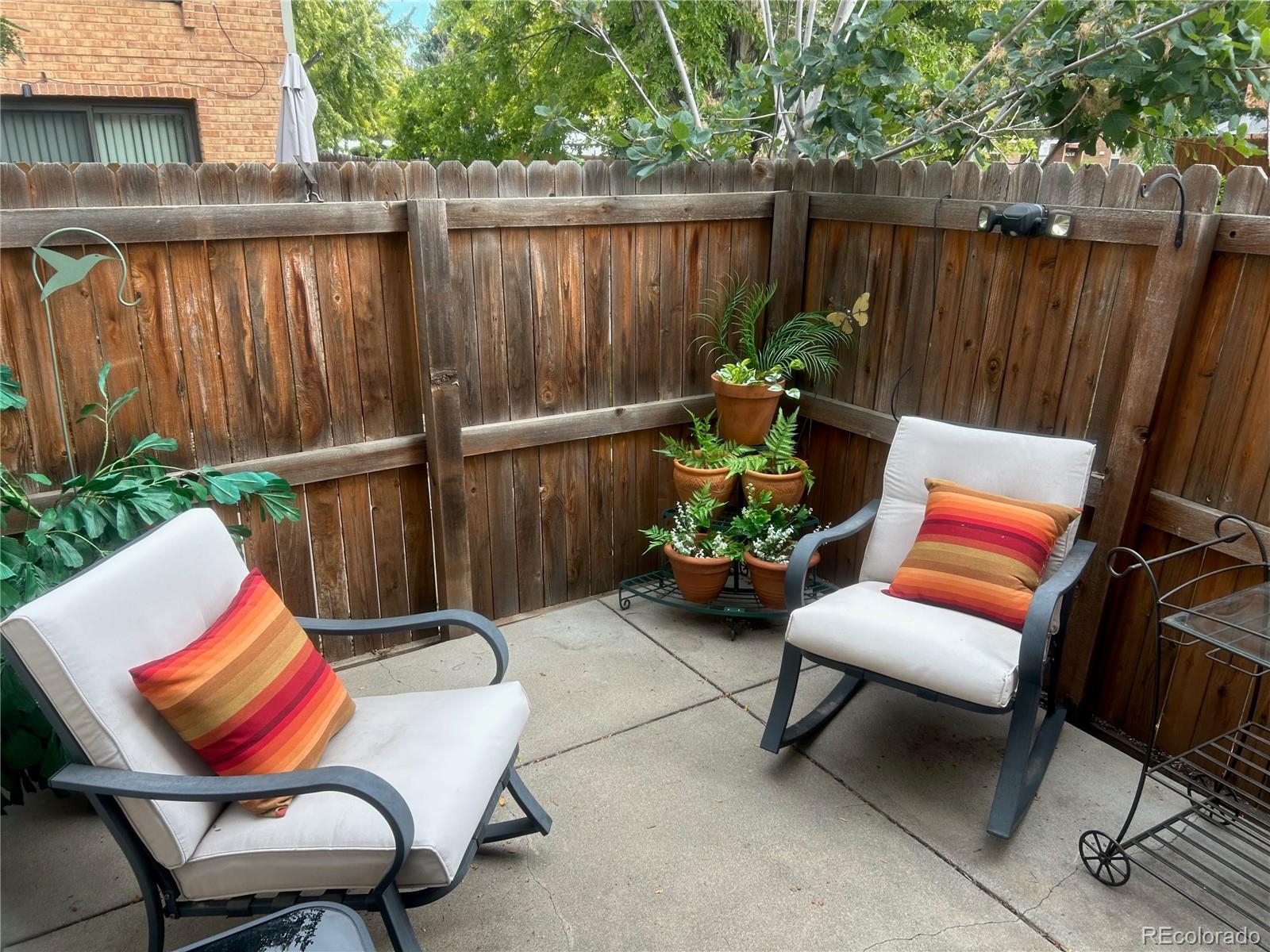 Light and bright 3 BEDROOM, 3 BATH corner unit townhome (legal description is condo) in SE Denver with over 1,500 square ft of living area and 2-assigned parking spaces in an under-cover, secure garage. The home has been remodeled to create an open living space. Double pane windows, sliding doors, and sliding interior glass doors were added. There is an in-home full size washer and dryer, granite kitchen counters, and new carpet throughout. Abundant sunlight fills the first floor which has a patio off the living area and balcony off the kitchen. The fenced private patio offers wonderful outdoor space for reading, a garden, and a place for a pet. The second floor has 3 bedrooms and 2 baths. Two of the three bedrooms have walk-in closets. The two assigned parking spaces in the garage have additional storage cabinets and are steps from the lower level entry door of the home. The building is approved for FHA loans. The HOA fee includes exterior maintenance (without roof), water, trash, sewer, snow removal, and maintenance of the grounds. Great location near Shopping, Parks, Restaurants, and the Colorado Athletic Club. The elementary school is Bradley International, a Blue Ribbon school offering a Gifted & Talented program and International Baccalaureate curriculum.