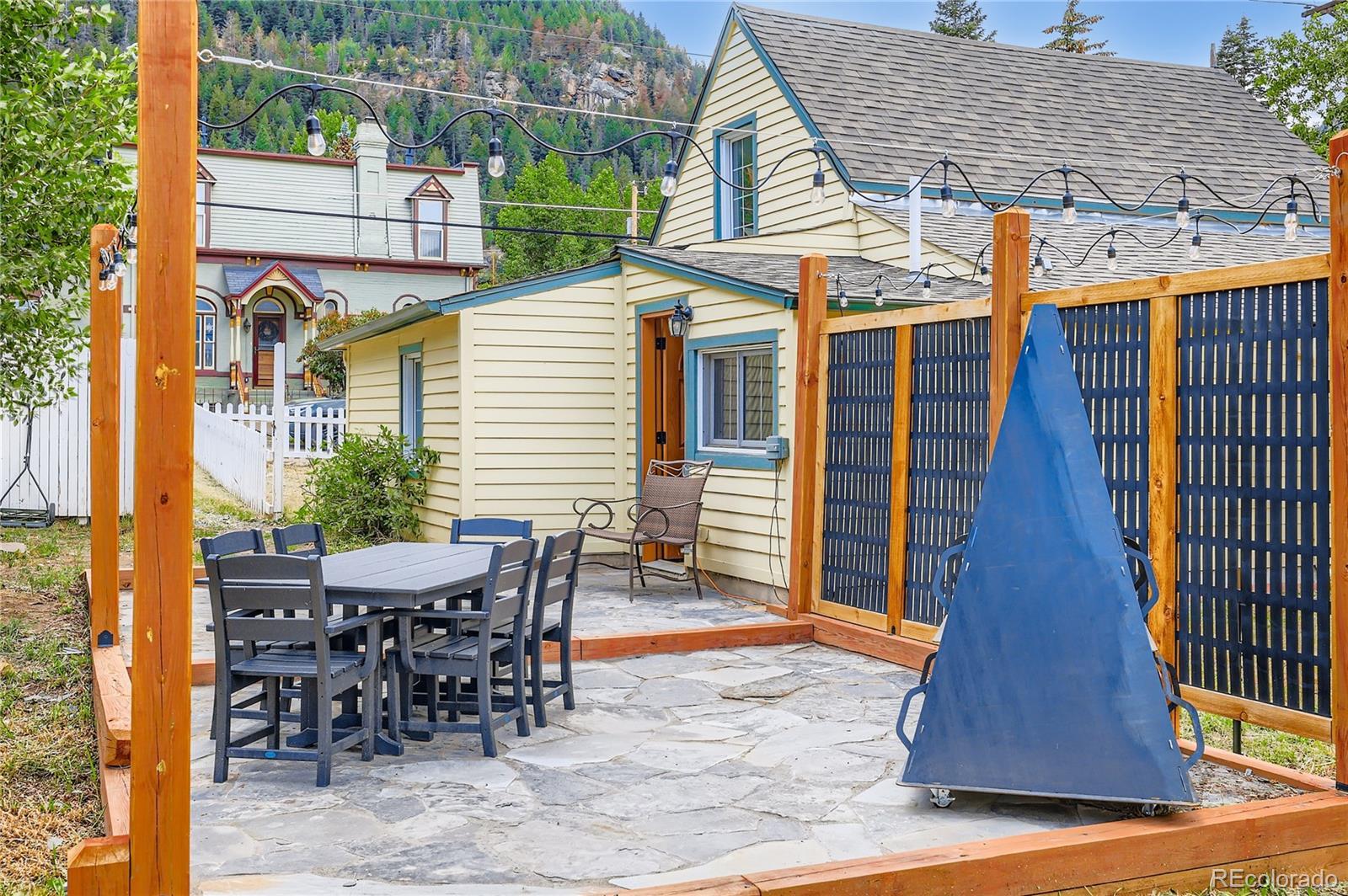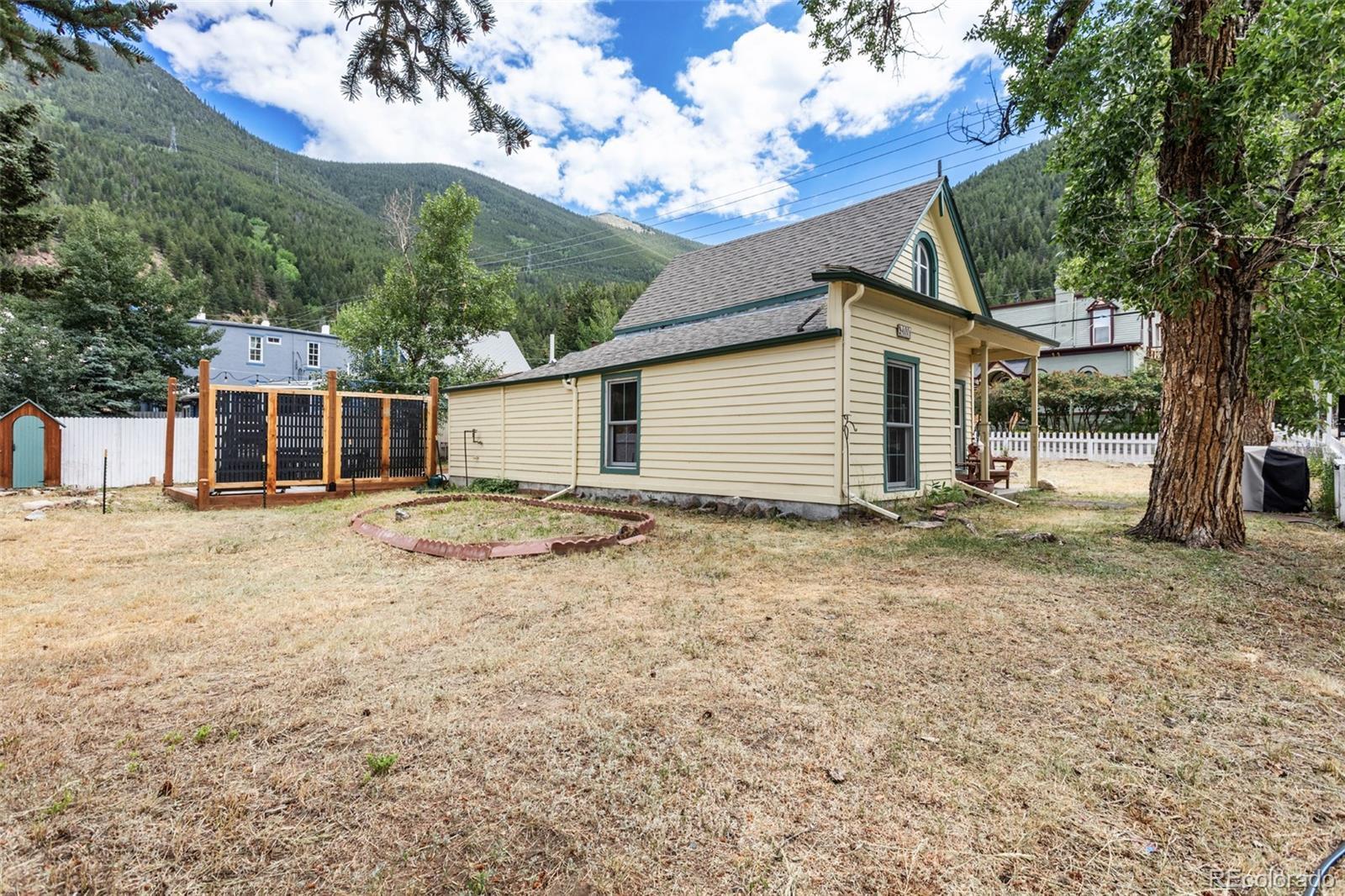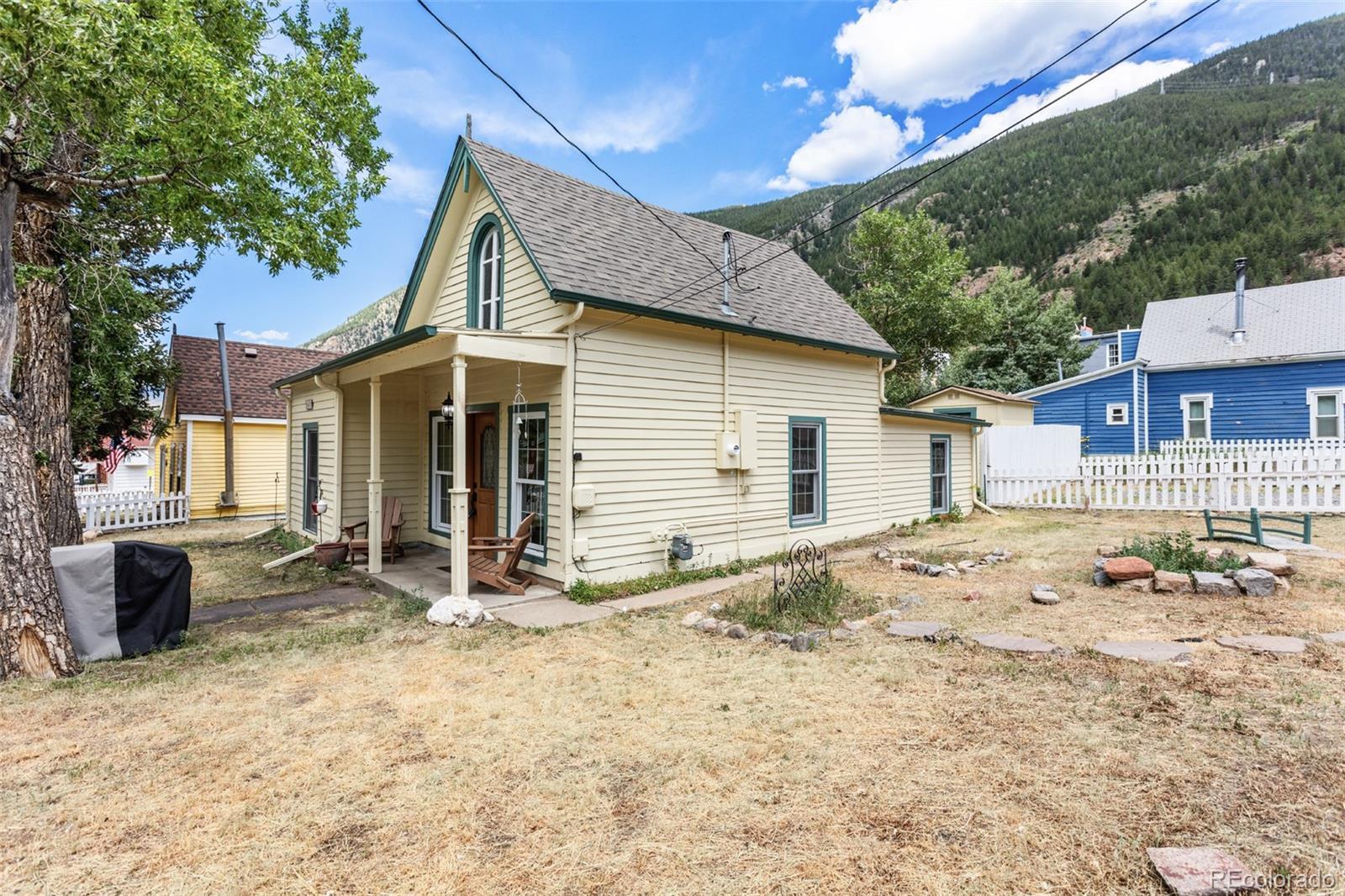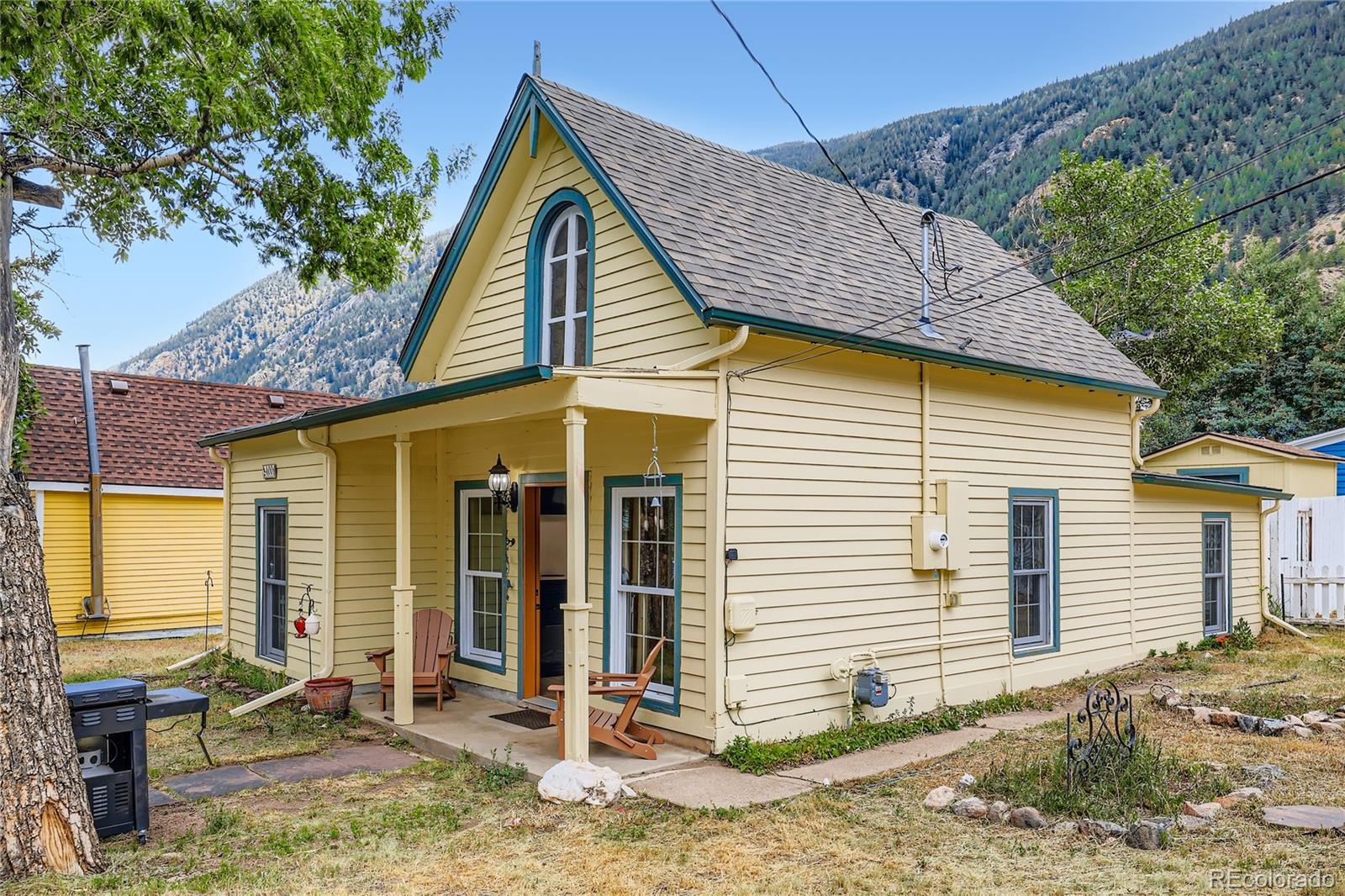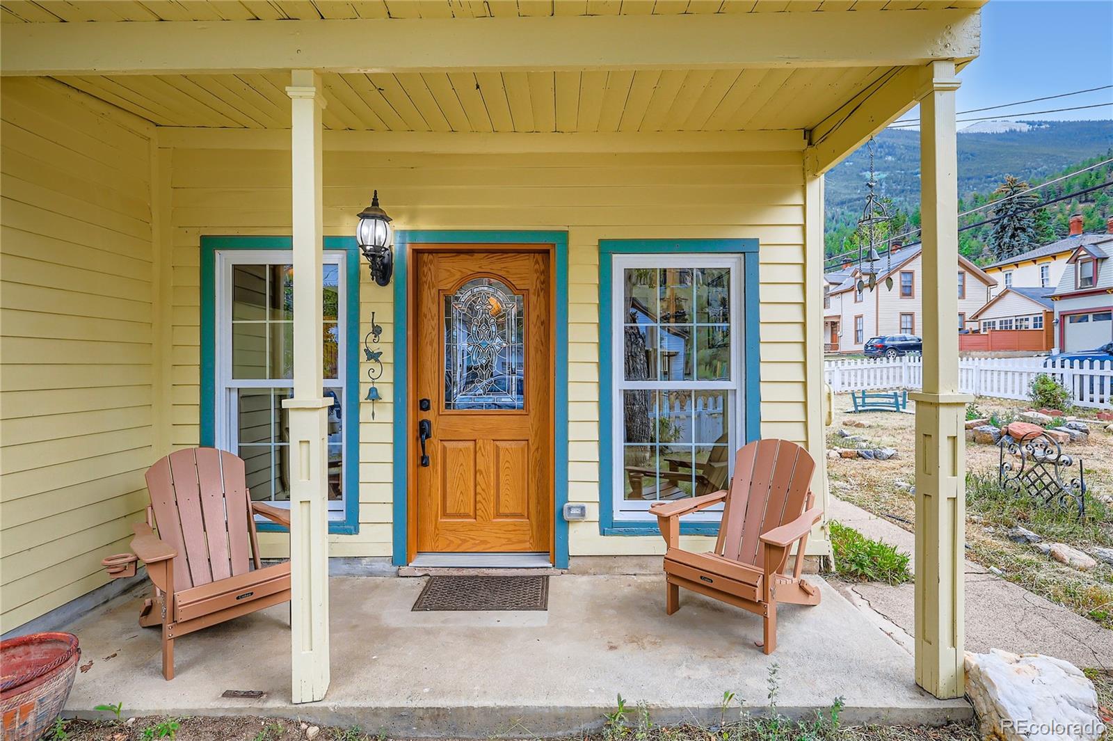 Step into timeless charm with this beautifully updated 1868 Victorian, ideally situated on a spacious and flat 7,000 SqFt corner lot with breathtaking 360° mountain views. Located just blocks from the heart of Downtown Georgetown, this home offers the perfect blend of historic character and modern upgrades. Enjoy Colorado’s seasons from the covered front porch or dine al fresco on the stunning flagstone patio in your fully fenced, oversized yard, complete with a privacy fence and ample off-street parking. With no stairs, room to build a detached garage, and large storage shed, the property offers incredible flexibility and convenience. Inside you'll find vaulted ceilings that elevate the open concept kitchen and living area. The updated kitchen features a large center island, a copper farmhouse sink, and modern finishes throughout. Updates completed by the previous owner include new electrical, plumbing, windows, foundation, flooring, roof, mechanical systems, and all interior elements, making this home truly turnkey. With 968 SqFt of thoughtfully designed living space, the home lives large and includes a stackable washer/dryer for added functionality. Whether you're looking for a full-time residence, a weekend mountain retreat, or a short-term rental opportunity, this property delivers. Enjoy world-class skiing, hiking, fishing, and biking just minutes away, with downtown Denver less than an hour’s drive. Experience the magic of historic Georgetown, a vibrant community where outdoor adventure meets small-town charm.