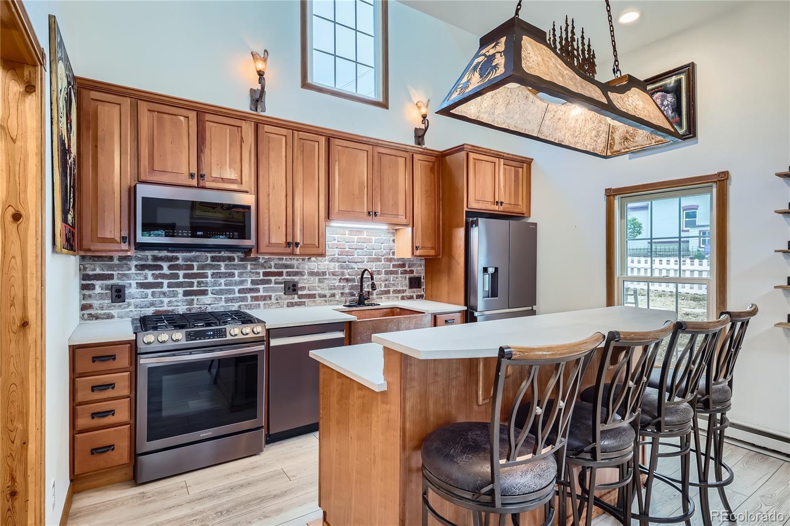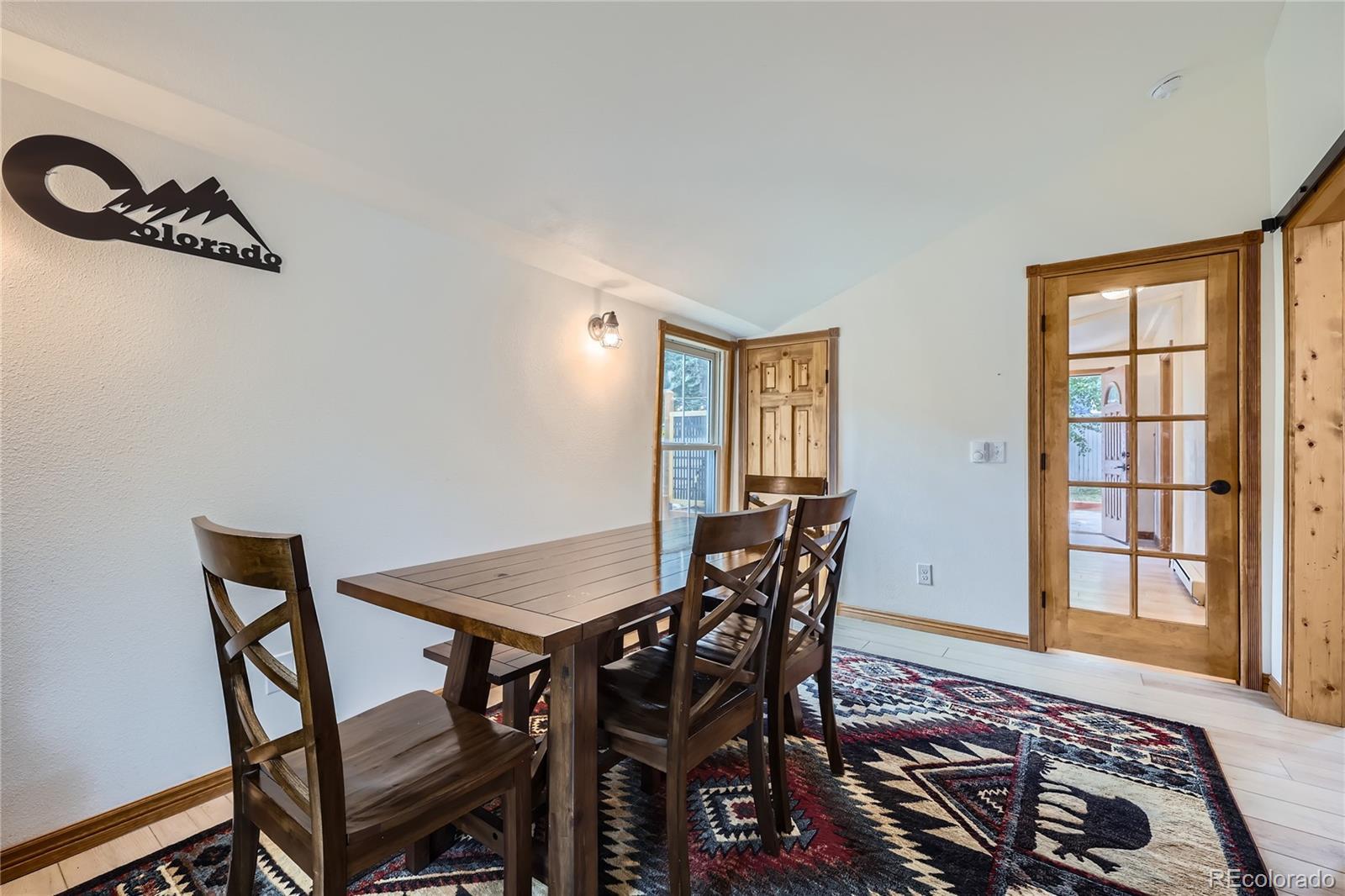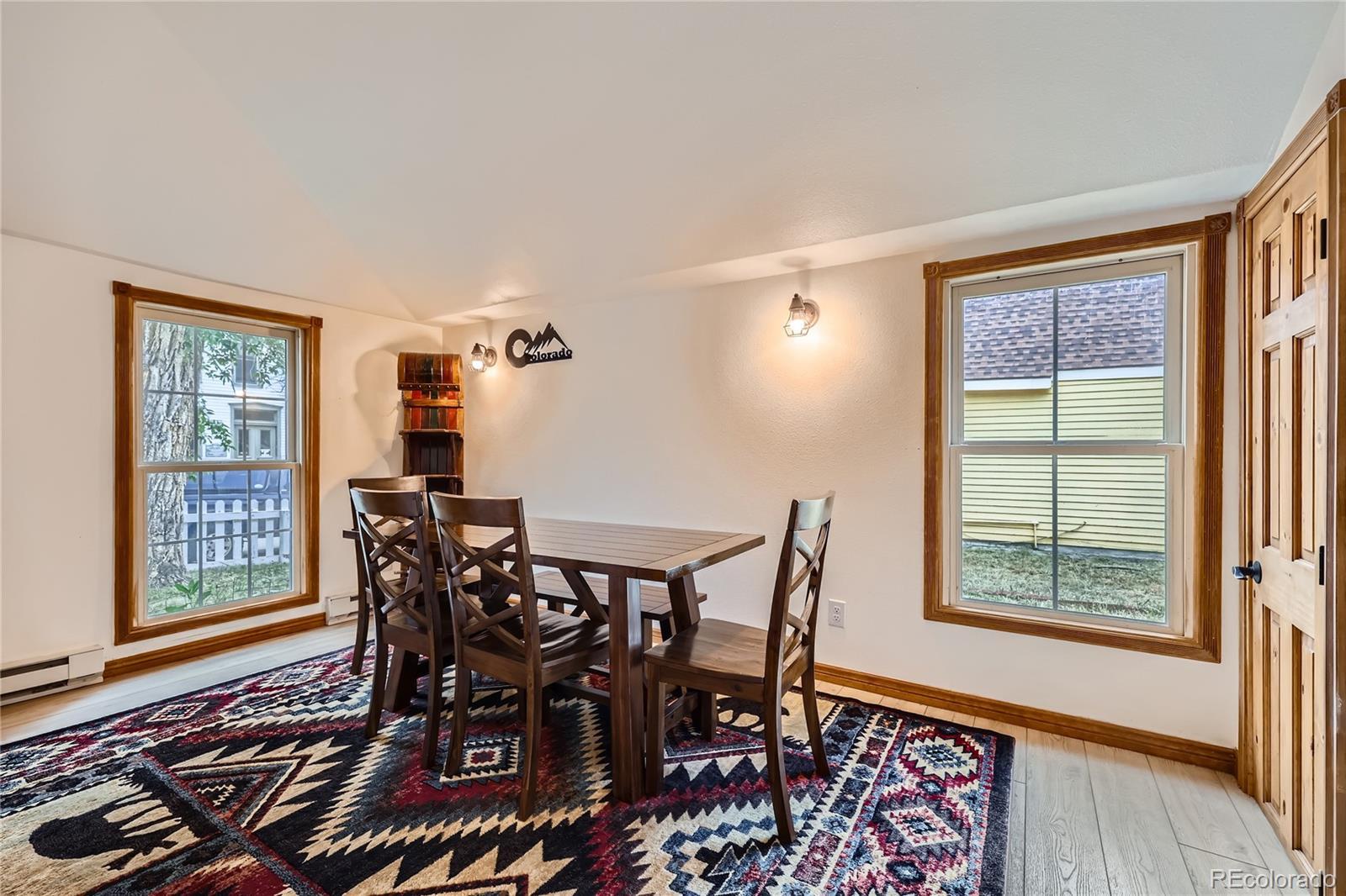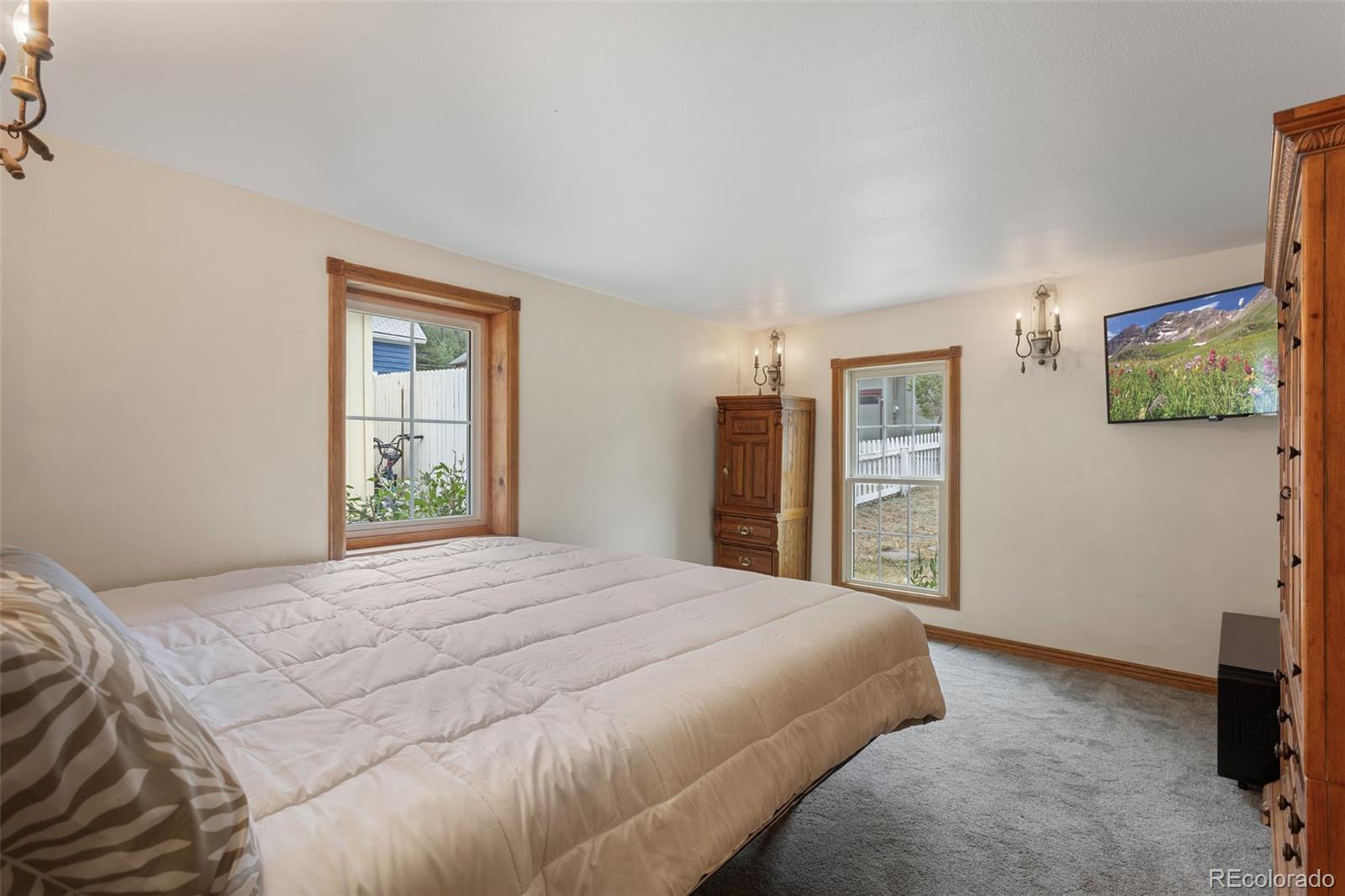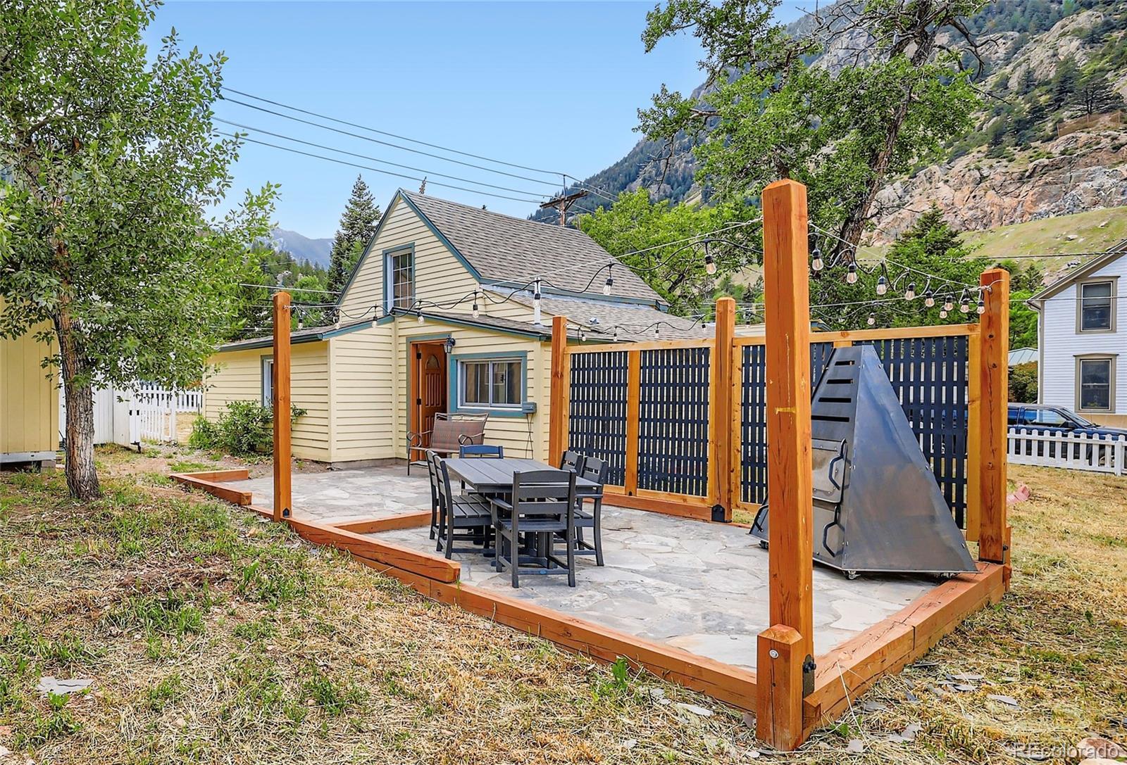 Step into timeless charm with this beautifully updated 1868 Victorian, ideally situated on a spacious and flat 7,000 SqFt corner lot with breathtaking 360° mountain views. Located just blocks from the heart of Downtown Georgetown, this home offers the perfect blend of historic character and modern upgrades. Enjoy Colorado’s seasons from the covered front porch or dine al fresco on the stunning flagstone patio in your fully fenced, oversized yard, complete with a privacy fence and ample off-street parking. With no stairs, room to build a detached garage, and large storage shed, the property offers incredible flexibility and convenience. Inside you'll find vaulted ceilings that elevate the open concept kitchen and living area. The updated kitchen features a large center island, a copper farmhouse sink, and modern finishes throughout. Updates completed by the previous owner include new electrical, plumbing, windows, foundation, flooring, roof, mechanical systems, and all interior elements, making this home truly turnkey. With 968 SqFt of thoughtfully designed living space, the home lives large and includes a stackable washer/dryer for added functionality. Whether you're looking for a full-time residence, a weekend mountain retreat, or a short-term rental opportunity, this property delivers. Enjoy world-class skiing, hiking, fishing, and biking just minutes away, with downtown Denver less than an hour’s drive. Experience the magic of historic Georgetown, a vibrant community where outdoor adventure meets small-town charm.