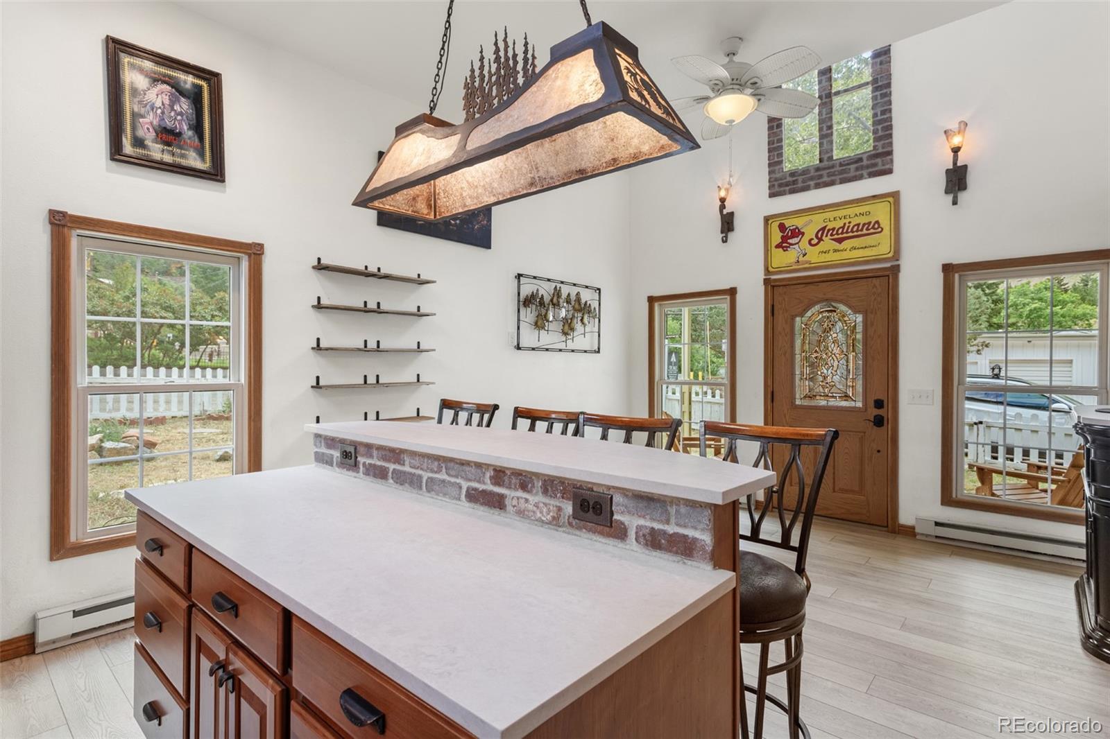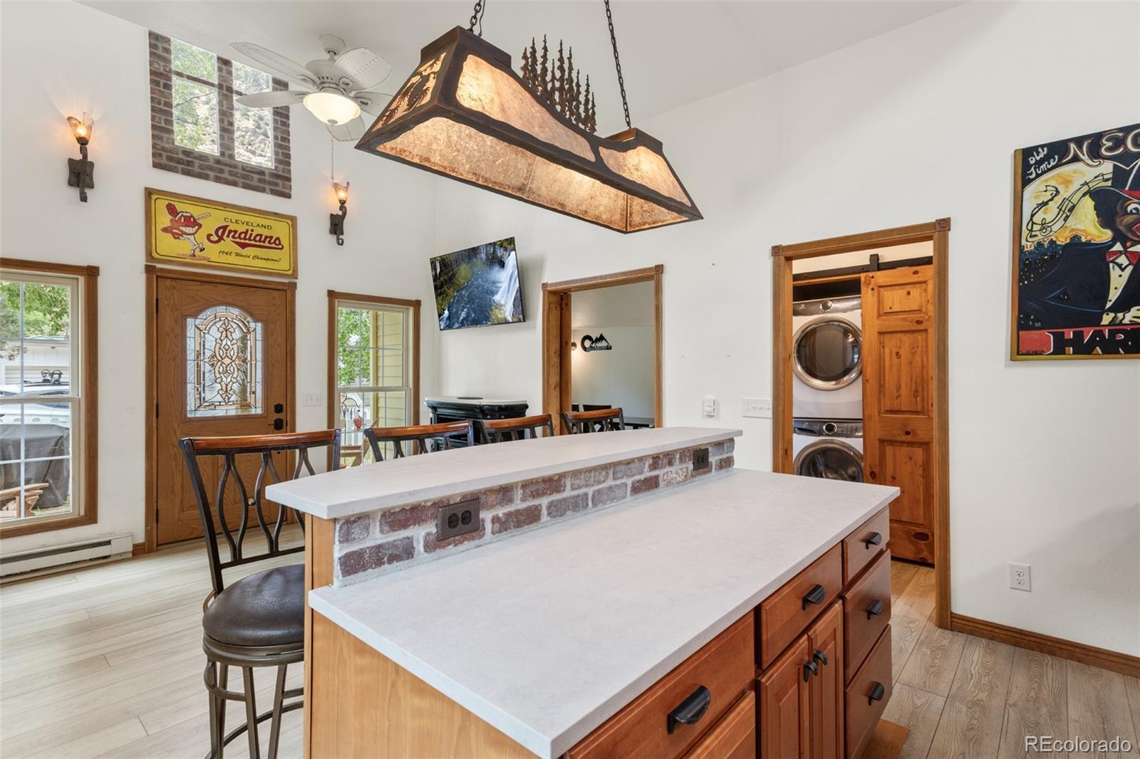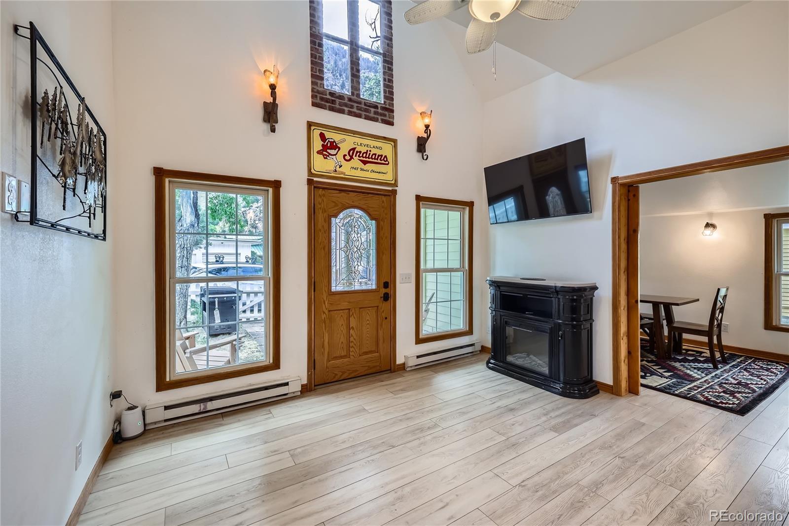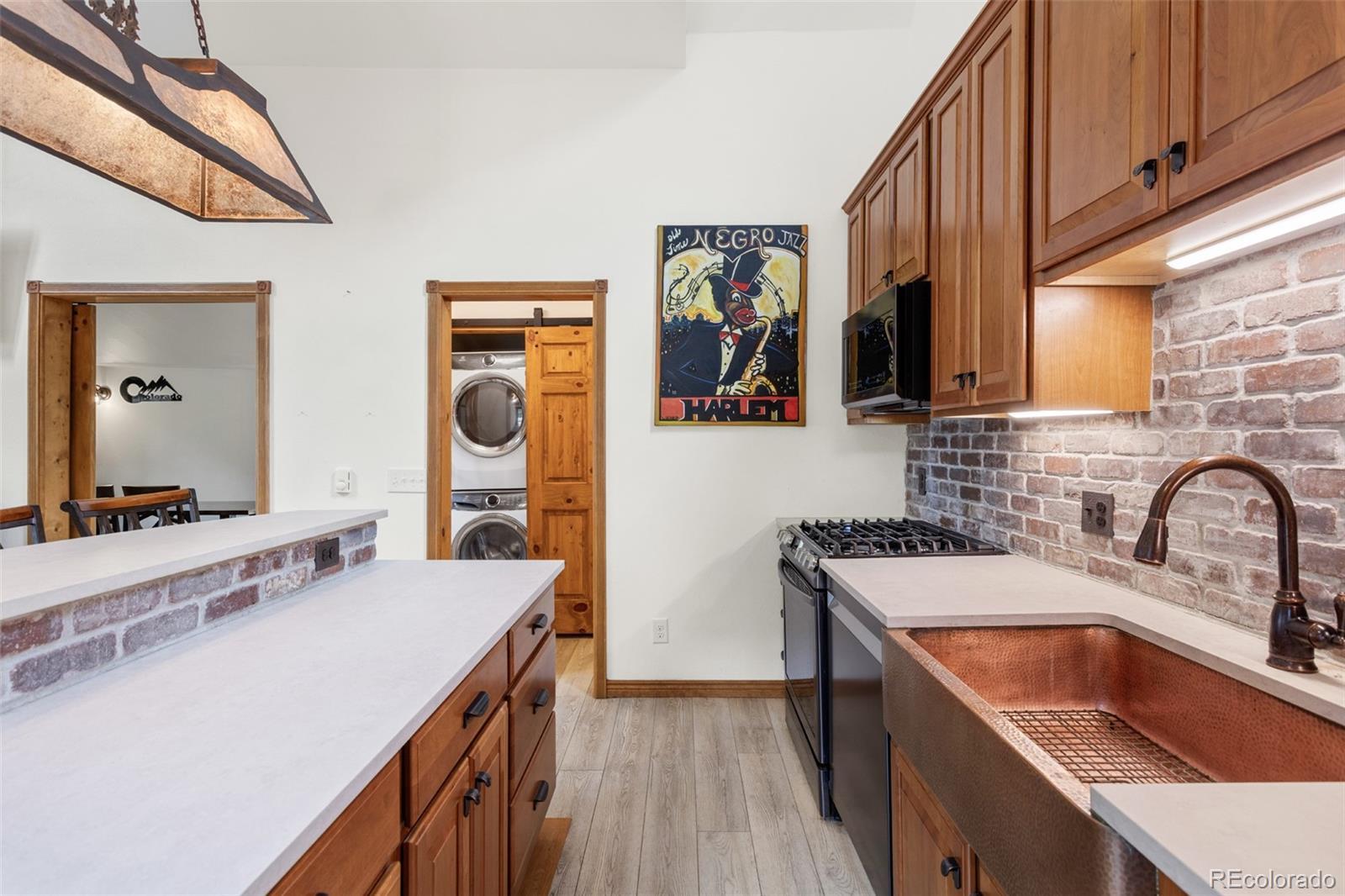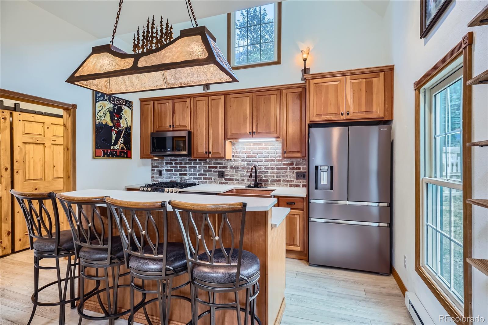 Step into timeless charm with this beautifully updated 1868 Victorian, ideally situated on a spacious and flat 7,000 SqFt corner lot with breathtaking 360° mountain views. Located just blocks from the heart of Downtown Georgetown, this home offers the perfect blend of historic character and modern upgrades. Enjoy Colorado’s seasons from the covered front porch or dine al fresco on the stunning flagstone patio in your fully fenced, oversized yard, complete with a privacy fence and ample off-street parking. With no stairs, room to build a detached garage, and large storage shed, the property offers incredible flexibility and convenience. Inside you'll find vaulted ceilings that elevate the open concept kitchen and living area. The updated kitchen features a large center island, a copper farmhouse sink, and modern finishes throughout. Updates completed by the previous owner include new electrical, plumbing, windows, foundation, flooring, roof, mechanical systems, and all interior elements, making this home truly turnkey. With 968 SqFt of thoughtfully designed living space, the home lives large and includes a stackable washer/dryer for added functionality. Whether you're looking for a full-time residence, a weekend mountain retreat, or a short-term rental opportunity, this property delivers. Enjoy world-class skiing, hiking, fishing, and biking just minutes away, with downtown Denver less than an hour’s drive. Experience the magic of historic Georgetown, a vibrant community where outdoor adventure meets small-town charm.