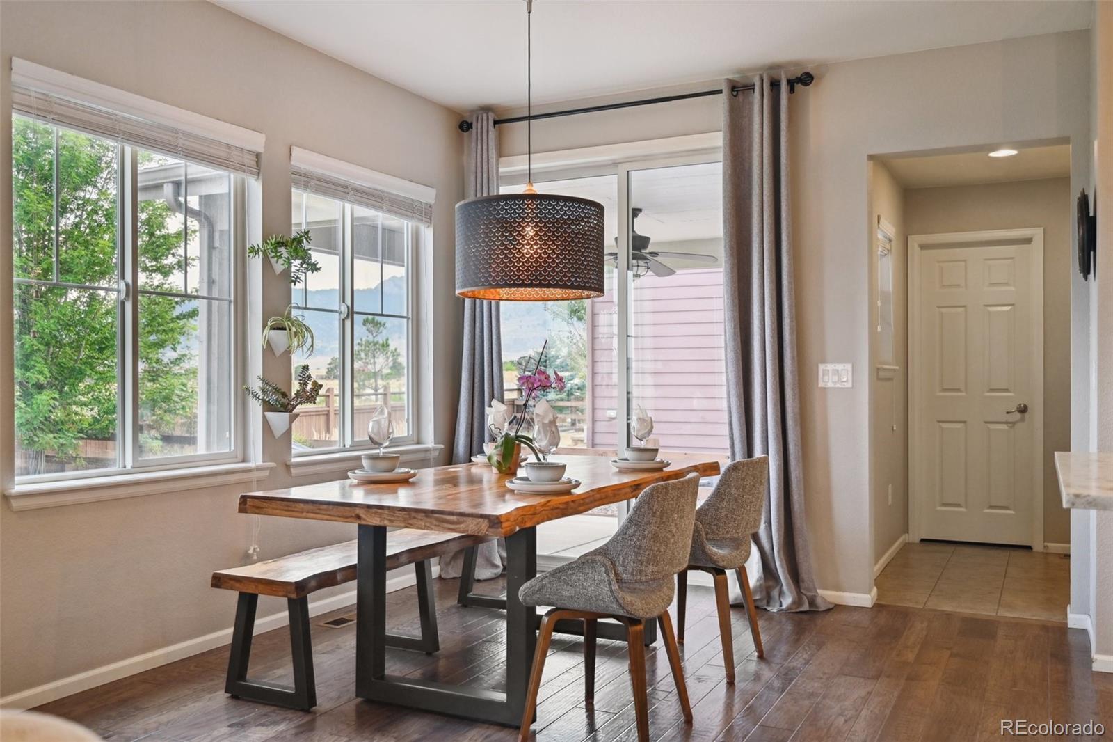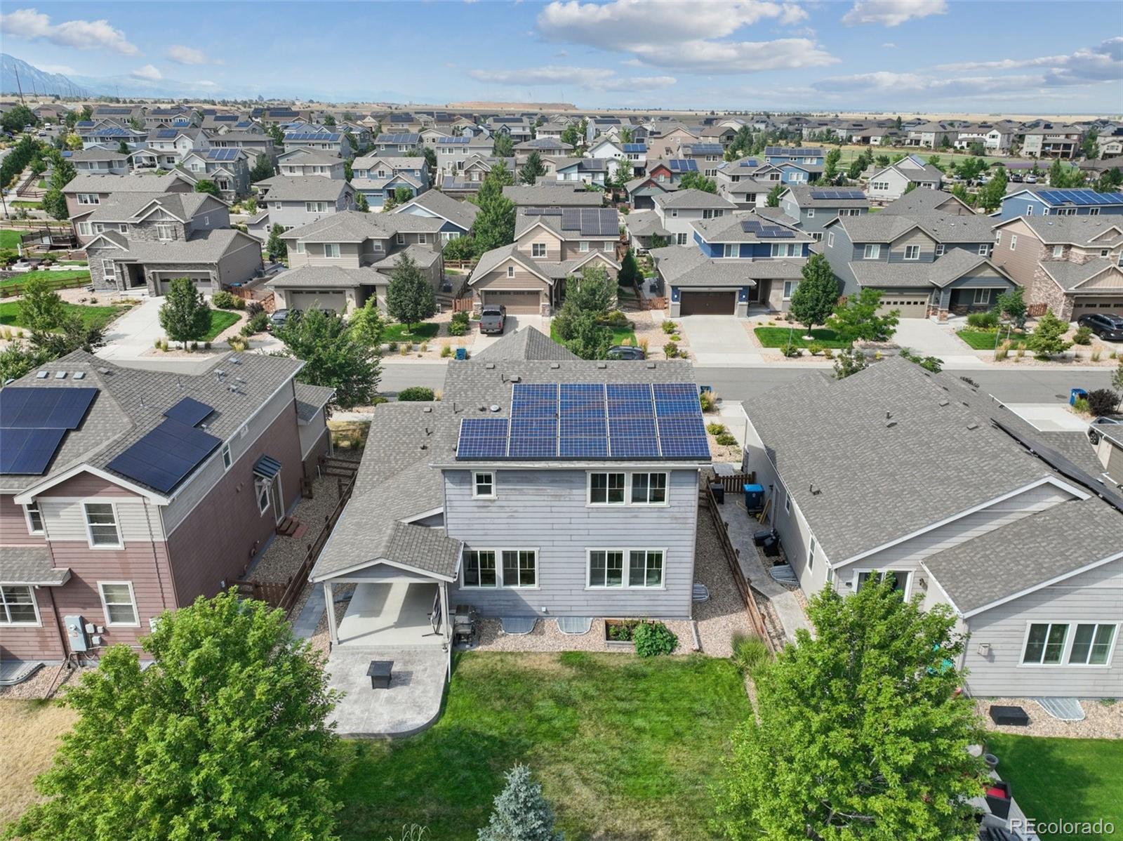NEW PRICE! Stunning 4-bedroom/4-bathroom home in Candelas with mountain views and no neighbors behind! The main floor features an open floor plan with a kitchen that features a large island, eat-in space, stainless steel appliances, and quartz countertops—seamlessly connected to a bright, inviting living room with a gas fireplace. Work from home with ease in the dedicated main floor office space. Upstairs, you’ll find three bedrooms, including a spacious primary suite with an en-suite 3/4 bathroom featuring dual sinks and a glass shower. The finished basement offers a large family room, an additional bedroom, and a 3/4 bathroom with steam shower—perfect for guests. Enjoy the beautifully landscaped front and back yards, an extended back patio (partially covered), and gorgeous mountain views RIGHT FROM YOUR BACKYARD! Energy upgrades include leased 4.68 kW solar panels to help reduce utility costs ~ summer energy bills typically run under $100. Located within walking distance (just 1/4 mile) from Three Creeks K-8 School and as part of the vibrant Candelas community, you’ll have access to a clubhouse, TWO fitness centers, TWO pools, tennis courts, and scenic trails. Conveniently located near Highway 93 for quick access to Golden to the south and Boulder to the north, and close to Rocky Flats National Wildlife Refuge and Leyden Rock Open Space. This home blends beauty, comfort, and convenience—making it a rare find in a prime location!