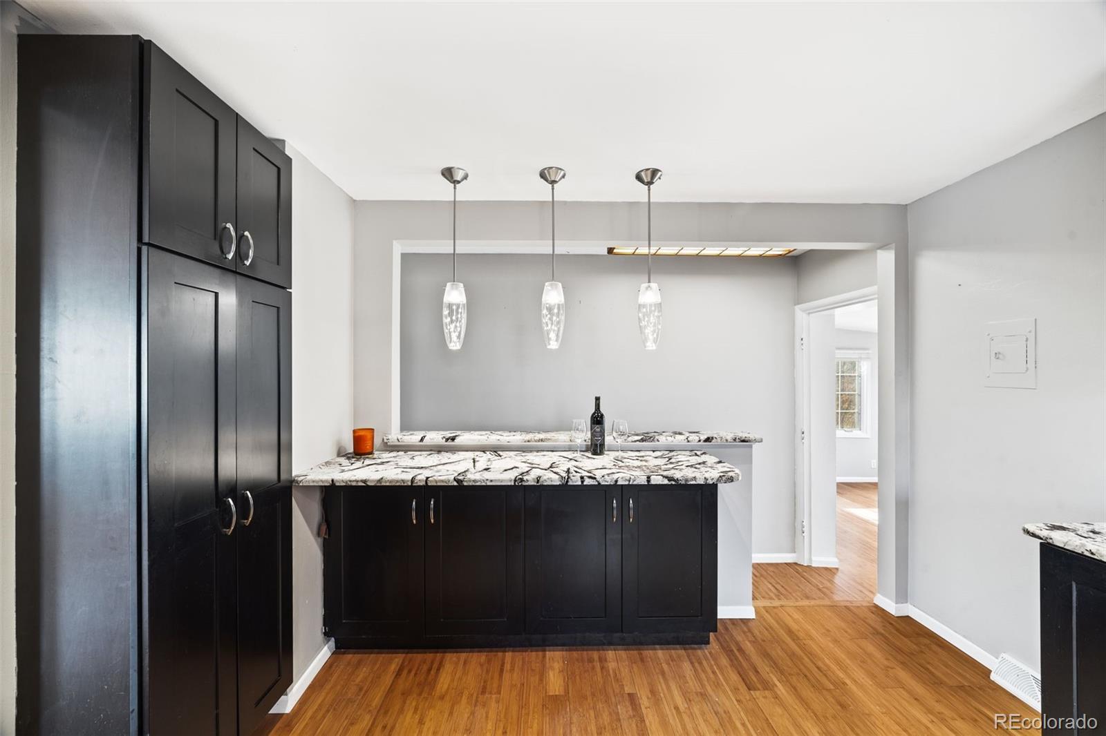 Welcome to this beautifully updated and well-maintained brick ranch. Located in the heart of Arvada’s sought-after Alta Vista neighborhood and less than 2 blocks from the Fitzmorris Recreation Center. This 3-bedroom (basement bedroom is non-conforming), 2-bath home offers comfortable living with 2,408 square feet. The original hardwood floors have been uncovered on the main level with newer bamboo floors in the kitchen and sunroom. Gorgeous granite countertops anchor the spacious custom kitchen where you will enjoy plenty of storage and eat-in dining at the built in bar. The main floor bath has been recently updated and is clean and bright. Enjoy the views overlooking the backyard from your cozy, heated sunroom. Downstairs, the full basement offers a large family room, media center, or game room. In addition, there is non-conforming bedroom/office with an updated ¾ bathroom. A large unfinished workshop/storage area is a great flex-space. The huge laundry/utility room has a sink and even had a kitchenette at one time. Outside, enjoy the large patio, fully fenced yard and detached 2-car garage. New windows! Sewer main has been replaced! Located just minutes from Olde Town Arvada, parks, schools, trails, and shopping. Easy access to light rail too. Schedule your showing today!
