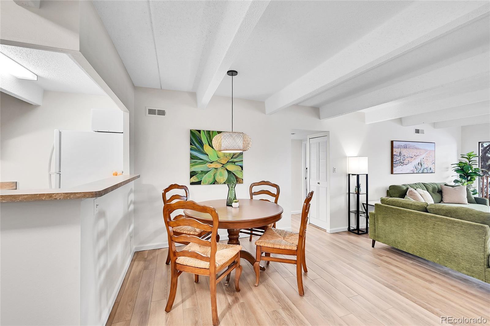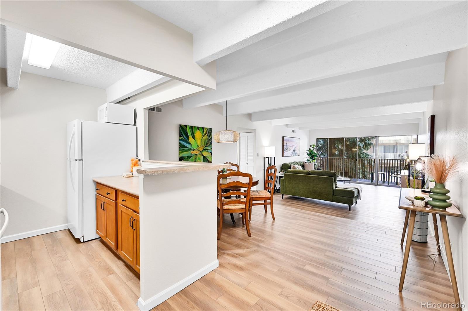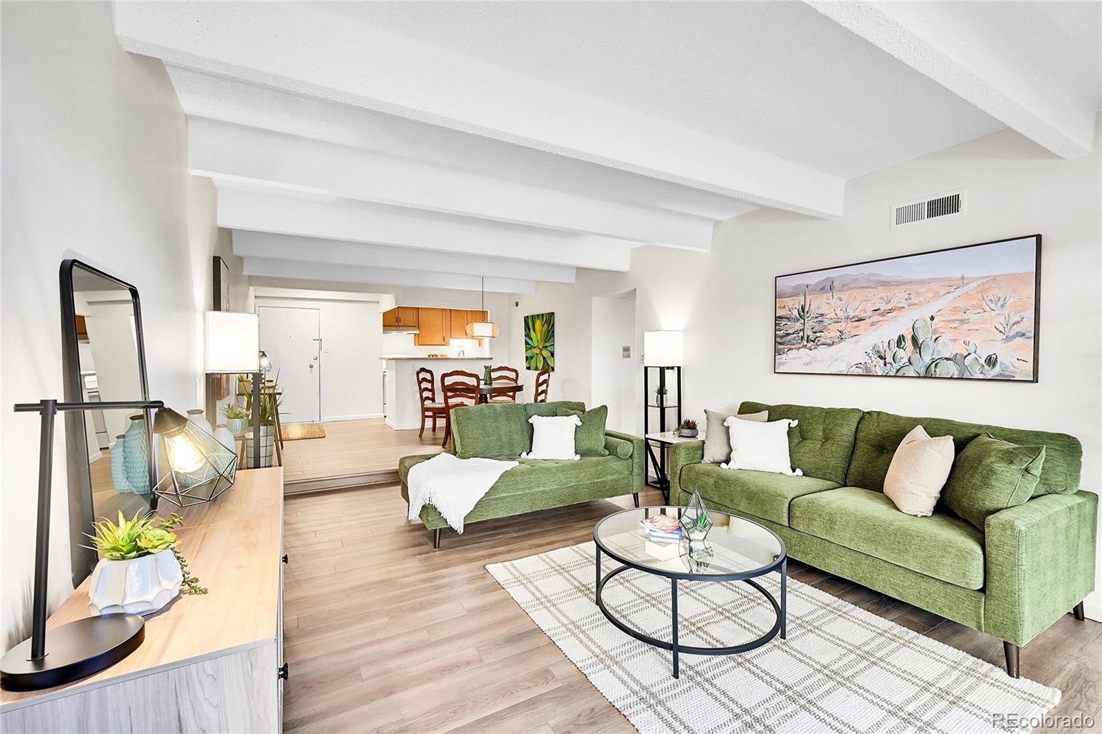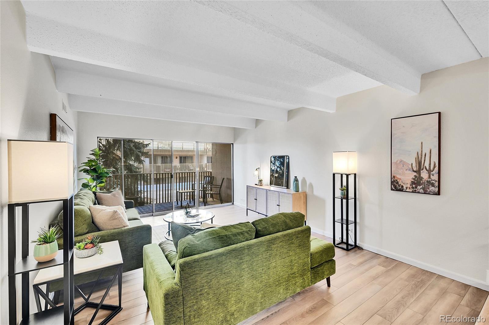 Welcome to this elegant, corner-unit condo with stunning mountain views. This home offers an open-concept living area that feels airy and expansive, perfect for both relaxation and entertaining. Step out onto your large private balcony and enjoy the mountain scenery. Inside the updated kitchen featuring sleek finishes await your gourmet creations. Freshly painted throughout, this unit has brand-new carpet and luxury plank vinyl. Formal dining flows into large living area with sliding glass doors onto balcony. Primary suite enjoys huge triple door closet and balcony access. The amenities of this gated community include indoor pool and hot tub, common laundry area, fully-equipped fitness center, meeting room for business needs or gatherings. This community is conveniently located with easy access to I-25, the Tech Center, Light Rail, and bike trails including the High Line Canal. Restaurants, grocery stores and shopping within walking distance including Whole Foods and Target. Take advantage of this lovely condo as an investment or a place to call home!