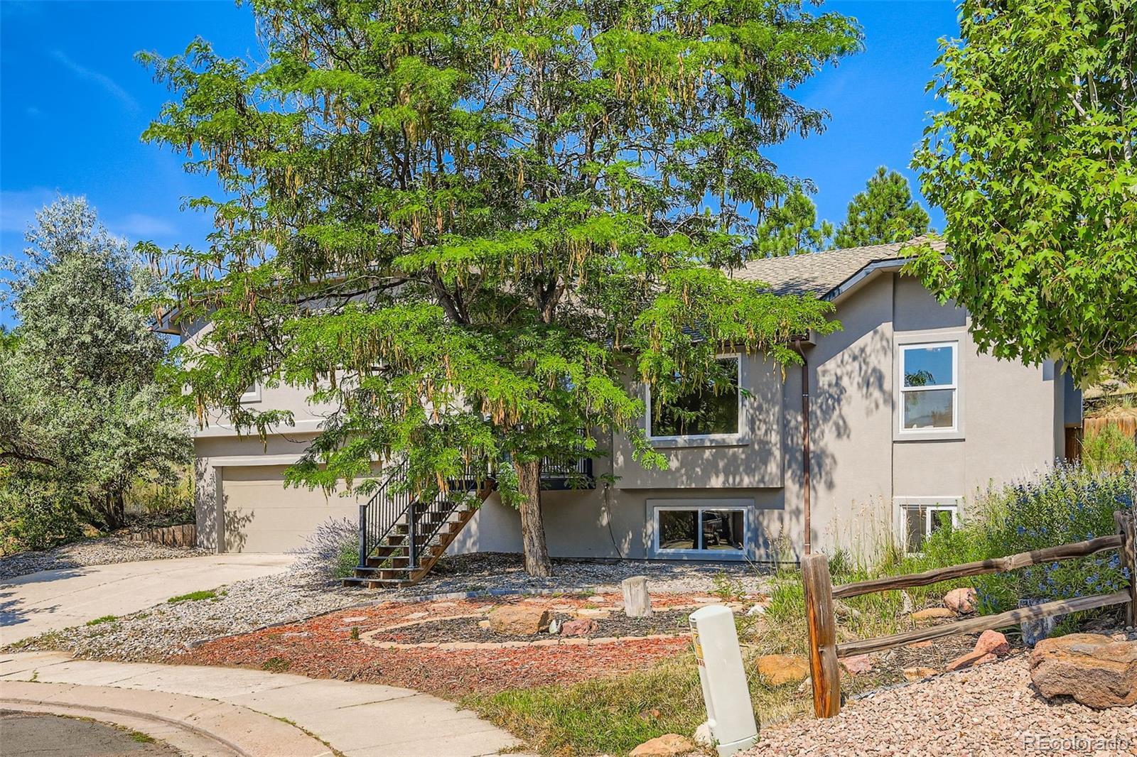 This! Nestled in the picturesque foothills of Colorado Springs, this beautiful stucco home is located in the highly sought-after Comstock Village. Enjoy the tranquility of a cul-de-sac backing to open space, providing an idyllic blend of privacy and nature. Step inside to discover an inviting atmosphere, highlighted by vaulted ceilings that create an airy feel filled with abundant natural light. This spacious home offers multiple open areas, generously sized bedrooms, perfect for family living and entertaining. The rear yard features a stamped concrete patio, surrounded by mature landscaping, making it an ideal retreat for outdoor gatherings or peaceful relaxation. The large front room is flexible in use, with the formal dining area easily transforming into a cozy office niche. The kitchen is a chef’s dream, boasting ample counter space, fantastic natural light, seamlessly flowing into the main family gathering spaces. Cozy up by the wood-burning fireplace enhancing the warm Colorado character of this home. Upper Level Retreat: Ascend just a few steps to find the upper bedrooms and baths, showcasing gleaming floors and modern updates. The primary suite is a private oasis, spacious, sparkling, designed for comfort & relaxation. There's a foyer leading to the 634 square foot garage. This level is an entertainer's dream, featuring a large open area perfect for movies, music, reading, or recreation. With a garden-level bedroom filled, garden natural light, 3/4 bathroom, charming fireplace, this space can easily serve as an in-law suite. This home has undergone numerous updates, reflecting an elegant family style that is truly inviting. Award-winning Academy School District 20, affords access to exceptional schools, parks, & recreational opportunities: Ute Valley Park, Garden of the Gods, Mount Blodgett Open Space. Convenient access to shopping, local restaurants, and I-25. Experience the best of Colorado Springs living here.. Come see today!