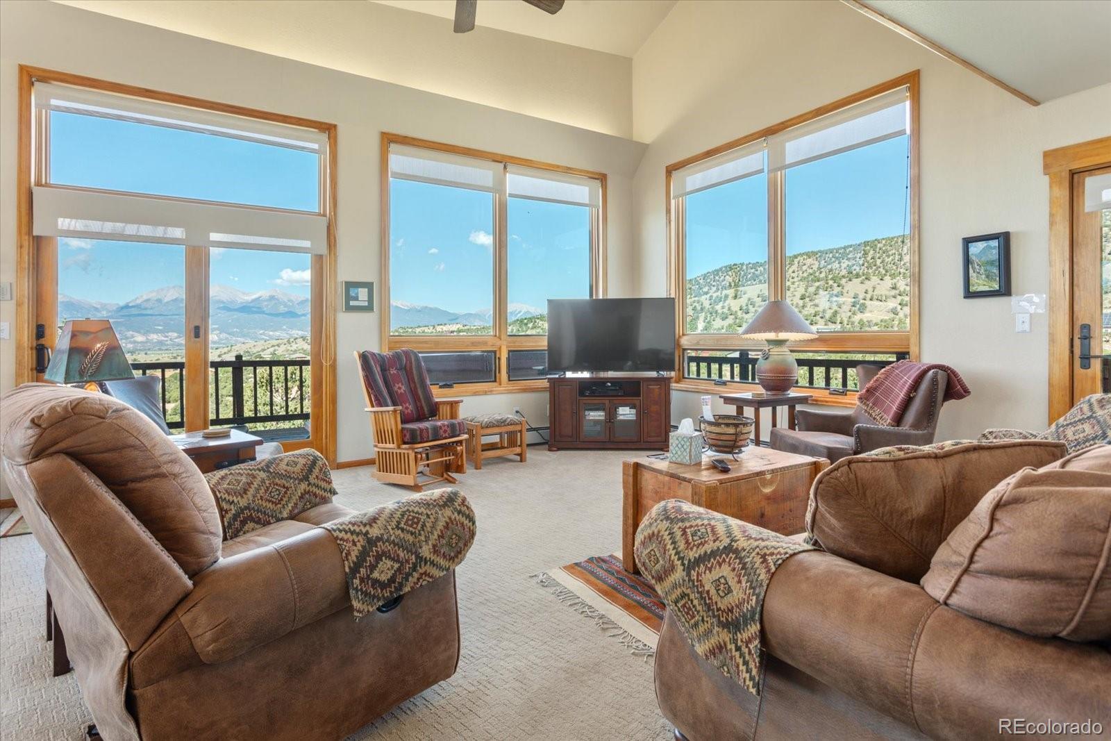This exceptional mountain retreat offers the perfect blend of comfort, charm and breath-taking scenery. With expansive panoramic views of the surrounding peaks, this home is ideal as a second residence, a down-sizing opportunity, or even a potential short-term rental (subject to Chaffee County approval). Thoughtfully maintained, gently used and move-in ready, it combines modern upgrades (both bathrooms have been recently remodeled with tile, double vanities and quartz countertops) with timeless mountain character. Two cedar lined closets can be found both upstairs and downstairs. Spacious and functional layout with an open living, dining and kitchen area. Bright, airy interior with an open loft space at the top of the stairs, perfect for an office or reading nook, or guest over-flow. New Anderson windows with quality window treatments and doors. Radiant Baseboard Heat: hot water fueled system with annual boiler inspections for peace of mind. Home is equipped with reverse osmosis and a water softener for quality. Fresh interior paint done in 2011, deck was just stained in Sept 2025. Don't miss the deck with hot tub for relaxing evenings out under the stars or the gas burning stove in the living room for those cozy evenings in. Large laundry room features utility sink and there is a separate utility room for easy-access. Smoke and pet free! This property is a rare opportunity to own a well-cared for home: pride of ownership shows throughout. Very close to BLM and single track bike trail North Back Bone that takes you into downtown Salida. Whether you are looking for a weekend escape, a full-time residence, or a down-sized lifestyle, this home will deliver. Furnishings are negotiable.