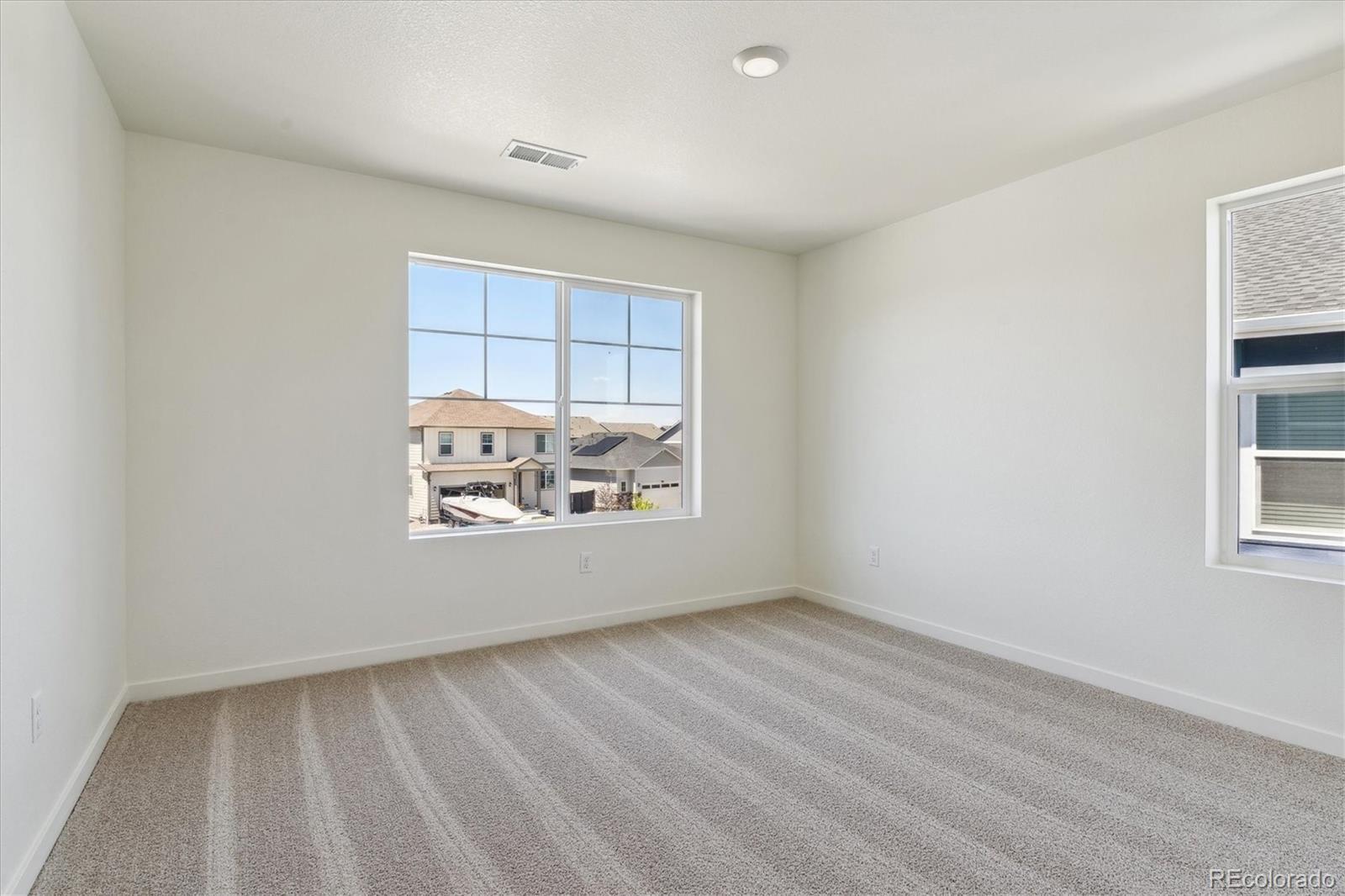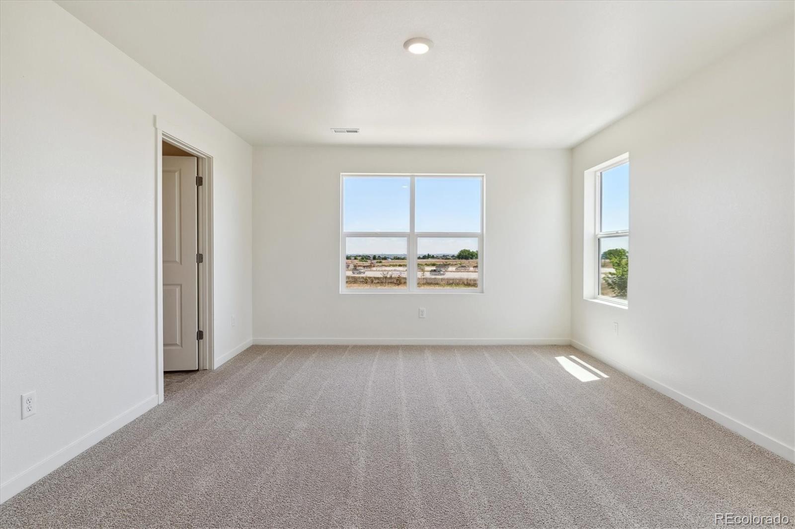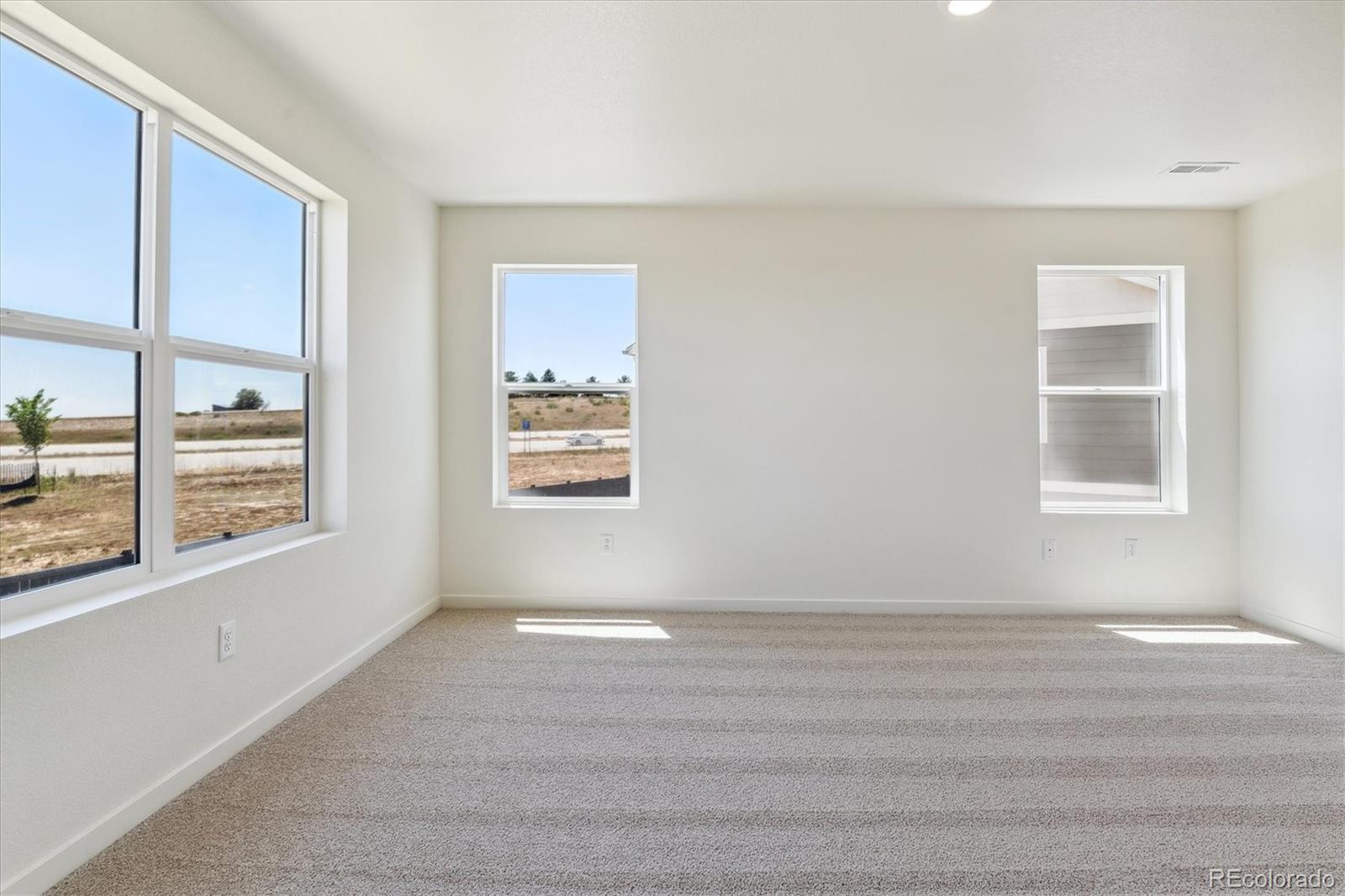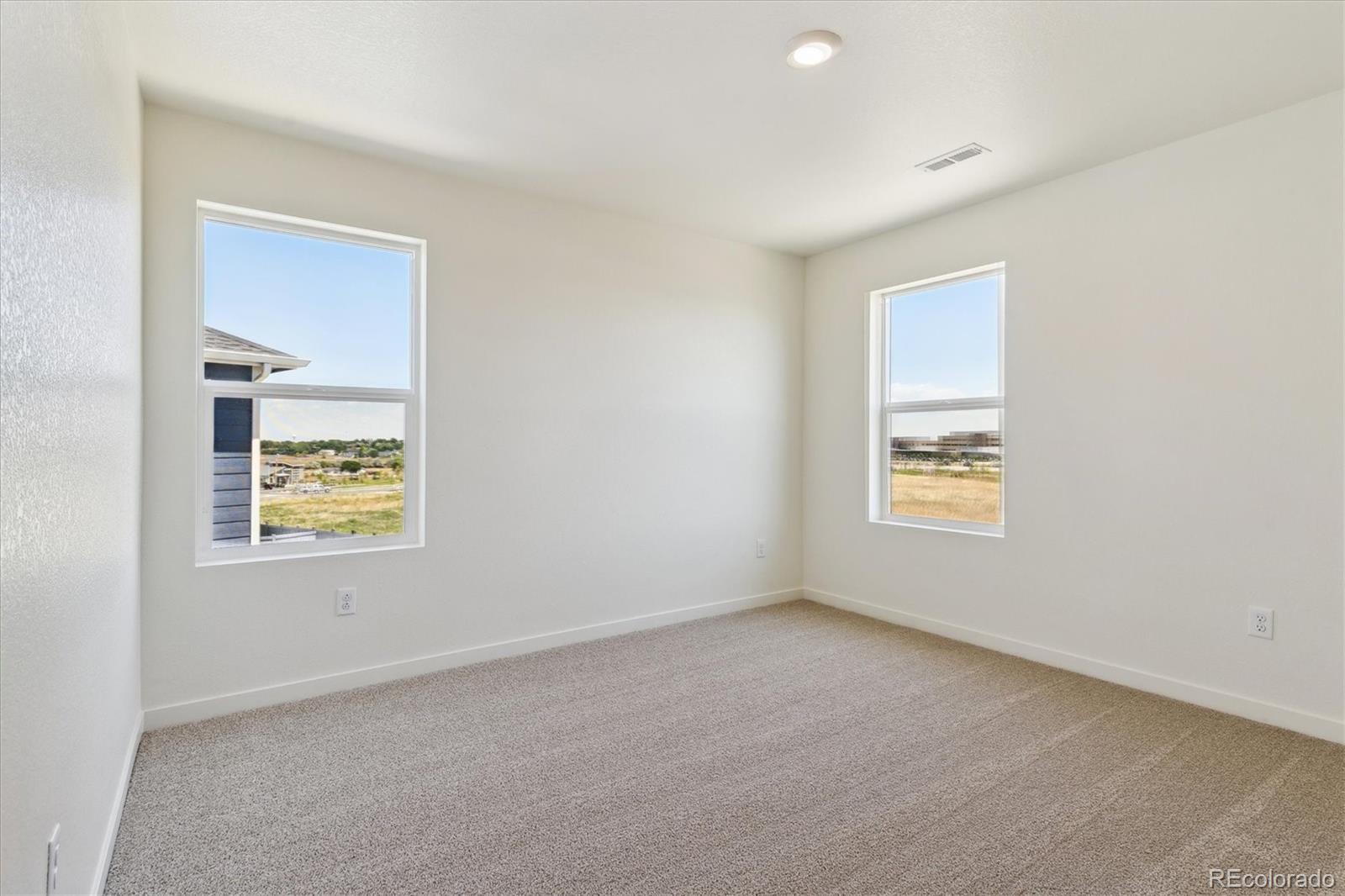 This spacious 5-bedroom, 3-bath home offers multi-generational flexibility with a main-floor bedroom and full bath plus a study/flex space. The modern kitchen features a large island, white cabinetry, a pantry, stainless steel appliances (gas range), and quartz countertops. Upstairs, enjoy a primary suite with a walk-in closet and ¾ bath, a loft-style living area, three additional bedrooms, and another full bath. The basement provides extra space for storage or future expansion, while breathtaking Mountain Views enhance the home’s appeal. Additional highlights include a 2-car garage, smart home technology, tankless water heater, 9’ ceilings, and durable cement fiberboard siding. Whether you enjoy hiking, biking, or skiing, the surrounding area offers endless opportunities to explore the great outdoors. Additionally, Vista Meadows is only 30 minutes from Denver International Airport (DIA), making travel a breeze. ***Estimated Delivery Date: October. Photos are representative and not of actual property***