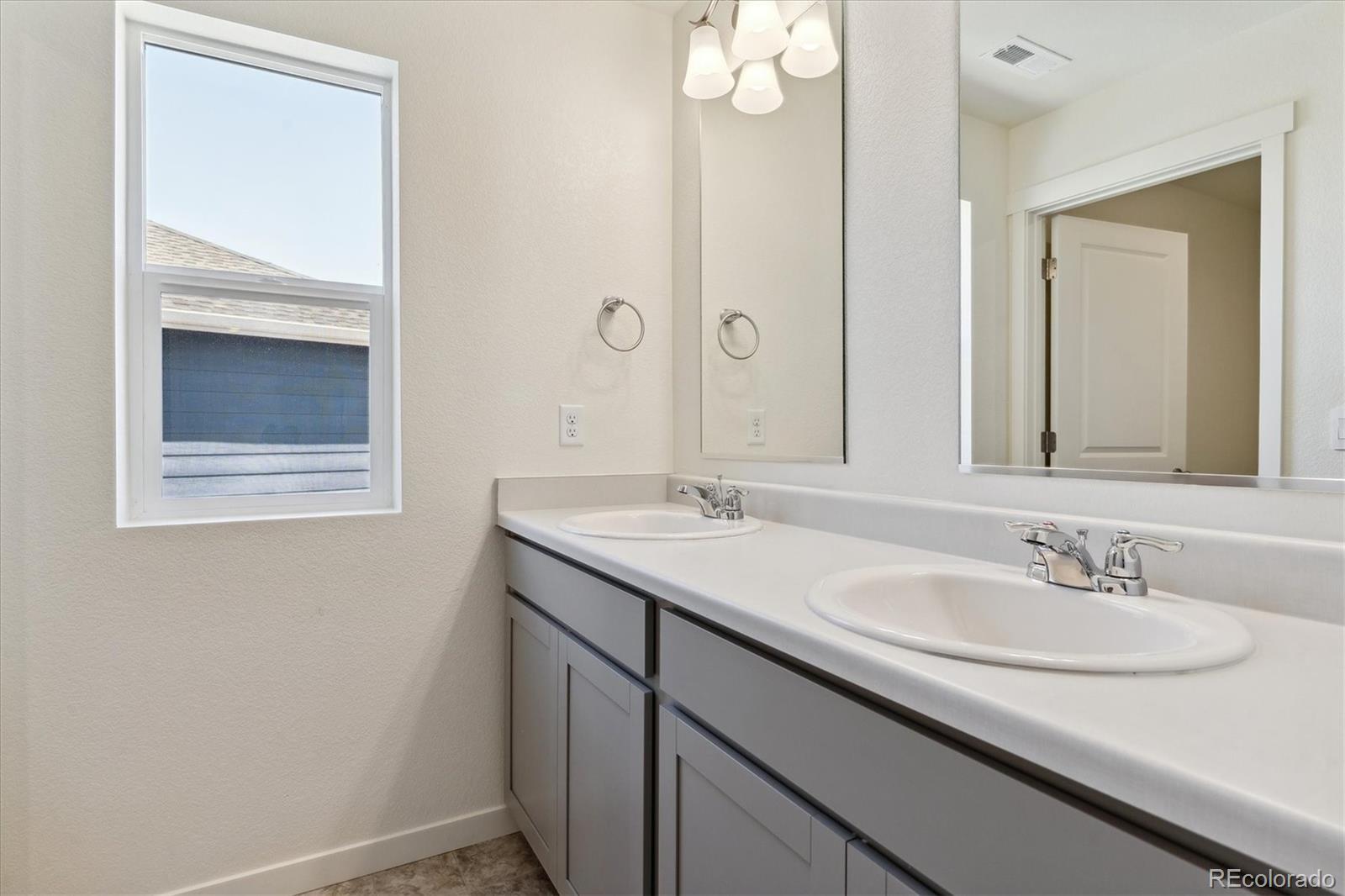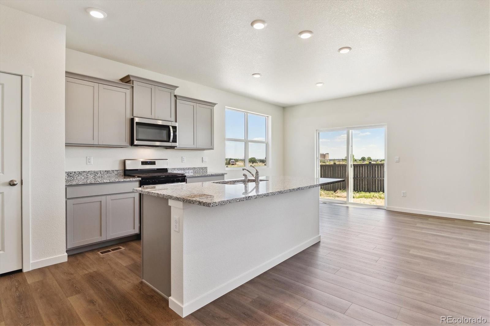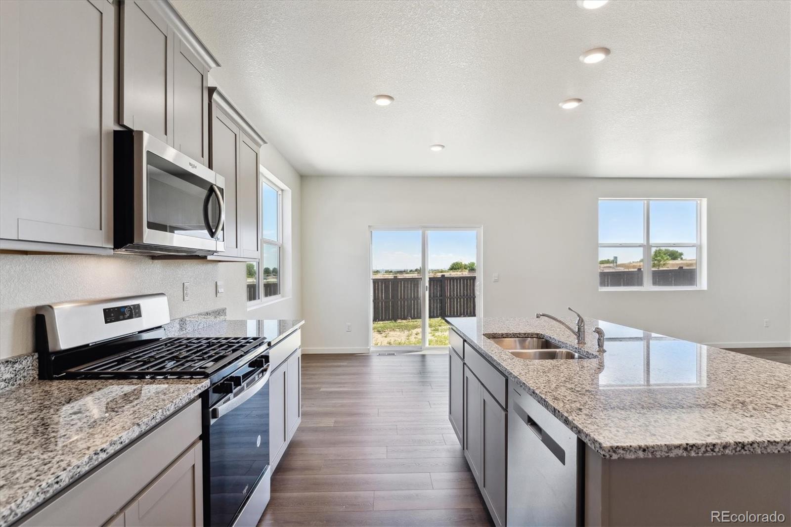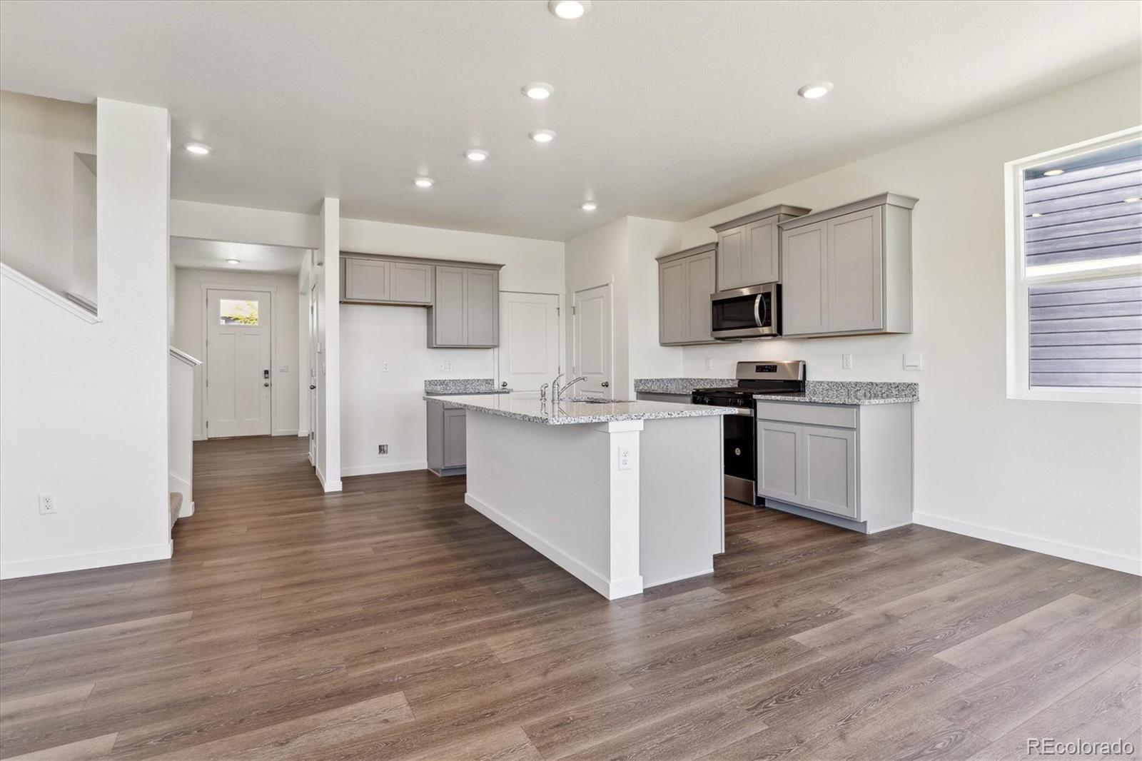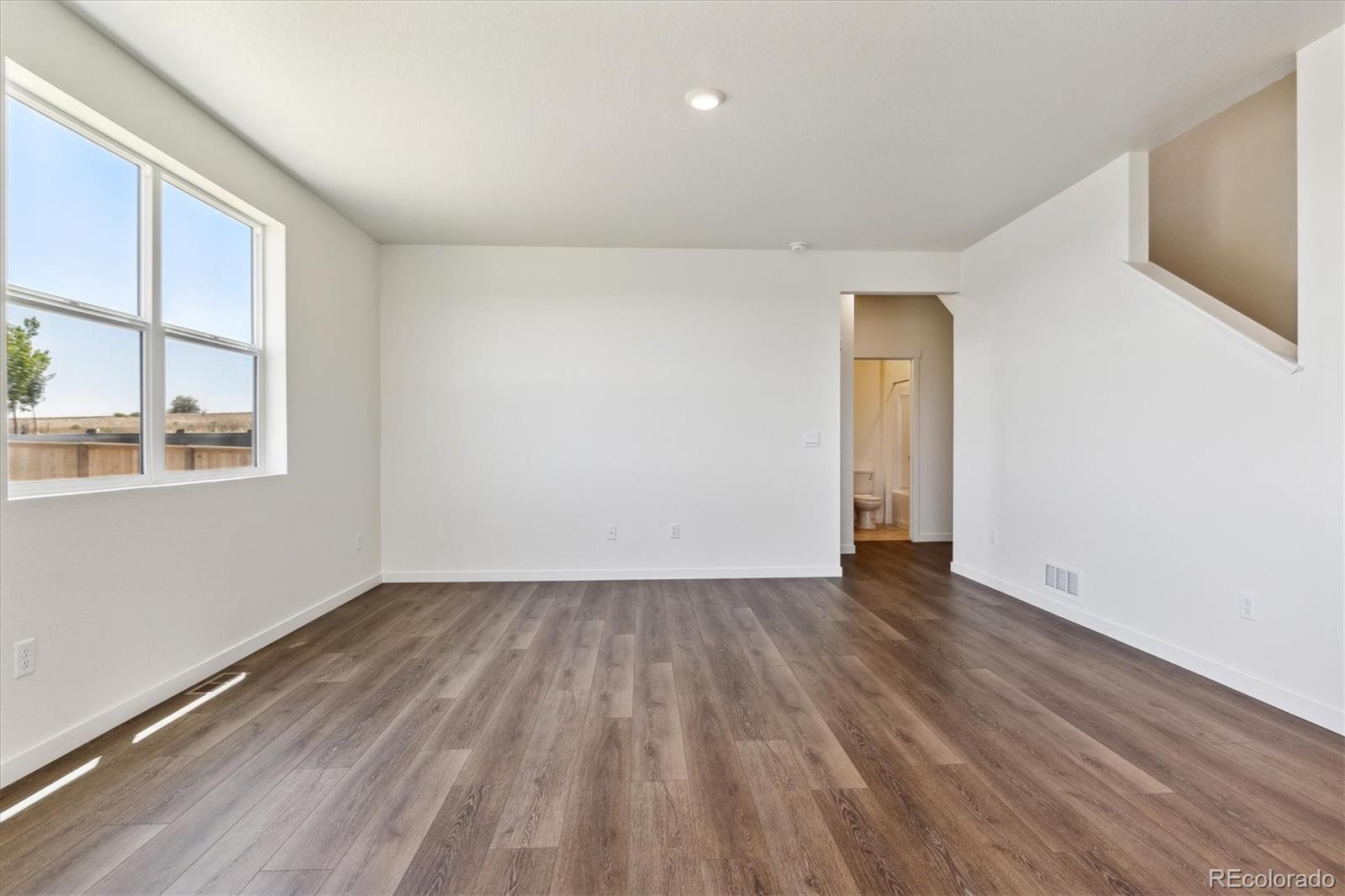 This spacious 5-bedroom, 3-bath home offers multi-generational flexibility with a main-floor bedroom and full bath plus a study/flex space. The modern kitchen features a large island, white cabinetry, a pantry, stainless steel appliances (gas range), and quartz countertops. Upstairs, enjoy a primary suite with a walk-in closet and ¾ bath, a loft-style living area, three additional bedrooms, and another full bath. The basement provides extra space for storage or future expansion, while breathtaking Mountain Views enhance the home’s appeal. Additional highlights include a 2-car garage, smart home technology, tankless water heater, 9’ ceilings, and durable cement fiberboard siding. Whether you enjoy hiking, biking, or skiing, the surrounding area offers endless opportunities to explore the great outdoors. Additionally, Vista Meadows is only 30 minutes from Denver International Airport (DIA), making travel a breeze. ***Estimated Delivery Date: October. Photos are representative and not of actual property***