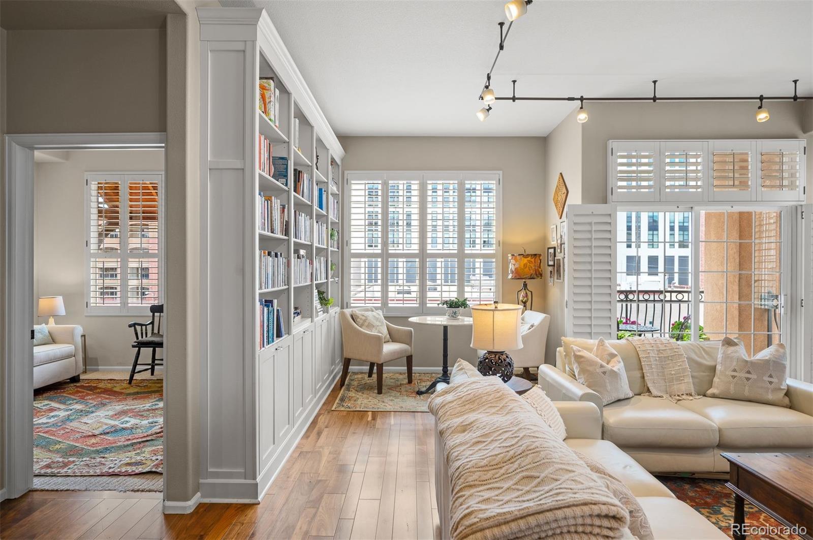 The perfect blend of style, comfort, and urban walkability! Located in the heart of Denver’s Golden Triangle neighborhood, this beautifully remodeled two-bedroom, two-bathroom corner unit condo with dedicated office space offers the ultimate in city living. The spacious open floor plan features rich hardwood floors, abundant natural light from the north & west, built-in cabinetry, art nooks, and a cozy fireplace. The gourmet kitchen is a chef’s dream, complete with a new Thermador built-in refrigerator, dishwasher, wine cooler, and island seating for casual dining. A separate dining area provides additional space for entertaining. The expansive primary suite includes a luxurious bath, custom walk-in closets, and access to one of two private balconies. Additional highlights include two parking spaces in a secure, attached garage, separate storage closet, custom lighting, plantation shutters, new washer & dryer, and a new HVAC system. Residents also enjoy access to the building’s rooftop deck—perfect for soaking in city views. All just steps from some of Denver’s best coffee shops, dining, retail, art walks, and entertainment venues. Experience modern luxury living in one of the city’s most vibrant neighborhoods—all at an exceptional value!
