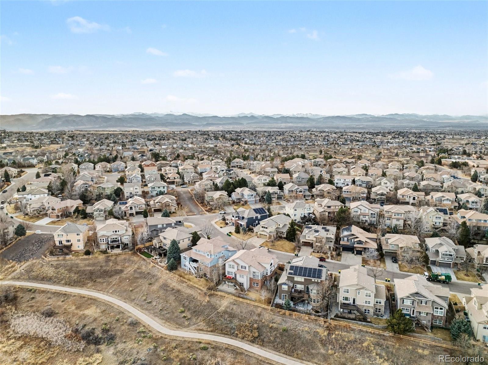 Perfectly positioned to capture sweeping views of the bluffs and backing to open space, this meticulously maintained 5-bed, 5-bath home offers refined living with over $140,000 in recent upgrades. A grand entry and soaring ceilings set the tone, while the light-filled, open floor plan creates an inviting yet elegant atmosphere throughout. The remodeled gourmet kitchen is a true showpiece, featuring slab granite countertops, a massive custom island, pantry, and stainless-steel appliances including a gas cooktop and professional hood. The spacious breakfast nook flows seamlessly into the large family room with a cozy gas fireplace—ideal for everyday living and entertaining. Wide plank flooring, walnut hardwood stairs, new custom paint, wrought iron railings, and a stunning two-story living room add warmth and architectural interest. The main level also includes a private study with French doors and a generous formal dining room perfect for gatherings. Upstairs, you’ll find four bedrooms, three full baths, and a versatile loft. The expansive primary suite showcases breathtaking bluff views and a luxurious remodeled bath complete with a custom rain shower, oval soaking tub, and walk-in closet. Secondary bedrooms are spacious, including a guest suite with private bath and a bedroom featuring its own upper patio and outdoor retreat. The finished walk-out lower level is designed for entertaining and multigenerational living, offering a large recreation room, media area, kitchenette, private guest bedroom, and ¾ bath. Outdoor living is just as impressive with a large deck, welcoming front porch, and beautifully sized yard backing to open space. Additional highlights include a concrete tile roof, Nest thermostat, and an oversized 3-car garage. Ideally located minutes from Park Meadows, DTC, premier shopping, and dining. Walking distance to parks, sports fields, recreation center, and miles of scenic trails—this home delivers luxury, comfort, and an unbeatable lifestyle.