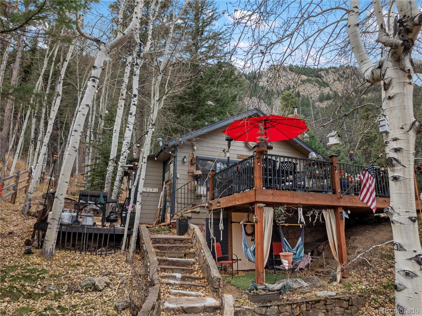 Discover this lovingly maintained 1920s cabin, perfectly set on two private, double-wide lots surrounded by trees and mountain air. Featuring 2 bedrooms and 1 bath, this home has charming historic character. The welcoming living room showcases its original charm, while the functional kitchen and intimate spaces invite cozy evenings by the fire. Outside, the expansive double lots create a private, park-like setting ideal for gardening, and entertaining. Just minutes from hiking trails connecting to the Pikes Peak trail system and nearby waterfalls, this cabin offers serene privacy without sacrificing convenience, located only three-quarters of a block from Green Mountain Falls Lake. Whether you’re seeking a primary residence, vacation getaway, or rental opportunity, this property offers historic character and modern possibilities in one unforgettable mountain retreat. Schedule your showing today and thank you for visiting!