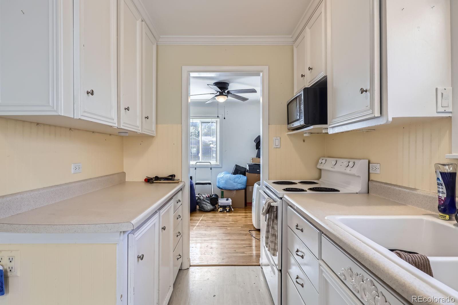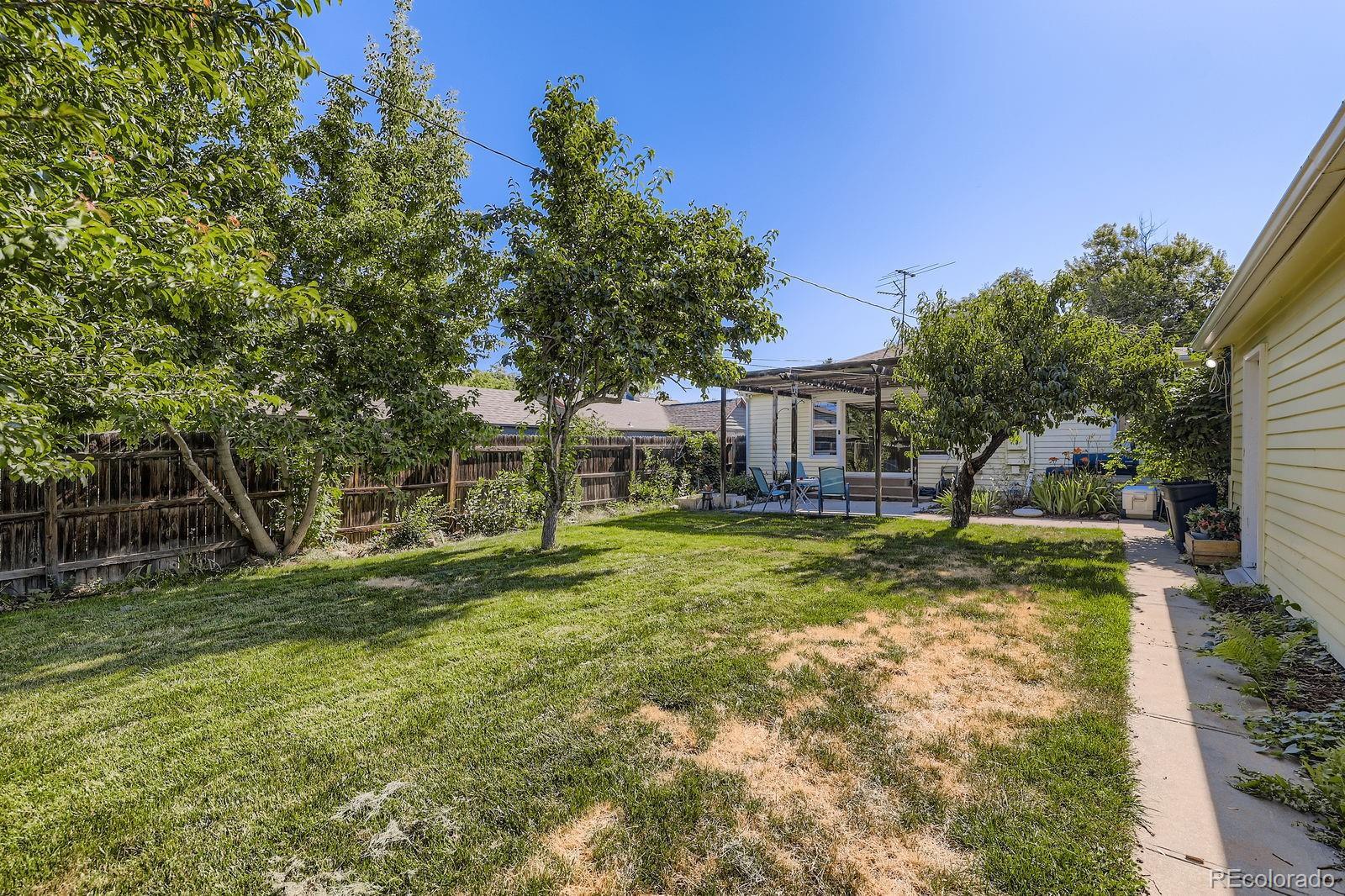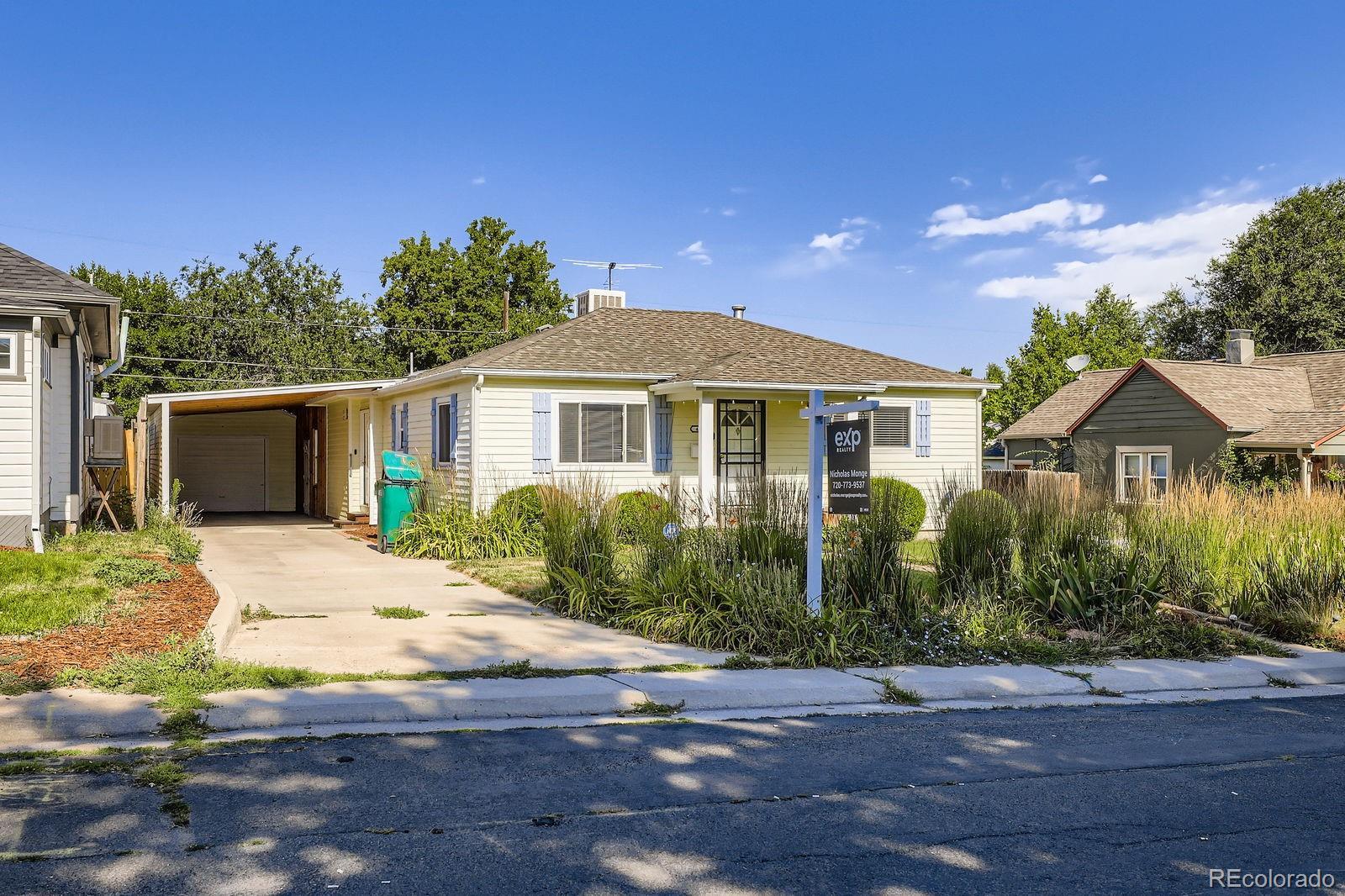 Welcome to this delightful mid-century cottage, perfectly situated in the highly sought-after city of Englewood. Full of character and curb appeal, the home is framed by lush landscaping and vibrant summer blooms that invite you in from the moment you arrive. Inside, you’ll find 3 bedrooms and 2 updated bathrooms, including a spacious primary suite. A bright and welcoming living room greets you with gleaming hardwood floors and classic charm. The stylish galley kitchen features crisp white cabinetry and tile flooring—an ideal space for home cooks and entertainers alike. The flexible layout includes a non-conforming third bedroom, perfect for a home office, guest room, or creative space. An expansive family room at the back of the home flows seamlessly through sliding glass doors to a large covered patio, ideal for relaxing or hosting summer gatherings. The private backyard is a true retreat, surrounded by mature landscaping that provides beauty and tranquility year-round. Additional highlights include an oversized one-car garage with backyard access and a massive two-car covered carport, offering generous off-street parking for up to four vehicles. Centrally located, this home is just minutes from shopping, dining, scenic trails, and the light rail—putting all the best of Englewood right at your fingertips. Don’t miss your chance to own this charming home and enjoy timeless style in a prime location!
