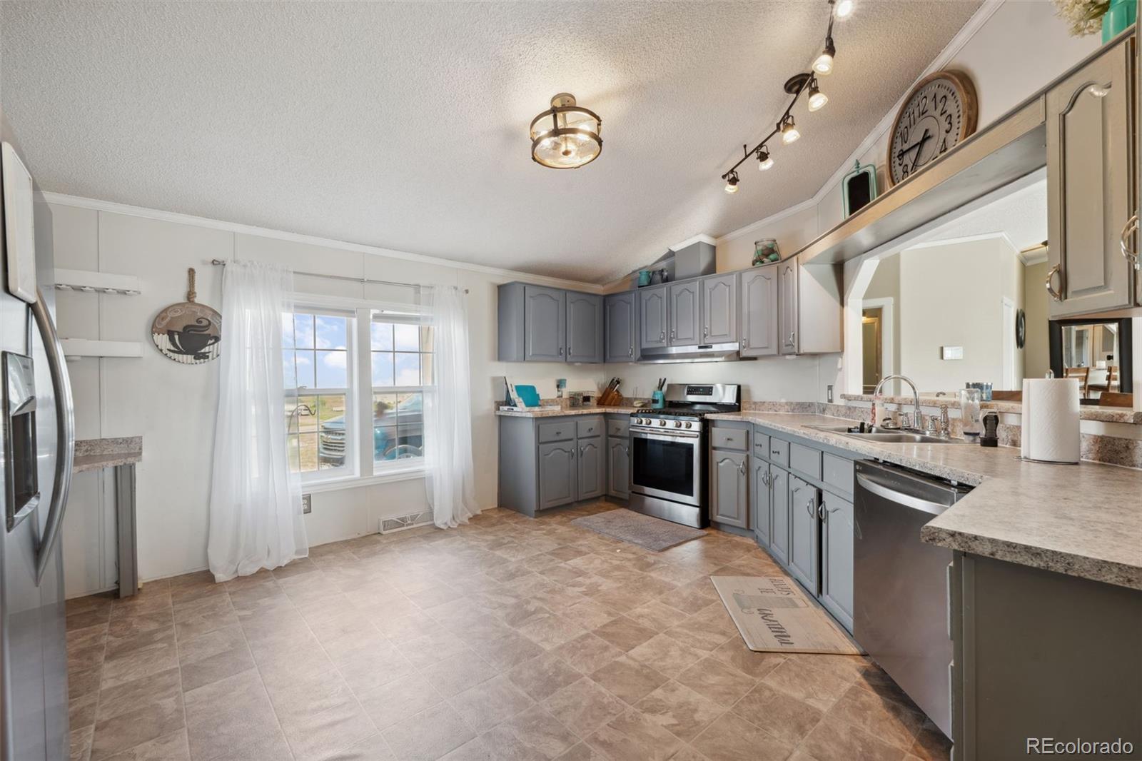 Country living at its best in this refreshed modern modular home, nestled on nearly 3 gorgeous acres with incredible views of Pike's Peak. Enjoy one-level living with a spacious and welcoming kitchen that features sleek countertops, attractive cabinetry, stainless steel appliances, and plenty of counter space—perfect for cooking and gathering. The home is filled with natural light along with tasteful updates in every room. The eat-in kitchen and separate dining room offer flexible spaces for casual meals or entertaining. The large, inviting family room is ideal for relaxing or hosting. Each bedroom has its own private bathroom, and there’s a convenient powder room for guests too. Step outside to find a detached 3-car garage, complete with kennels and extra storage space attached to the rear—perfect for pet lovers or outdoor enthusiasts. With wide-open views, peaceful surroundings, and modern comforts, this one is truly a gem.