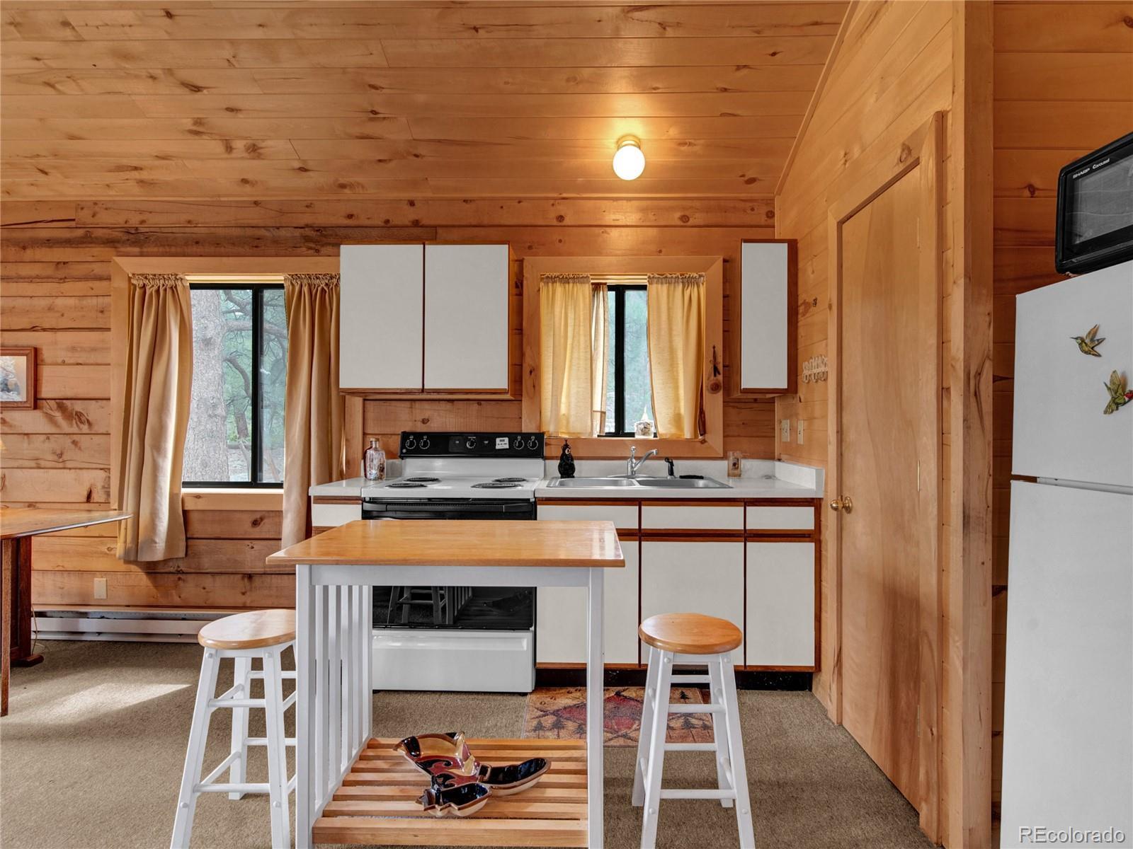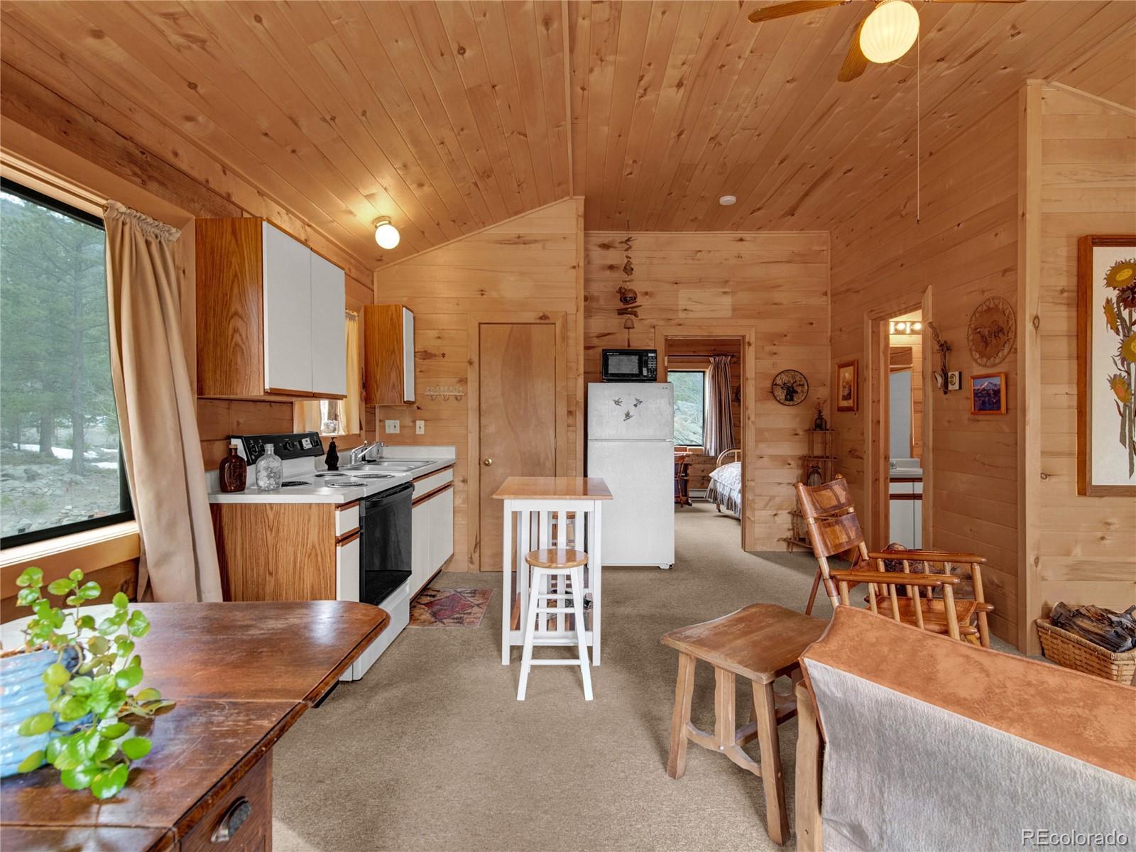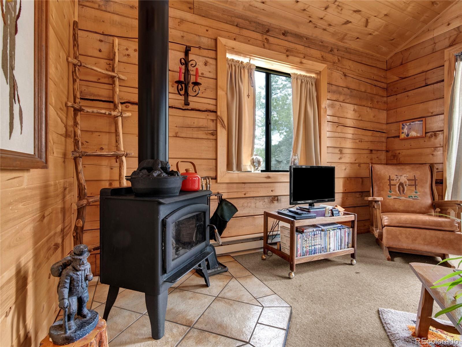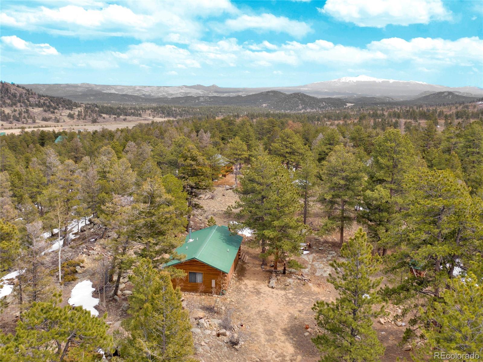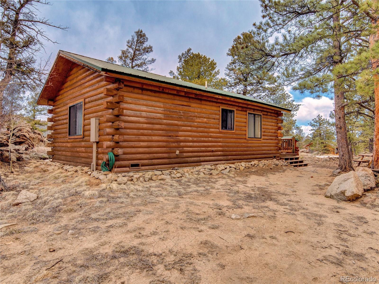 Welcome to your next beautiful mountain retreat, located in the serene surroundings of Lake George, Colorado. This unique log cabin boasts 1 bedroom, 1 full bathroom, and is situated on 5 acres of picturesque land. Privacy is paramount here, offering a peaceful escape unlike any other! Upon arrival, you'll be captivated by the spacious lot adorned with unique rock formations, and your very own private deck, perfect for summer barbecues. Step inside to be greeted by vaulted ceilings and stunning woodwork throughout the entire home, creating a warm and inviting atmosphere. Whether you're seeking a permanent/vacation home or an investment opportunity through short-term rentals, this property has it all and more! The layout flows effortlessly, and a wood-burning stove ensures cozy Colorado winter nights. With its own household well, this property is truly move-in ready! Located just minutes from Highway 24, this property offers prime access to all the area has to offer. Approximately 10 minutes from Eleven Mile Reservoir and Spinney Reservoir. Don't miss your chance to own your very own mountain paradise. Schedule your showing today and step into a world of natural beauty and tranquility!