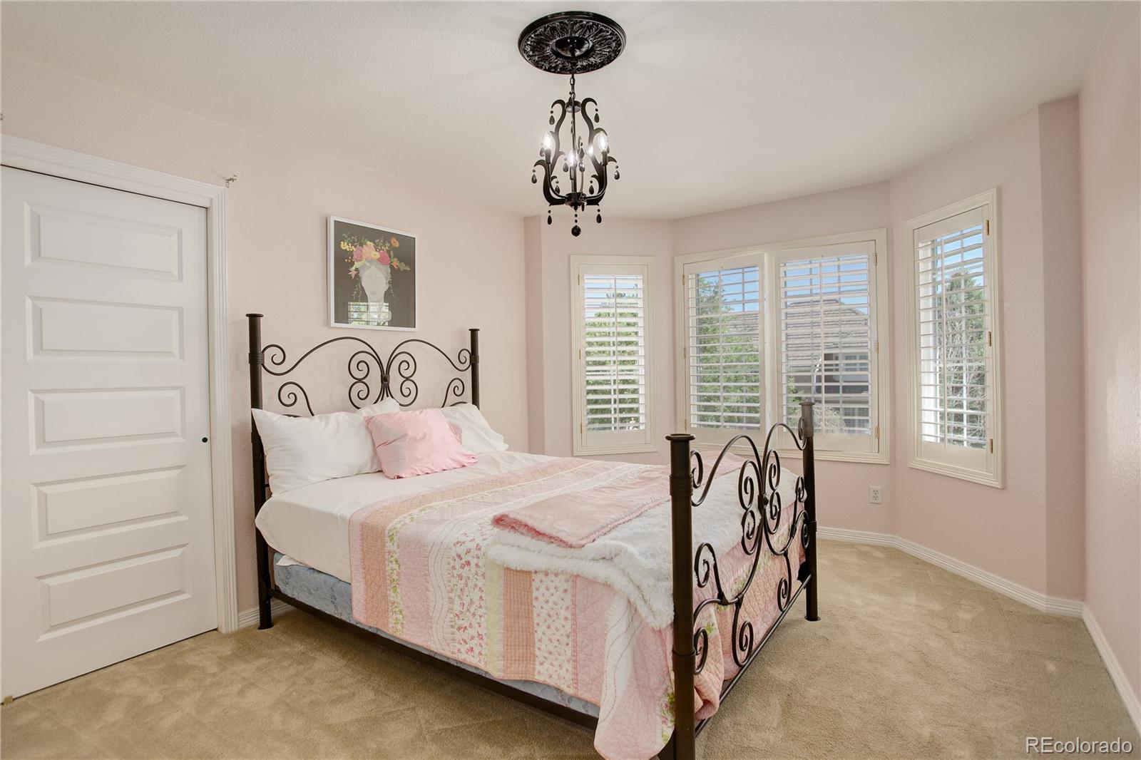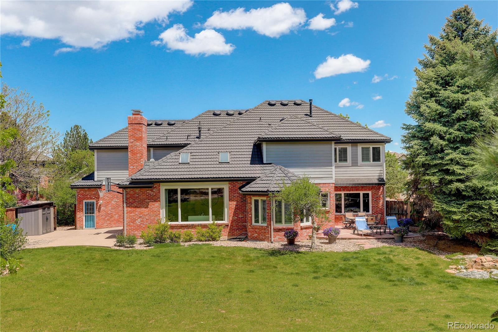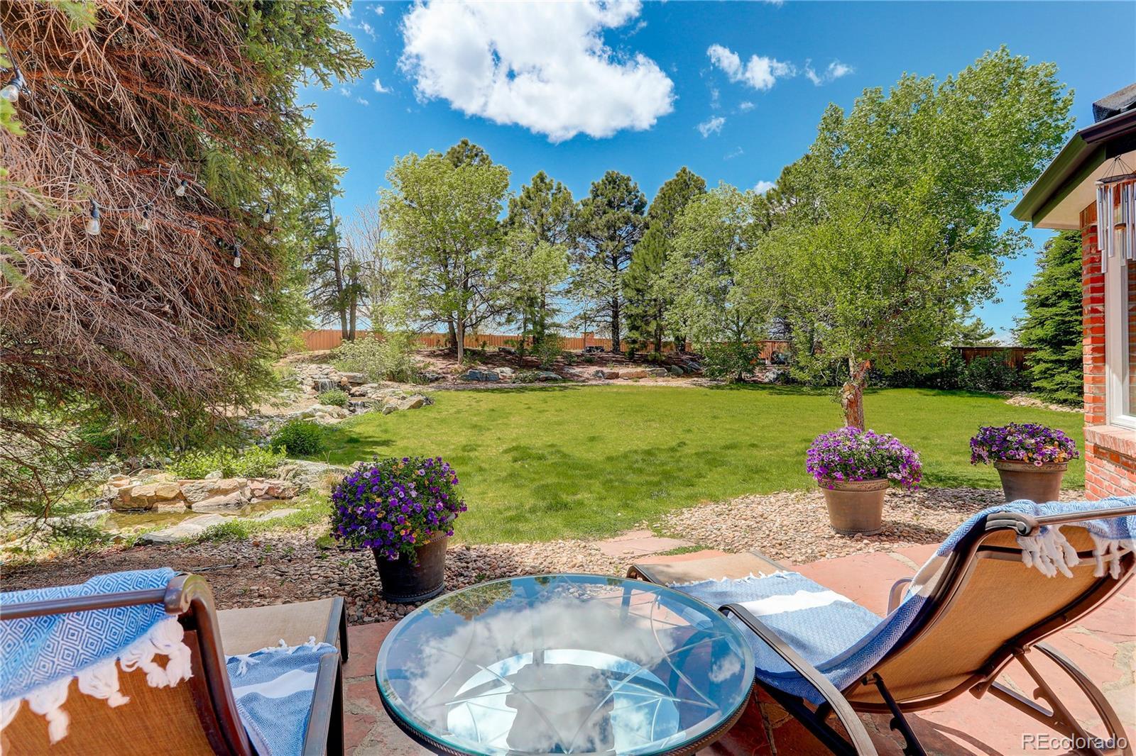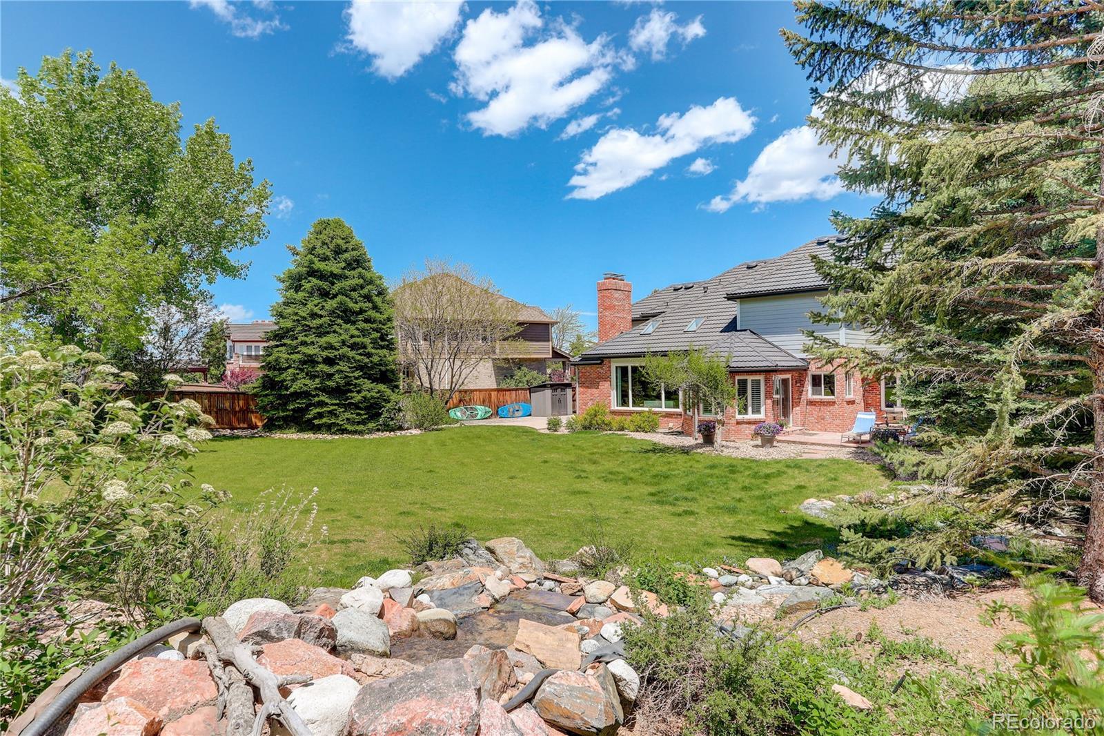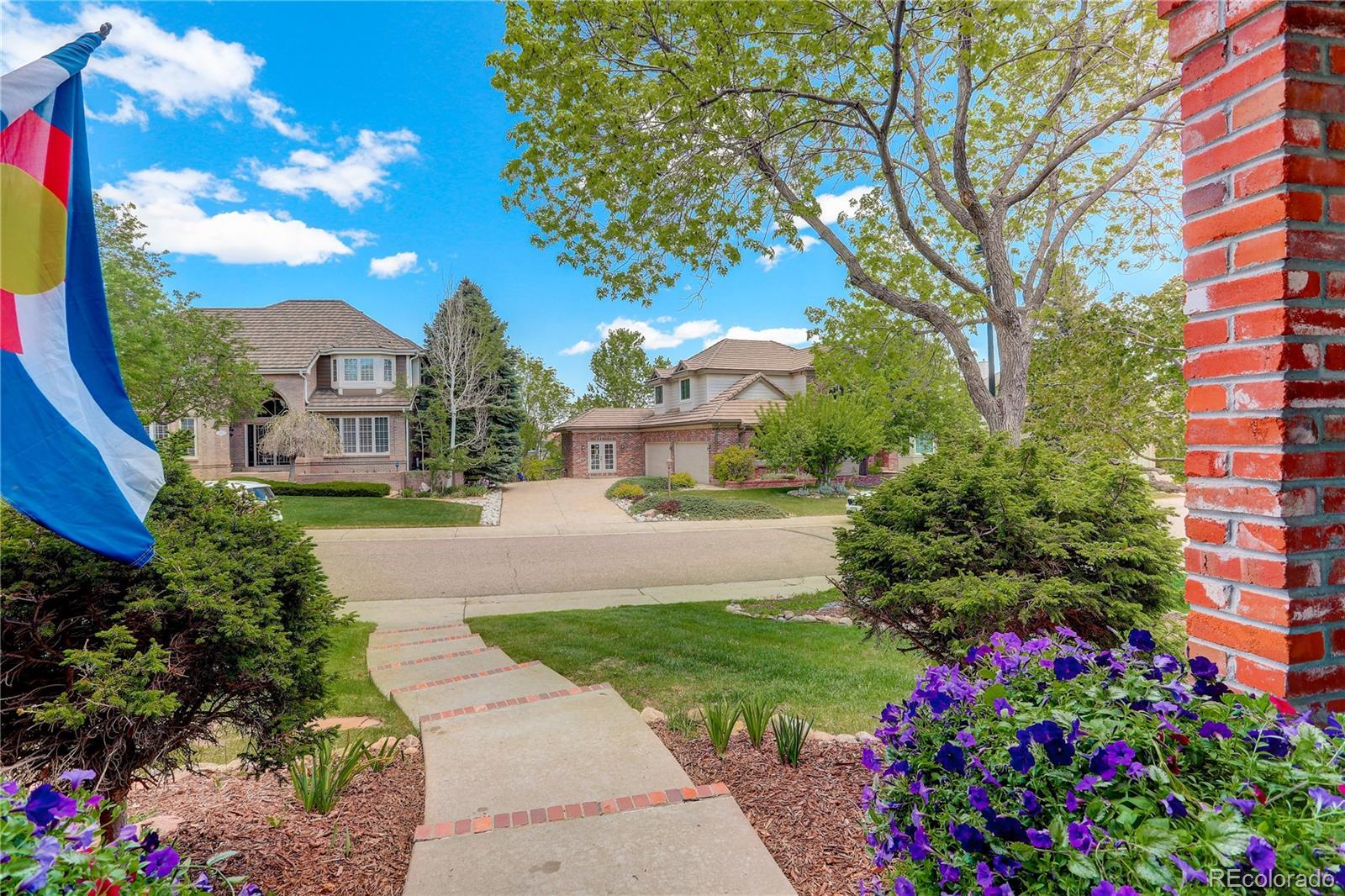 Discover this stunning Highlands Ranch home nestled in prestigious Hillcrest neighborhood. Amazing Cul de sac location where kids RIDE BIKES & WALK to award winning Douglas Cnty Schools K-12 & Valor Christian HS! 1.3 miles to C470 and 15 mins to DTC. Residents enjoy all Highlands Ranch rec centers, pools & hiking trails. From the moment you enter into the spectacular two story foyer the sprawling staircase is inviting and welcoming. NEW HVAC; 2 HEATERS & 2 AIR CONDITIONERS! Be greeted by warmth from gleaming oak hardwood floors throughout the main level. The kitchen is complete with Dacor gas stove, a double oven and counter/cupboard space galore. UPDATES THROUGHOUT! Two breakfast bars and the sunny, custom turret eating area leading to the patio, add to making the entire home flow flawlessly. The kitchen opens into the spectacular great room which embodies tall ceilings, picture windows, a wet bar, and wood burning fireplace. Two private offices on the main floor make this a perfect home! One off the kitchen with a wall of windows, the other having custom shelves, a bay window and beveled glass french doors.The dining room accommodates a huge table fit for royalty! As you ascend the staircase you find a loft with built-in shelves, leading to a luxurious primary suite and three generous additional bedrooms. The primary suite is a true retreat, boasting a bay window, five-piece bath, large jetted tub and a sizable walk-in closet. Two of the secondary bedrooms share a bath, while the third has its own en suite bath. Enjoy Mountain Views from the second floor. The professionally finished basement offers a spacious tv room equipped with a fireplace, a huge exercise studio, fifth bedroom, a full bathroom, and ample storage. Set on a sprawling ½ acre the backyard features a serene waterfall, pond, two patios, a basketball court and a fire pit area for outdoor gatherings. This Home is a True Gem, Make it Yours Today
