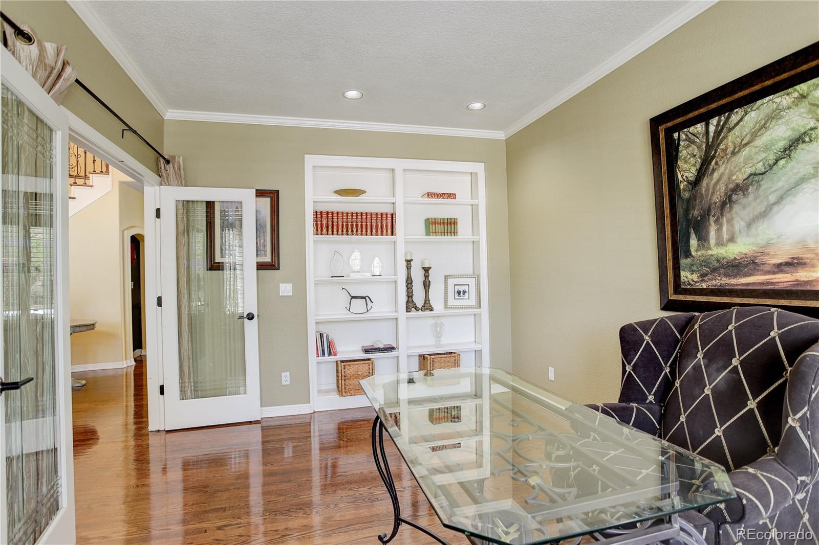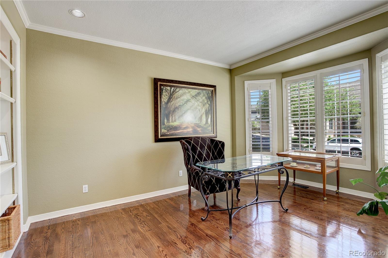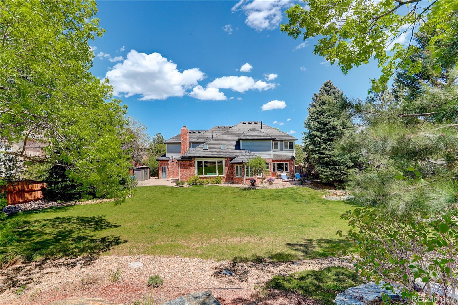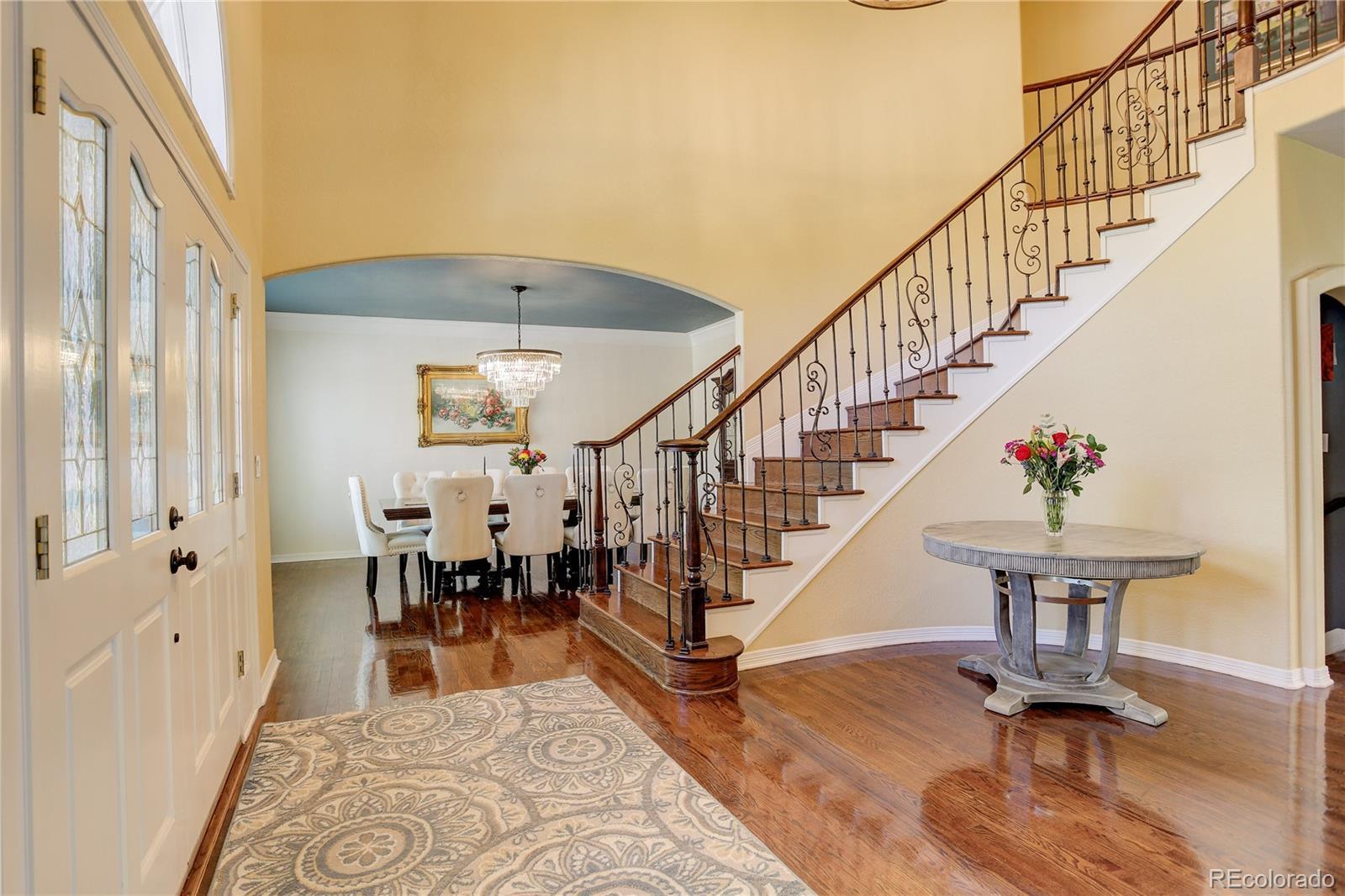 Discover this stunning Highlands Ranch home nestled in prestigious Hillcrest neighborhood. Amazing Cul de sac location where kids RIDE BIKES & WALK to award winning Douglas Cnty Schools K-12 & Valor Christian HS! 1.3 miles to C470 and 15 mins to DTC. Residents enjoy all Highlands Ranch rec centers, pools & hiking trails. From the moment you enter into the spectacular two story foyer the sprawling staircase is inviting and welcoming. NEW HVAC; 2 HEATERS & 2 AIR CONDITIONERS! Be greeted by warmth from gleaming oak hardwood floors throughout the main level. The kitchen is complete with Dacor gas stove, a double oven and counter/cupboard space galore. UPDATES THROUGHOUT! Two breakfast bars and the sunny, custom turret eating area leading to the patio, add to making the entire home flow flawlessly. The kitchen opens into the spectacular great room which embodies tall ceilings, picture windows, a wet bar, and wood burning fireplace. Two private offices on the main floor make this a perfect home! One off the kitchen with a wall of windows, the other having custom shelves, a bay window and beveled glass french doors.The dining room accommodates a huge table fit for royalty! As you ascend the staircase you find a loft with built-in shelves, leading to a luxurious primary suite and three generous additional bedrooms. The primary suite is a true retreat, boasting a bay window, five-piece bath, large jetted tub and a sizable walk-in closet. Two of the secondary bedrooms share a bath, while the third has its own en suite bath. Enjoy Mountain Views from the second floor. The professionally finished basement offers a spacious tv room equipped with a fireplace, a huge exercise studio, fifth bedroom, a full bathroom, and ample storage. Set on a sprawling ½ acre the backyard features a serene waterfall, pond, two patios, a basketball court and a fire pit area for outdoor gatherings. This Home is a True Gem, Make it Yours Today