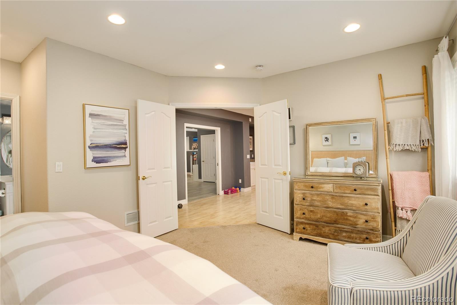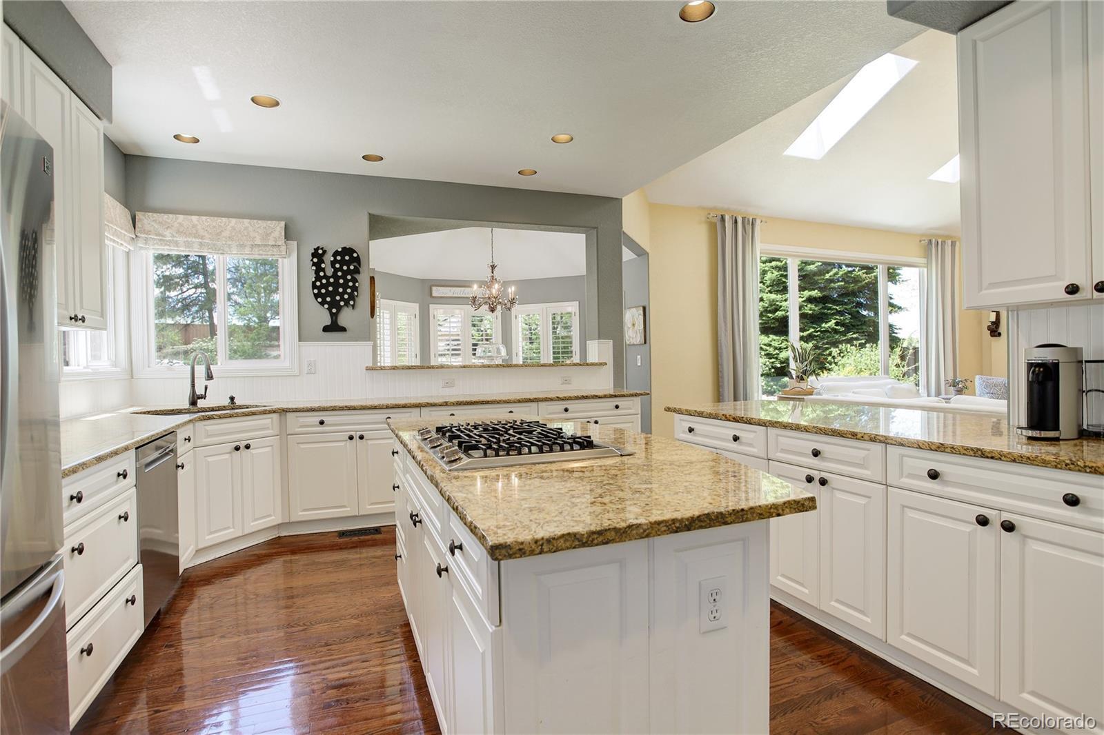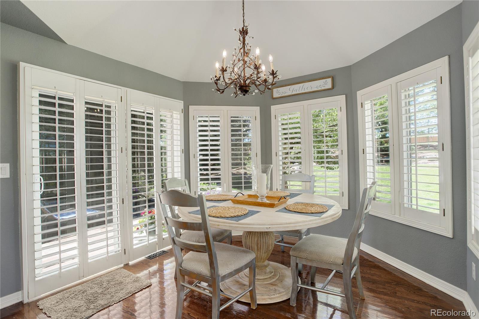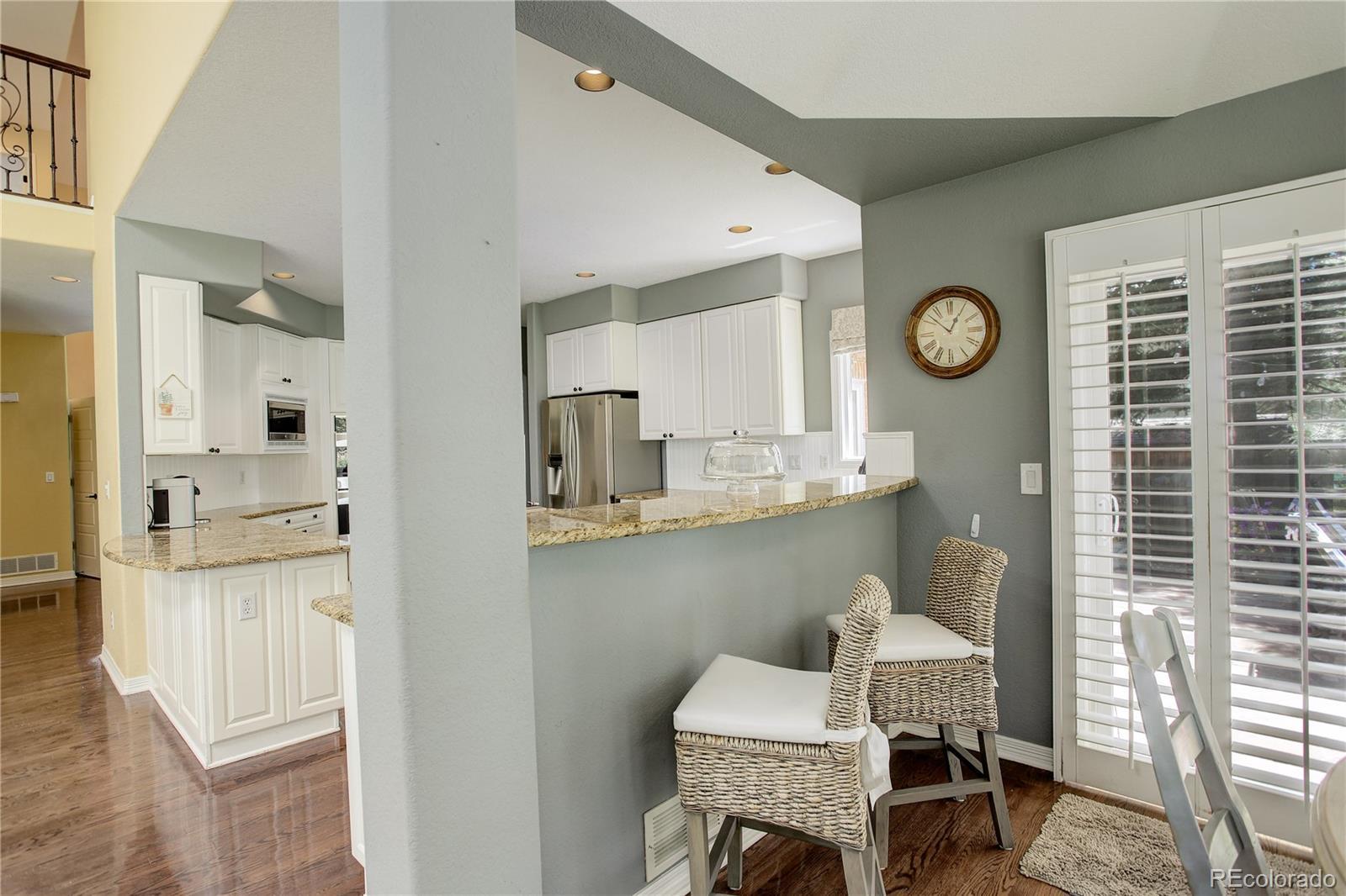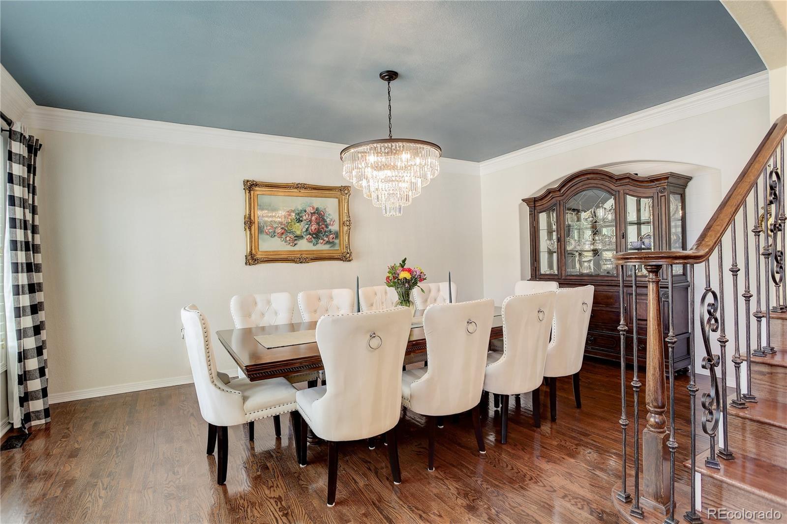 Discover this stunning Highlands Ranch home nestled in prestigious Hillcrest neighborhood. Amazing Cul de sac location where kids RIDE BIKES & WALK to award winning Douglas Cnty Schools K-12 & Valor Christian HS! 1.3 miles to C470 and 15 mins to DTC. Residents enjoy all Highlands Ranch rec centers, pools & hiking trails. From the moment you enter into the spectacular two story foyer the sprawling staircase is inviting and welcoming. NEW HVAC; 2 HEATERS & 2 AIR CONDITIONERS! Be greeted by warmth from gleaming oak hardwood floors throughout the main level. The kitchen is complete with Dacor gas stove, a double oven and counter/cupboard space galore. UPDATES THROUGHOUT! Two breakfast bars and the sunny, custom turret eating area leading to the patio, add to making the entire home flow flawlessly. The kitchen opens into the spectacular great room which embodies tall ceilings, picture windows, a wet bar, and wood burning fireplace. Two private offices on the main floor make this a perfect home! One off the kitchen with a wall of windows, the other having custom shelves, a bay window and beveled glass french doors.The dining room accommodates a huge table fit for royalty! As you ascend the staircase you find a loft with built-in shelves, leading to a luxurious primary suite and three generous additional bedrooms. The primary suite is a true retreat, boasting a bay window, five-piece bath, large jetted tub and a sizable walk-in closet. Two of the secondary bedrooms share a bath, while the third has its own en suite bath. Enjoy Mountain Views from the second floor. The professionally finished basement offers a spacious tv room equipped with a fireplace, a huge exercise studio, fifth bedroom, a full bathroom, and ample storage. Set on a sprawling ½ acre the backyard features a serene waterfall, pond, two patios, a basketball court and a fire pit area for outdoor gatherings. This Home is a True Gem, Make it Yours Today