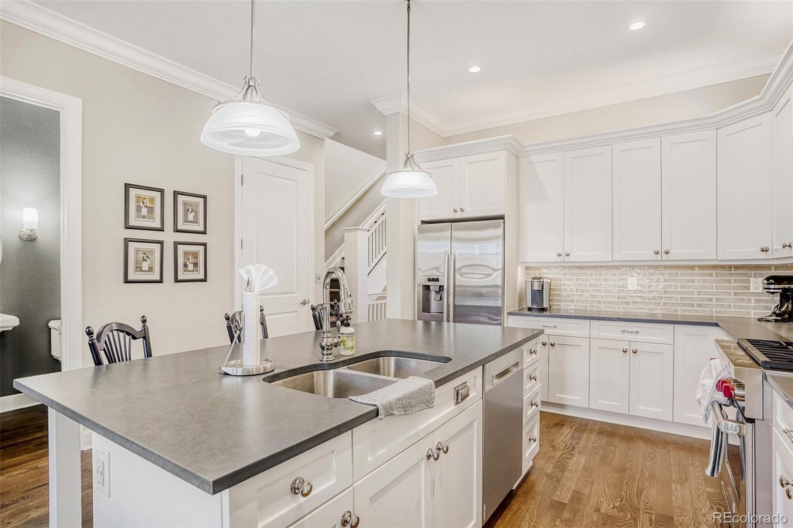 Welcome to 1913 W Lilley Ave — a rare Downtown Littleton townhome that’s been fully remodeled head to toe and finished with the kind of details you usually only see in custom builds. Set in the Littleton Station community, you’re steps to Old Town Littleton with some of the best restaurants in Colorado, plus coffee shops, boutiques, and the light rail, with easy access to parks and the paths that make this area so loved. Inside, the vibe is clean, elevated, and intentional with gorgeous hardwood flooring that are bathed in natural light from large windows throughout. The open-concept main level is designed for real life and real entertaining, anchored by a showpiece kitchen featuring 42" shaker-style cabinets, designer backsplash and newer full stainless steel appliance package (including gas stove). The main floor is a warm living space with custom woodwork shelvings/fireplace surround that steals the show. Contemporary finishes, refreshed surfaces, and thoughtful upgrades throughout create that “brand-new home” feeling—without giving up the charm of being right in the heart of town. Downstairs is a garden level finished floor that feels as bright and airy as the upstairs, the perfect spot for an office or guest suite with its own bathroom. A recently installed elevator creates full ADA accessibility, giving true, functional access across levels. This home also delivers on the practical side with generous square footage (approx. 2,748 finished sq ft), multiple living spaces, and a layout that lives big. For peace of mind, all of the mechanical systems have been well maintained including a new tankless new water heater, furnace, AC, humidifier and smart home tech...plus the 3-car garage gives ample storage for vehicles and all of our Colorado toys. If you’ve been waiting for a Downtown Littleton home that’s turnkey, design-forward, and genuinely accessible—this is it...compare it to anything else in the price range and you will not be disappointed!