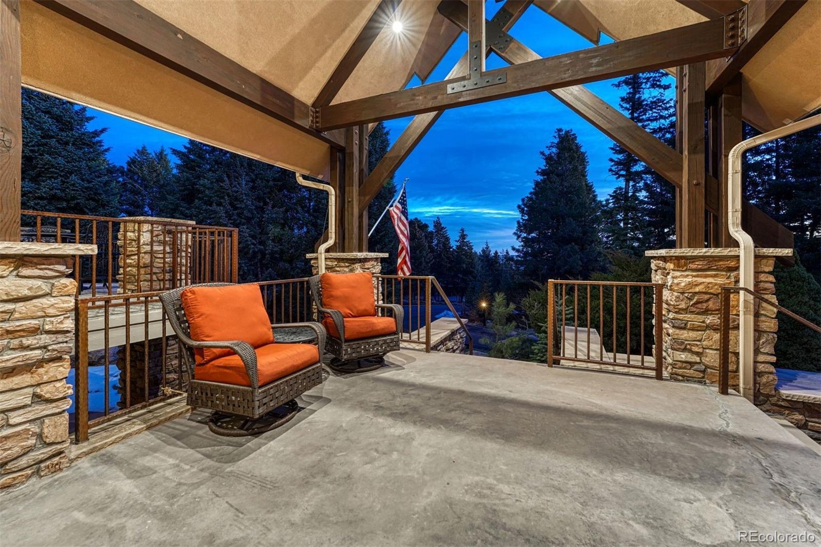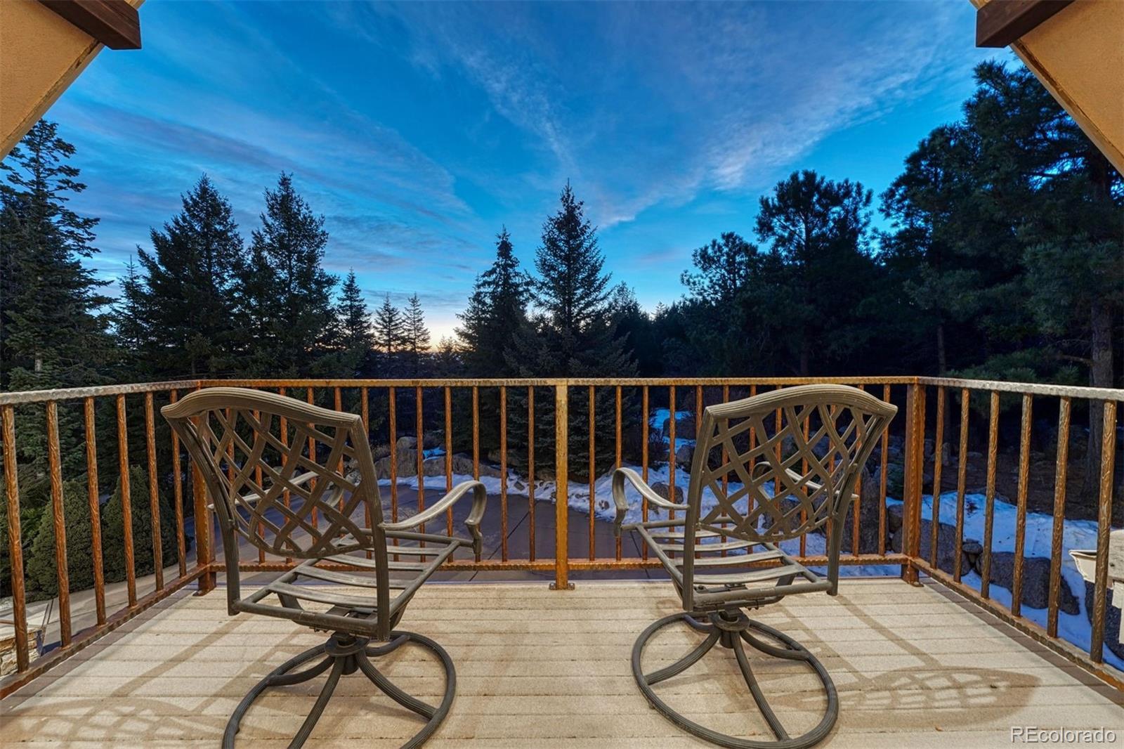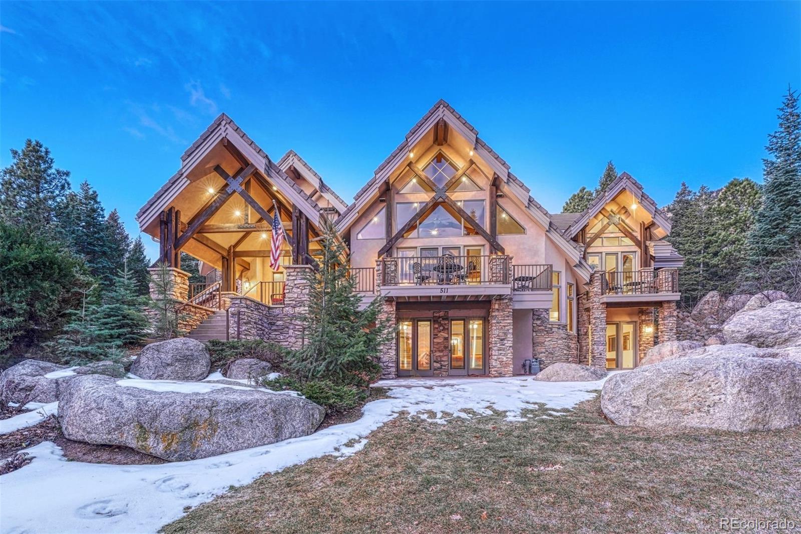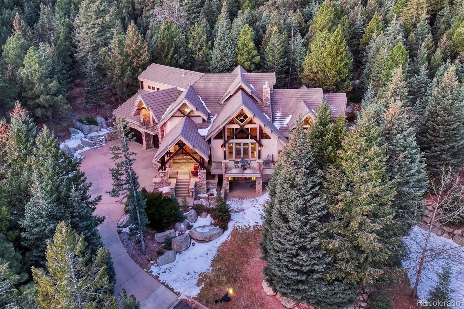 Set on a private 1.26 acre homesite in the prestigious Broadmoor Resort Community, this 5 bedroom architectural masterpiece by award winning architect David A. Langley reflects the timeless character of Colorado’s iconic alpine retreats. Surrounded by pines, boulders, and wildlife, the property provides tranquility while remaining close to the Broadmoor Hotel, nearby country clubs, shopping, and dining. Located within Cheyenne Mountain School District 12 with 24 hour manned security, the community offers privacy and peace of mind. Arched and beamed ceilings, rich wood finishes, and a dramatic floor to ceiling stone fireplace define the two story great room. Expansive windows capture mountain, treetop, and city views, transitioning from sunlit horizons to the glow of sparkling city lights after sunset. The gourmet kitchen features distressed cabinetry, slab granite counters, limestone floors, Viking appliances, dual ovens, a warming drawer, and a butler’s pantry designed for entertaining. The primary suite showcases beamed ceilings, a private balcony, a generous walk in closet, and a spa inspired bath with soaking tub and dual vanities. Upstairs, two additional bedrooms each offer ensuite baths while a loft provides an open, light filled space ideal for a home office or study with views. The walkout lower level is designed for relaxed entertaining, complete with built in bookshelves, a movie viewing space, wet bar, exercise area, wine storage, sauna, and two ensuite bedrooms ideal for guests or extended family. Multiple decks and patios invite year round outdoor living with sweeping views and exceptional privacy. Peaceful yet perfectly connected, the home offers comfort and effortless living for full time residency or seasonal enjoyment. Designed for gathering yet comfortable for quiet living, this contemporary mountain sanctuary is ideal for hosting family and friends while embracing the relaxed elegance of the Broadmoor lifestyle.