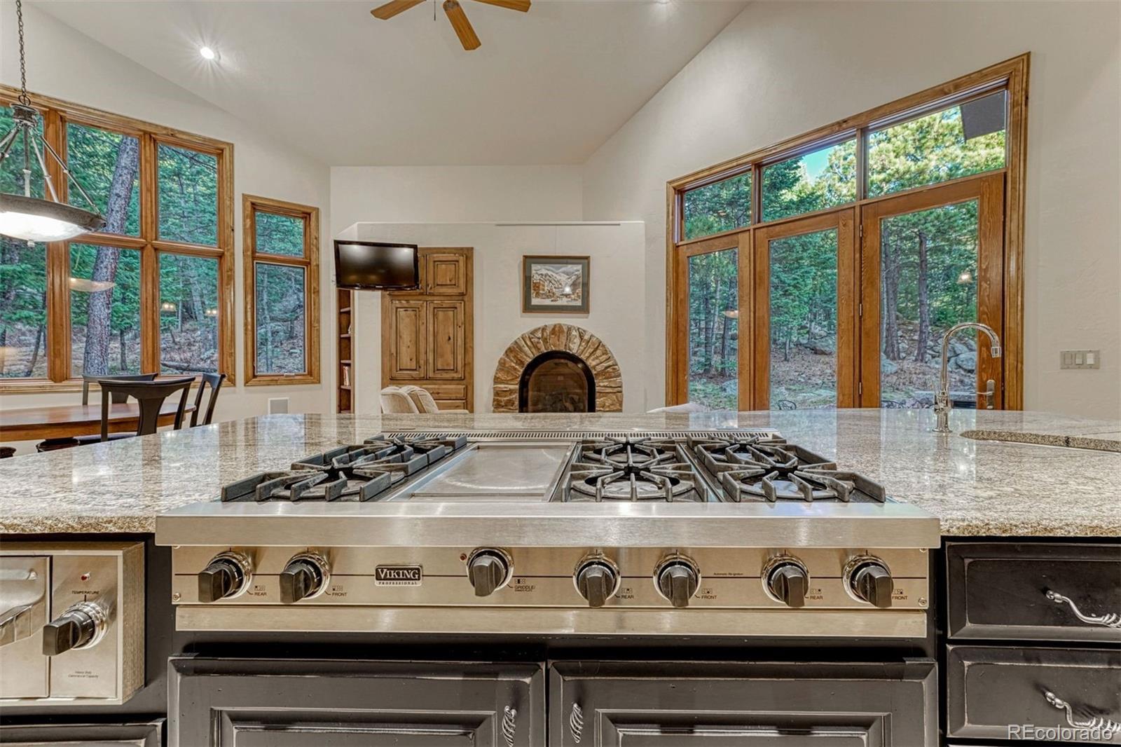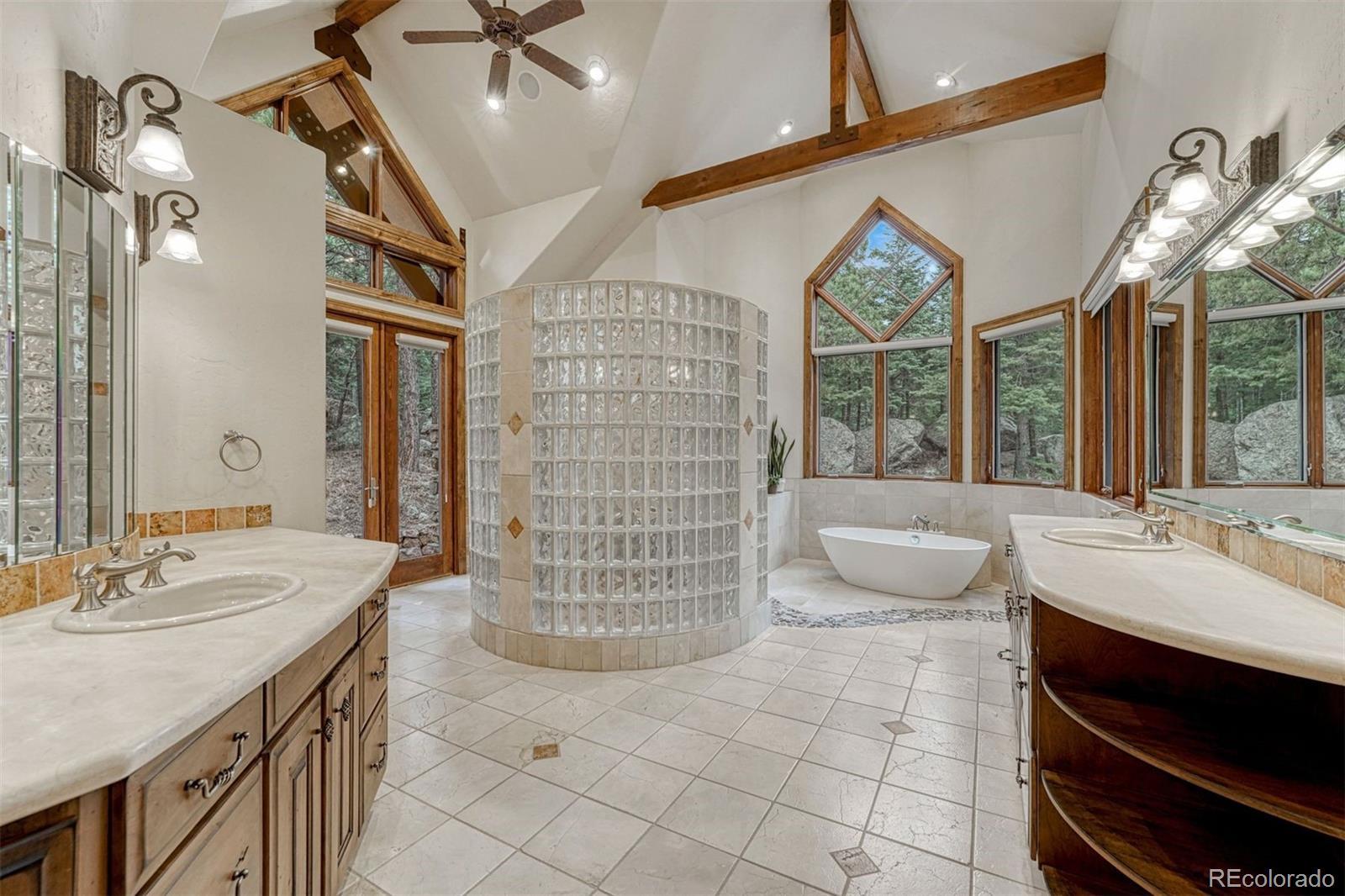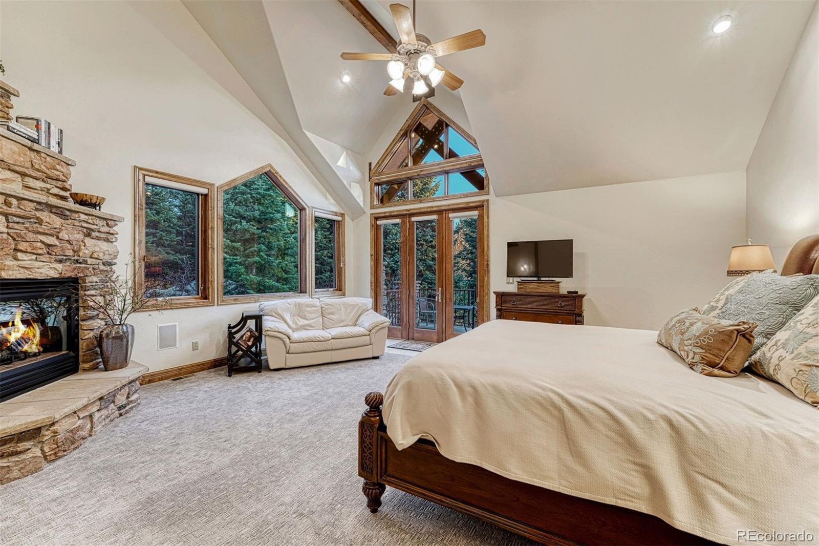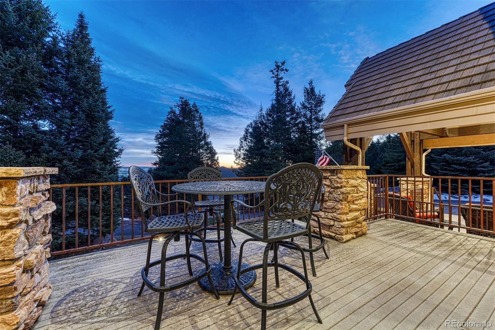 Set on a private 1.26 acre homesite in the prestigious Broadmoor Resort Community, this 5 bedroom architectural masterpiece by award winning architect David A. Langley reflects the timeless character of Colorado’s iconic alpine retreats. Surrounded by pines, boulders, and wildlife, the property provides tranquility while remaining close to the Broadmoor Hotel, nearby country clubs, shopping, and dining. Located within Cheyenne Mountain School District 12 with 24 hour manned security, the community offers privacy and peace of mind. Arched and beamed ceilings, rich wood finishes, and a dramatic floor to ceiling stone fireplace define the two story great room. Expansive windows capture mountain, treetop, and city views, transitioning from sunlit horizons to the glow of sparkling city lights after sunset. The gourmet kitchen features distressed cabinetry, slab granite counters, limestone floors, Viking appliances, dual ovens, a warming drawer, and a butler’s pantry designed for entertaining. The primary suite showcases beamed ceilings, a private balcony, a generous walk in closet, and a spa inspired bath with soaking tub and dual vanities. Upstairs, two additional bedrooms each offer ensuite baths while a loft provides an open, light filled space ideal for a home office or study with views. The walkout lower level is designed for relaxed entertaining, complete with built in bookshelves, a movie viewing space, wet bar, exercise area, wine storage, sauna, and two ensuite bedrooms ideal for guests or extended family. Multiple decks and patios invite year round outdoor living with sweeping views and exceptional privacy. Peaceful yet perfectly connected, the home offers comfort and effortless living for full time residency or seasonal enjoyment. Designed for gathering yet comfortable for quiet living, this contemporary mountain sanctuary is ideal for hosting family and friends while embracing the relaxed elegance of the Broadmoor lifestyle.