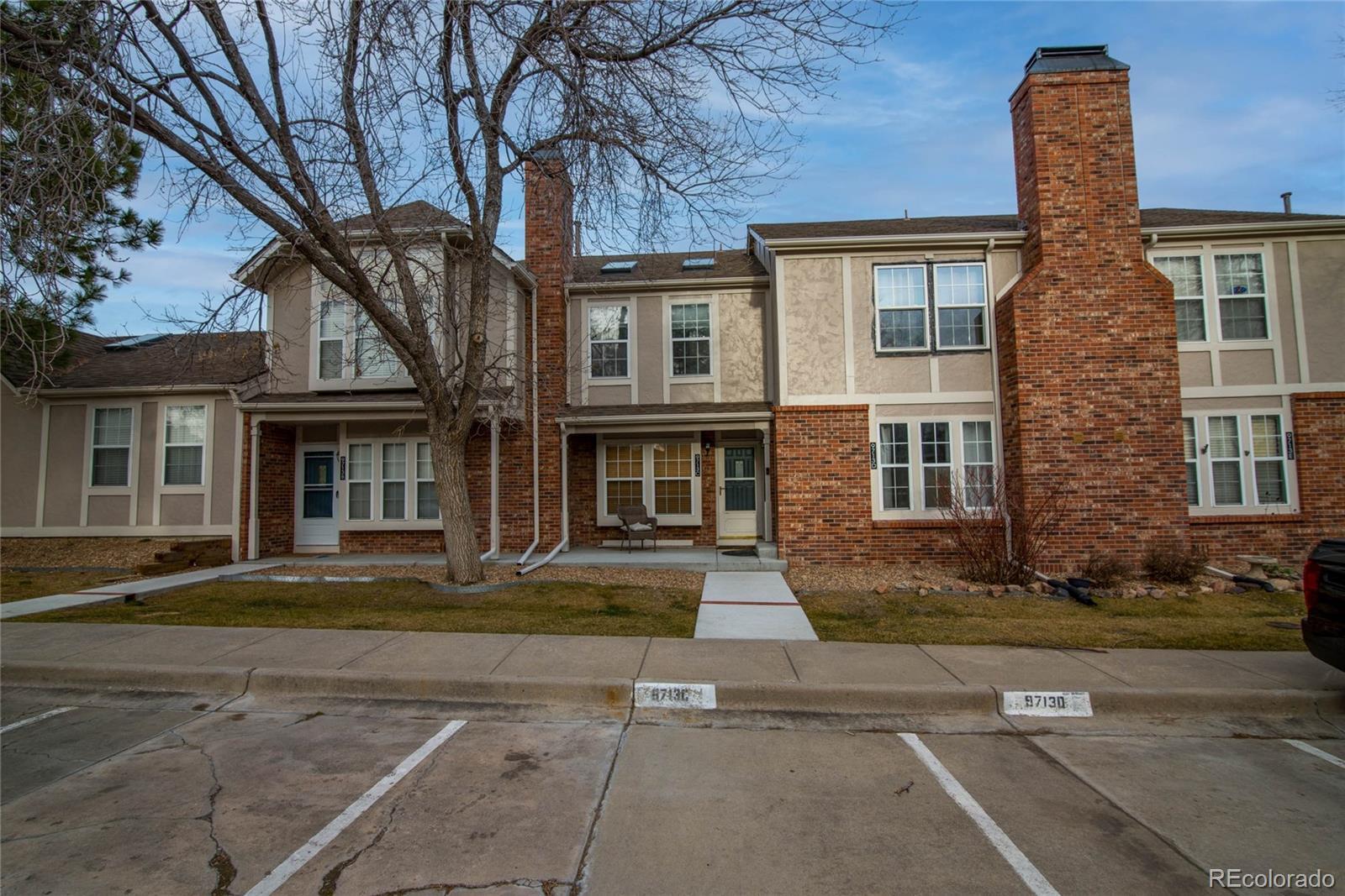 This charming 2 bedroom, townhome style condo offers 1,000 square feet of comfortable, well designed living space with a layout that flows effortlessly from room to room. From the moment you arrive, the inviting design and bright interiors make you feel right at home. The spacious great room is filled with natural light from a large window and features a cozy wood burning fireplace, creating the perfect space to relax or entertain. The floorplan transitions seamlessly into the kitchen, complete with a breakfast bar, butcher block style laminate countertops, pantry, and a conveniently tucked away stacked washer and dryer. Just off the dining area, step outside to your own fenced patio and small yard or garden area. This private outdoor space is ideal for morning coffee, afternoon barbecues, or simply enjoying fresh air. Upstairs, you’ll find two generously sized bedrooms. The primary bedroom features soaring vaulted ceilings that enhance the open, airy feel, abundant natural light, and a private en-suite bath. The secondary bedroom mirrors the vaulted ceilings and includes skylights, with a full bathroom located just steps away. Additional highlights include a newer central A/C system and junction box, ample storage throughout with multiple closets and crawl space access, and an assigned parking space directly in front of the unit. Plenty of additional parking ensures convenience for guests. The community amenities are a wonderful bonus, featuring a pool for warm, sunny days, and just steps away, you will find public tennis courts, a playground, nearby park, and multiple trail options. The location offers easy access to 470, local Reservoir, dining, shopping, and everyday conveniences, making this home an excellent blend of comfort, functionality, and lifestyle. Create a space that’s truly your own with updates designed around your taste and style.