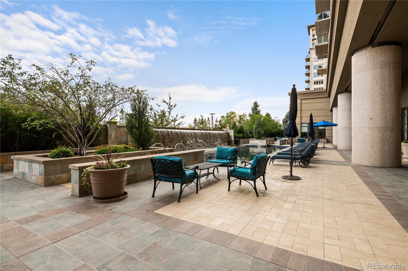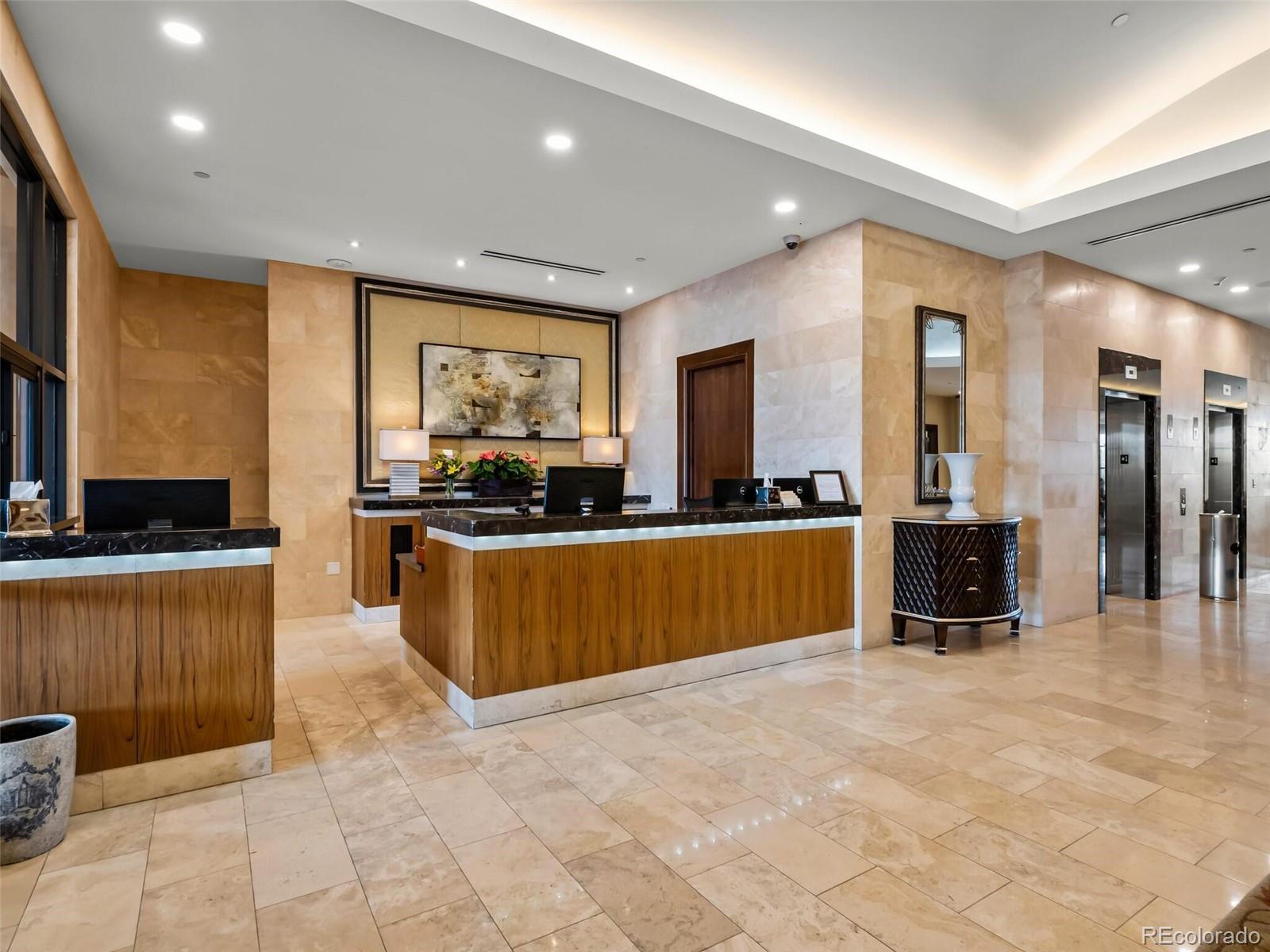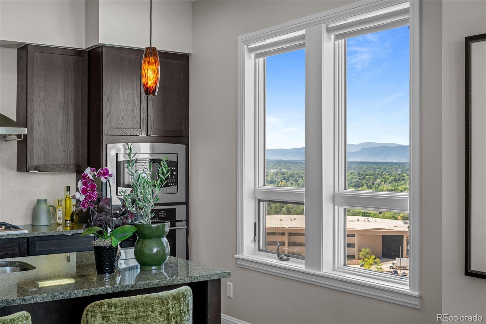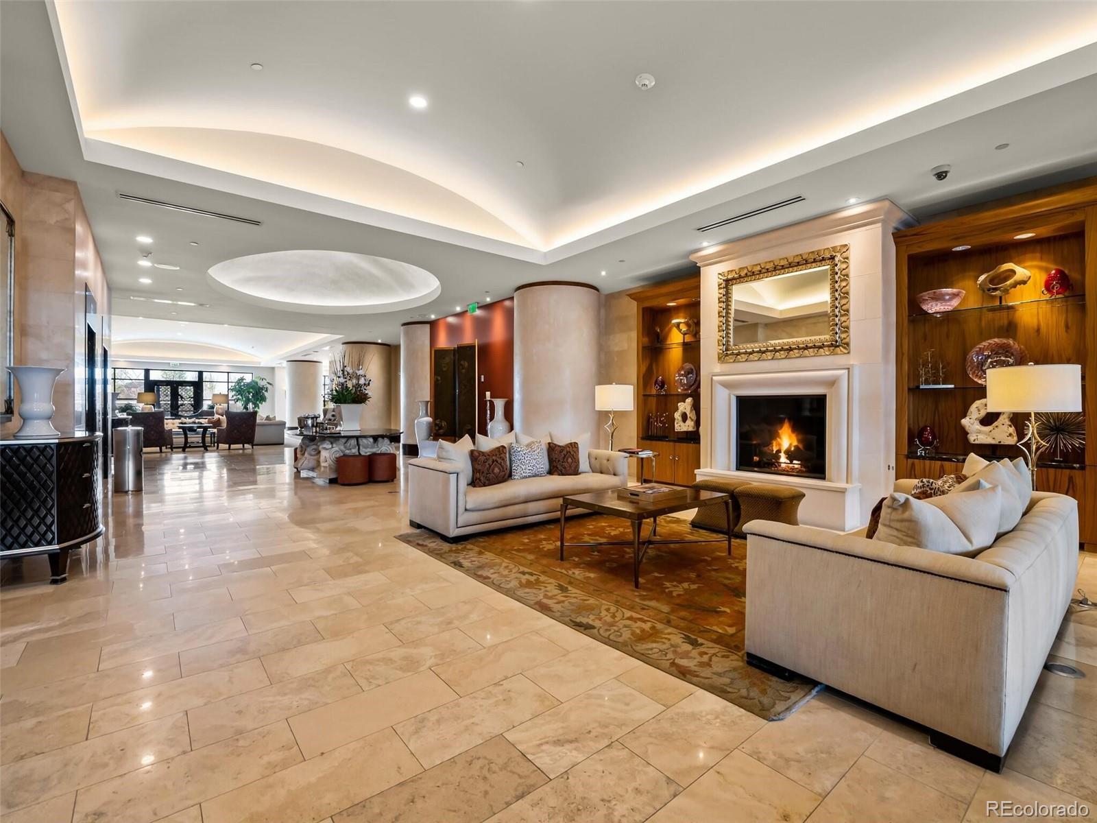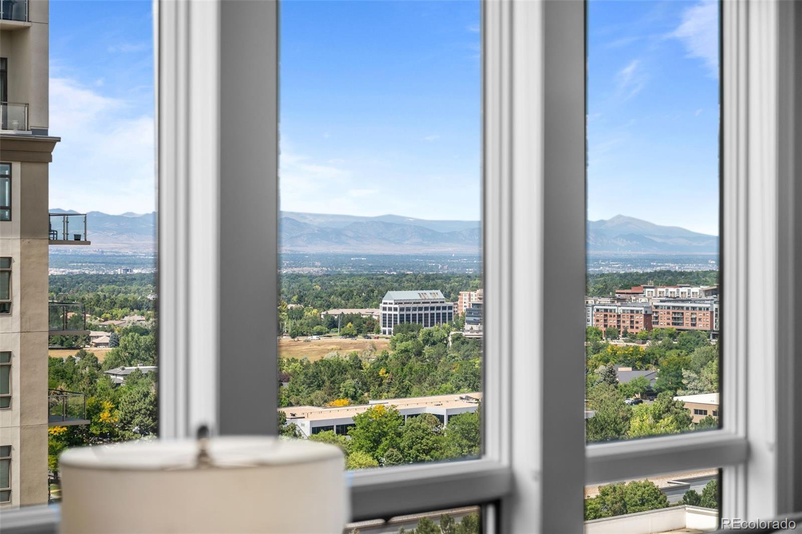 A Sophisticated Retreat with Breathtaking Views at The Landmark. Gracefully positioned on a coveted corner, this exceptional 2-bedroom, 2-bath residence at The Landmark is awash in natural light and framed by sweeping mountain and city vistas. Encompassing over 1,500 square feet of thoughtfully designed living space, the home exudes timeless elegance with soaring 10-foot ceilings, a welcoming stone-tiled foyer, rich hardwood flooring, and fresh designer paint throughout. The kitchen is both functional and refined, featuring a generous island with seating for four to five, seamlessly connecting to the expansive living and dining areas—ideal for effortless entertaining. The primary suite is an inviting sanctuary with panoramic views and direct access to a spacious, covered patio that also adjoins the main living area, offering a perfect setting for indoor-outdoor living. Additional conveniences include two assigned garage parking spaces and a storage unit. The Landmark redefines luxury living with a host of curated amenities designed for comfort, wellness, and community. From concierge and front desk services to serene patios with tranquil water features, toasty fire pits, every detail has been thoughtfully considered. Indulge in the spa experience with sauna and steam rooms, unwind in the club room with a full catering kitchen, or explore creative pursuits in the craft room and library. Wine connoisseurs will appreciate a temperature controlled wine storage room, while the media room offers the perfect escape for cinematic evenings. Just outside your doorstep, a world of convenience awaits: fine dining, boutique shopping, fitness studios, and a luxury cinema, all within a short stroll. With easy access to scenic trails, lush parks, and the natural beauty of Cherry Creek Reservoir, The Landmark offers an extraordinary lifestyle where sophistication meets simplicity.