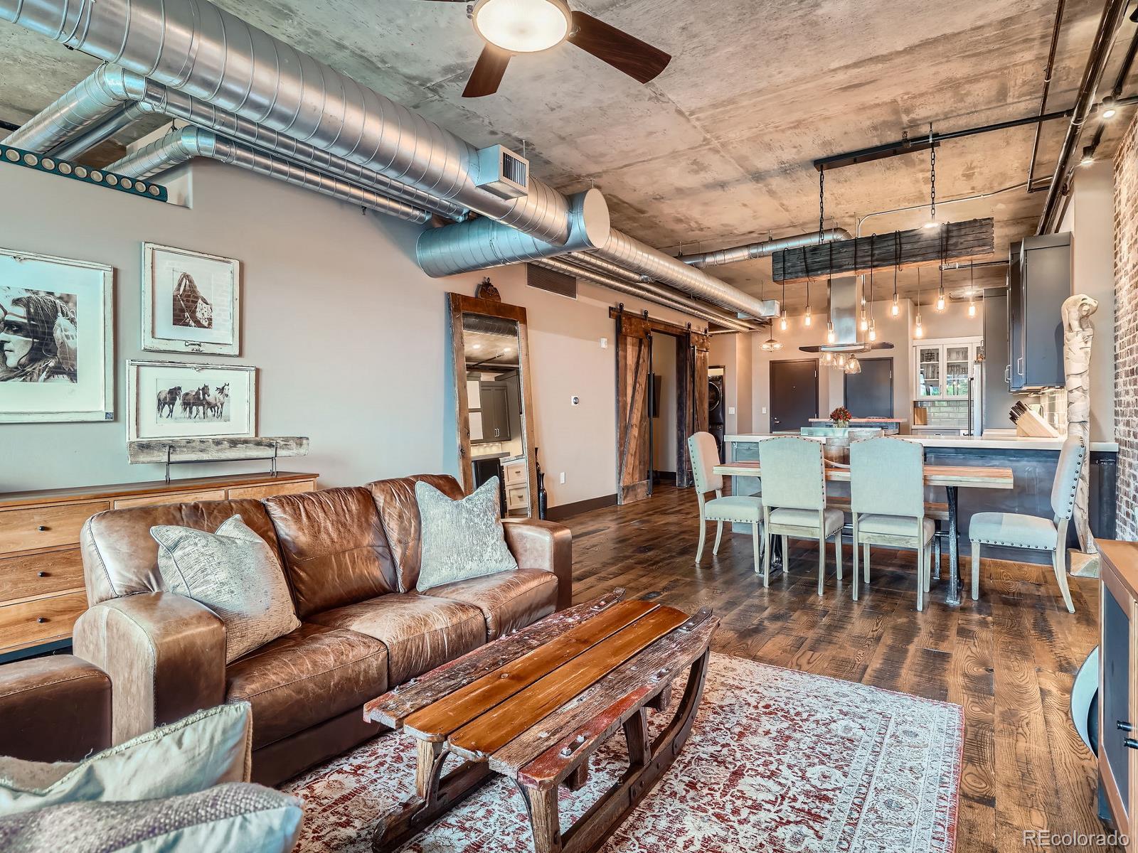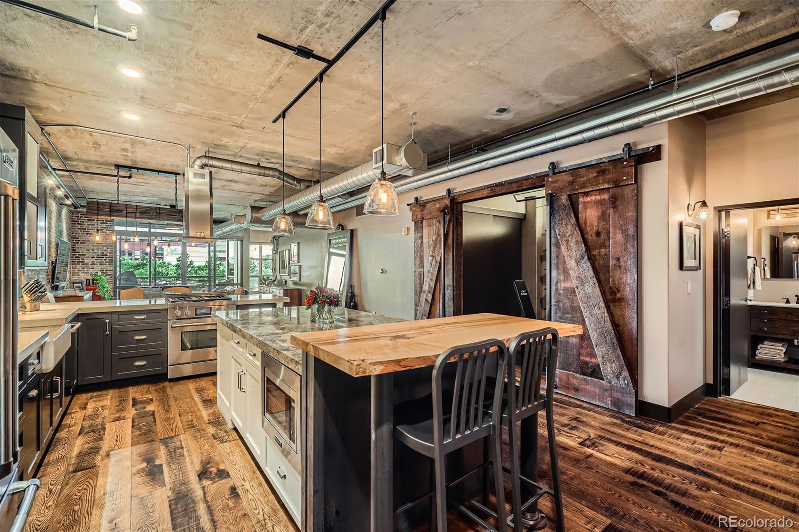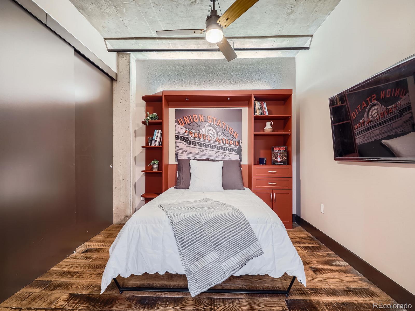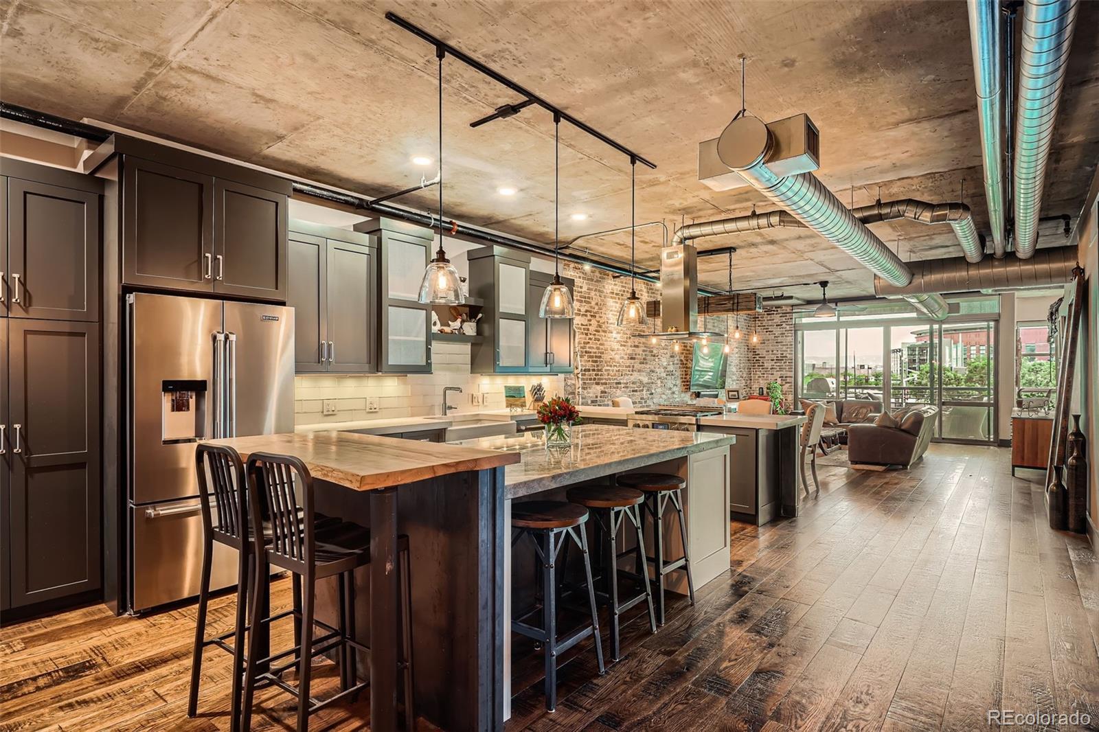 Discover an exceptional loft in the heart of LoDo—fully reimagined and ready to impress. This stylish Waterside Lofts residence blends modern luxury with timeless character, boasting more than $200k in recent upgrades. Inside, an airy open-concept layout sets the stage for effortless living and entertaining. The chef-inspired kitchen features custom maple cabinetry with extensive storage, sleek quartz countertops, a granite-and-butcher-block island, premium stainless steel appliances, a wet bar, and statement lighting that ties the space together beautifully. Wide 6” rough-cut white oak floors and a stunning tumbled brick accent wall add warmth and texture to the expansive dining and living areas. Step through to your private covered balcony, where sweeping views of Ball Arena, the Platte River, Cherry Creek Trail, and the Rocky Mountains await. The primary suite serves as a serene escape, offering two walk-in closets, a bright bonus space ideal for a home office or reading corner, and a spa-like en suite bath with a custom walk-in shower. The versatile second bedroom—enclosed with rustic barn doors—features a full wall of closets and a built-in Murphy bed, making it perfect for guests, work, or workouts. A second full bath with updated lighting and a modern vanity completes the home. Step outside and enjoy instant access to the Cherry Creek Trail, along with close proximity to Union Station, Ball Arena, Coors Field, 16th Street Mall, Elitch Gardens, Bellco Theater, and Denver’s top dining and entertainment destinations. This one-of-a-kind loft offers unmatched style and an unbeatable location. Schedule your private tour today!