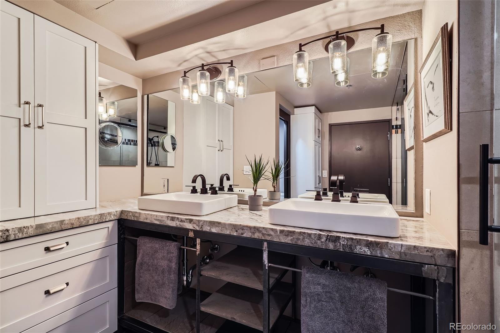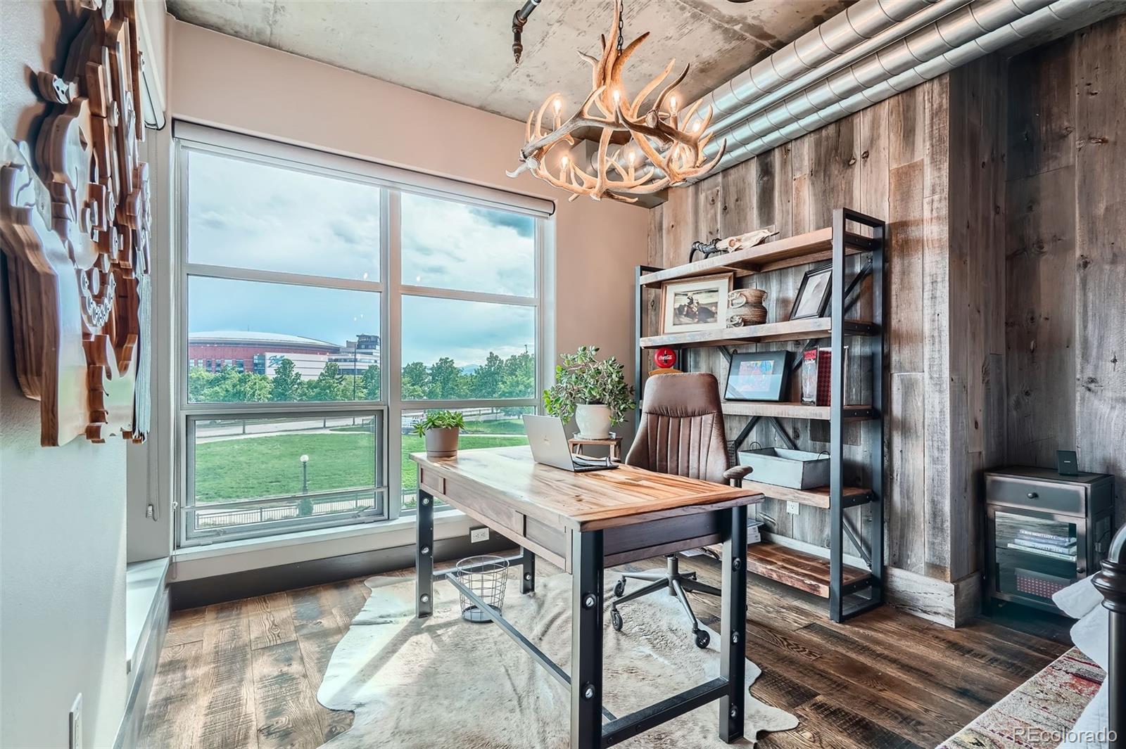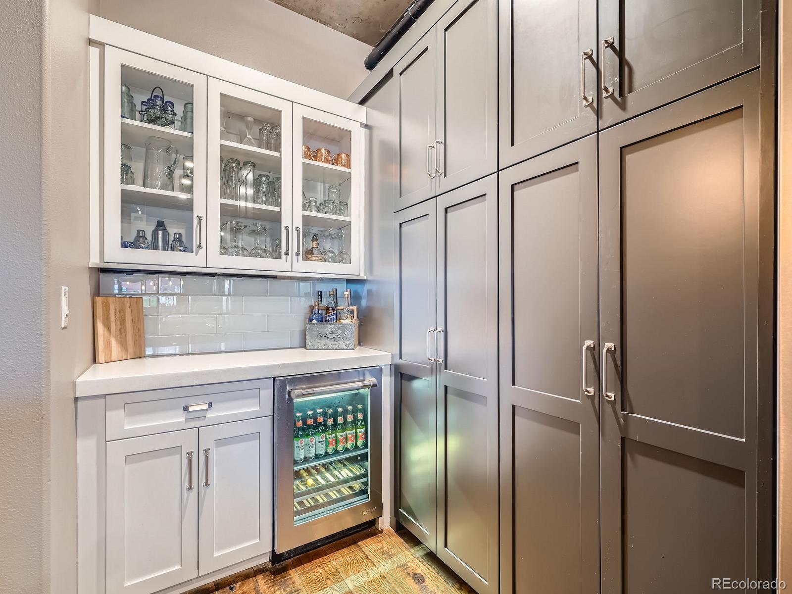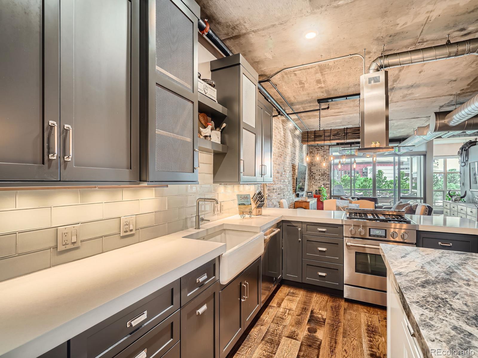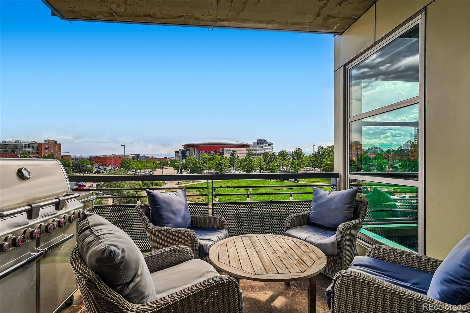 Discover an exceptional loft in the heart of LoDo—fully reimagined and ready to impress. This stylish Waterside Lofts residence blends modern luxury with timeless character, boasting more than $200k in recent upgrades. Inside, an airy open-concept layout sets the stage for effortless living and entertaining. The chef-inspired kitchen features custom maple cabinetry with extensive storage, sleek quartz countertops, a granite-and-butcher-block island, premium stainless steel appliances, a wet bar, and statement lighting that ties the space together beautifully. Wide 6” rough-cut white oak floors and a stunning tumbled brick accent wall add warmth and texture to the expansive dining and living areas. Step through to your private covered balcony, where sweeping views of Ball Arena, the Platte River, Cherry Creek Trail, and the Rocky Mountains await. The primary suite serves as a serene escape, offering two walk-in closets, a bright bonus space ideal for a home office or reading corner, and a spa-like en suite bath with a custom walk-in shower. The versatile second bedroom—enclosed with rustic barn doors—features a full wall of closets and a built-in Murphy bed, making it perfect for guests, work, or workouts. A second full bath with updated lighting and a modern vanity completes the home. Step outside and enjoy instant access to the Cherry Creek Trail, along with close proximity to Union Station, Ball Arena, Coors Field, 16th Street Mall, Elitch Gardens, Bellco Theater, and Denver’s top dining and entertainment destinations. This one-of-a-kind loft offers unmatched style and an unbeatable location. Schedule your private tour today!