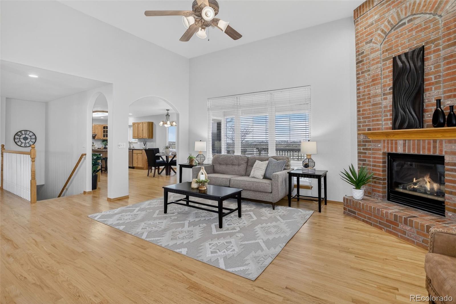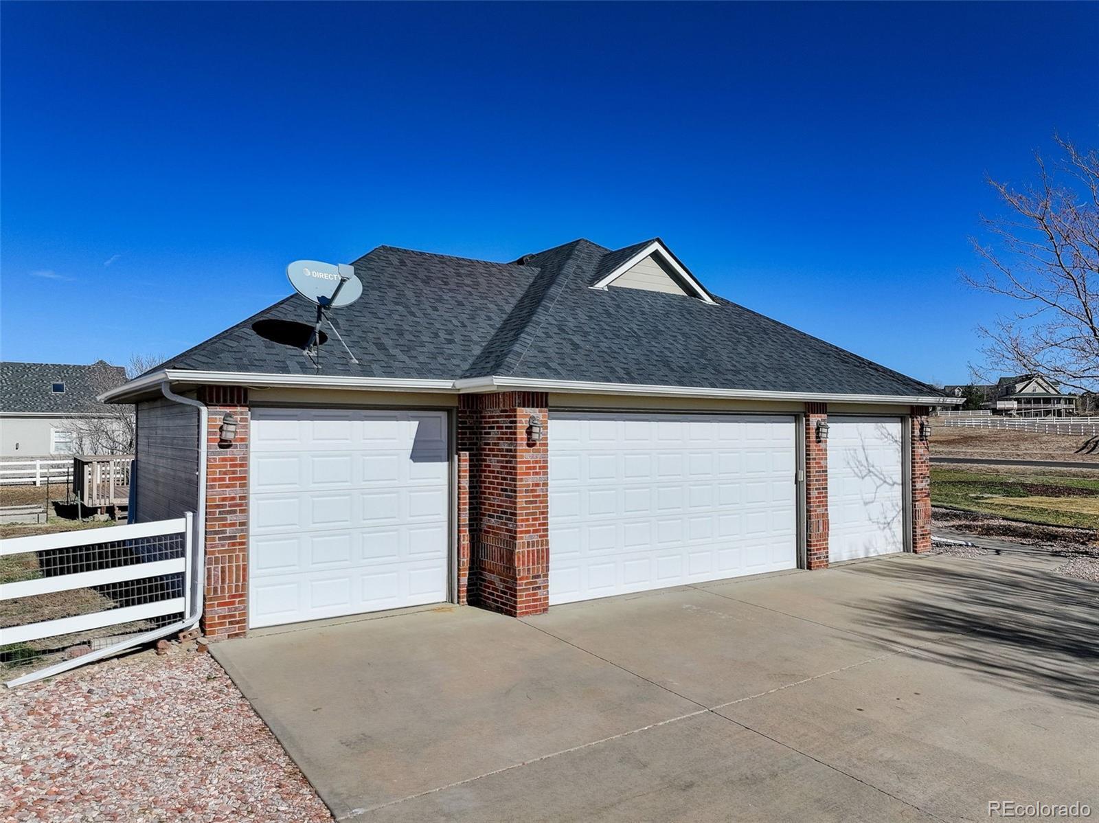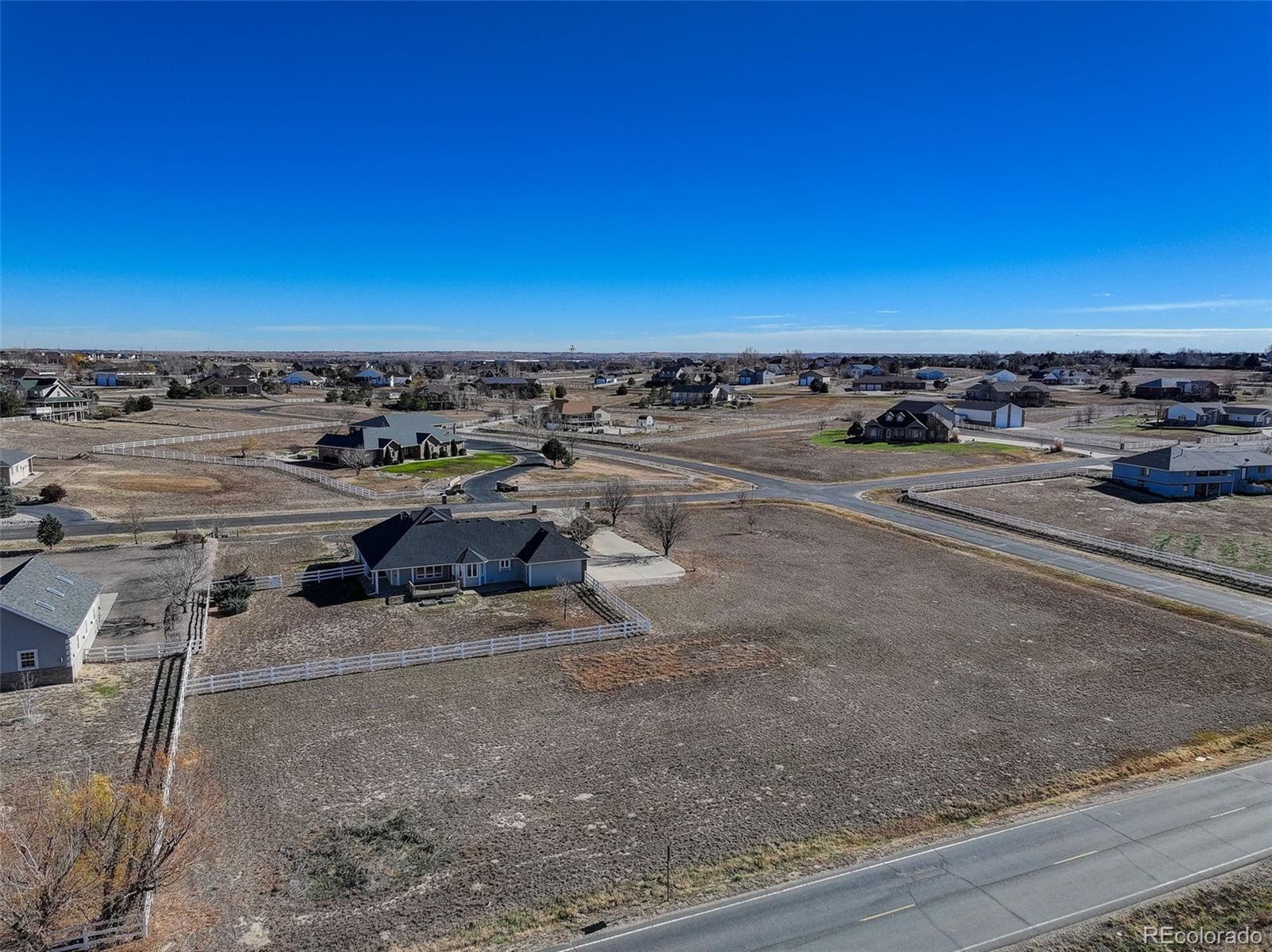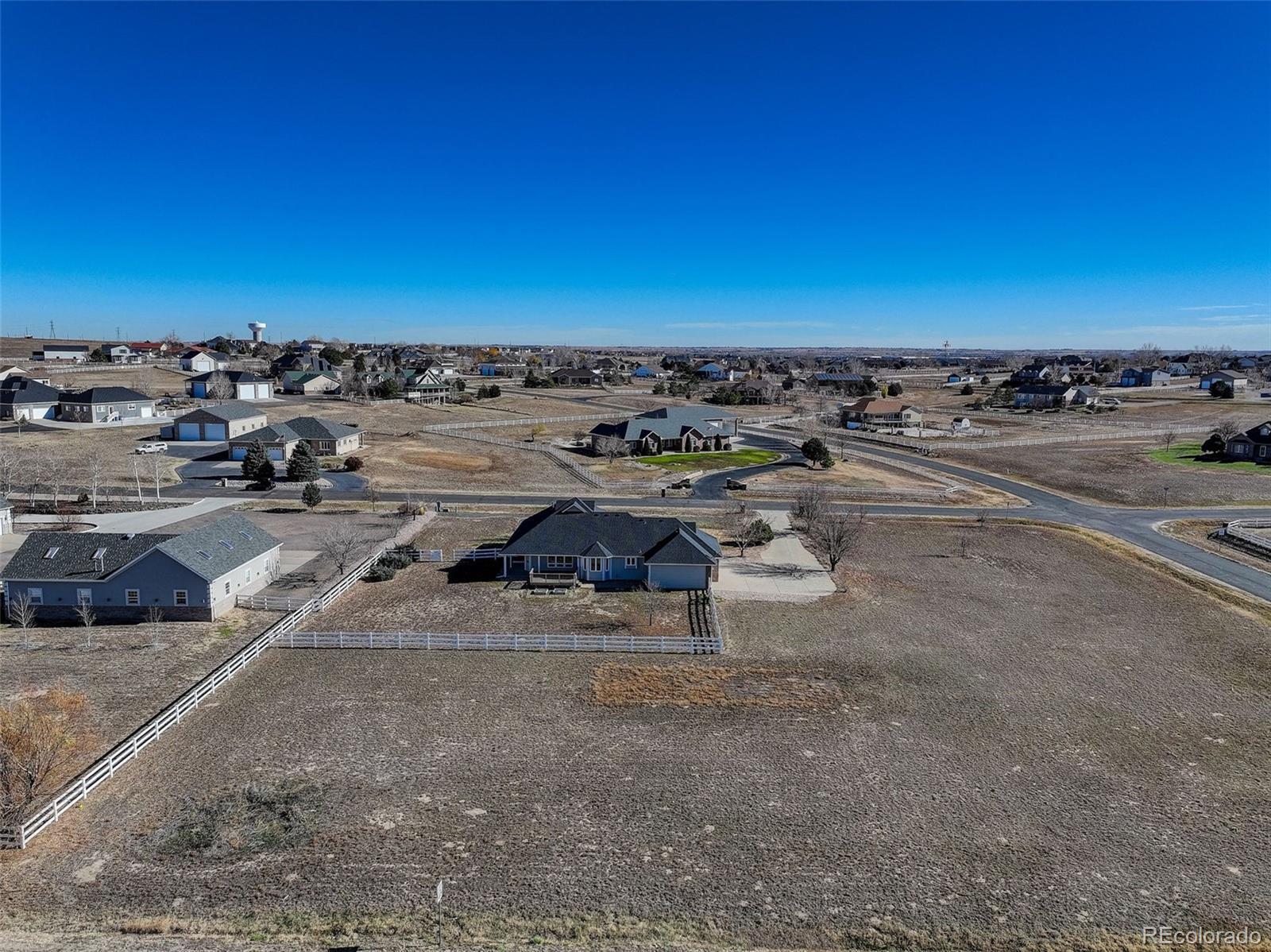 Take in sweeping, unobstructed Front Range views from this beautifully refinished ranch-style home on two acres in the desirable Jacobs Run subdivision—with no HOA fee. Built in 1999 and offering over 2,300 square feet, the home has been resurfaced top to bottom with new interior paint, newly refinished hardwoods, and brand-new carpet. Step into an open, airy floor plan anchored by a striking floor-to-ceiling fireplace and vaulted ceilings in the living room. The expansive kitchen features granite countertops, generous cabinet space, a large pantry, a bright eating nook, and even a convenient built-in desk. The primary suite offers mountain views, private deck access, excellent natural light, and a spacious bath with double vanities, a soaking tub, a separate shower, and an extensive walk-in closet. Two additional bedrooms, each newly carpeted, provide plenty of comfortable living space. A sizeable mudroom/laundry room connects directly to the oversized three-car garage, making everyday living easy and efficient. Immaculately maintained and newly refinished, this home is the perfect blend of comfort, space, and breathtaking scenery. Come see all that this beautiful property has to offer.