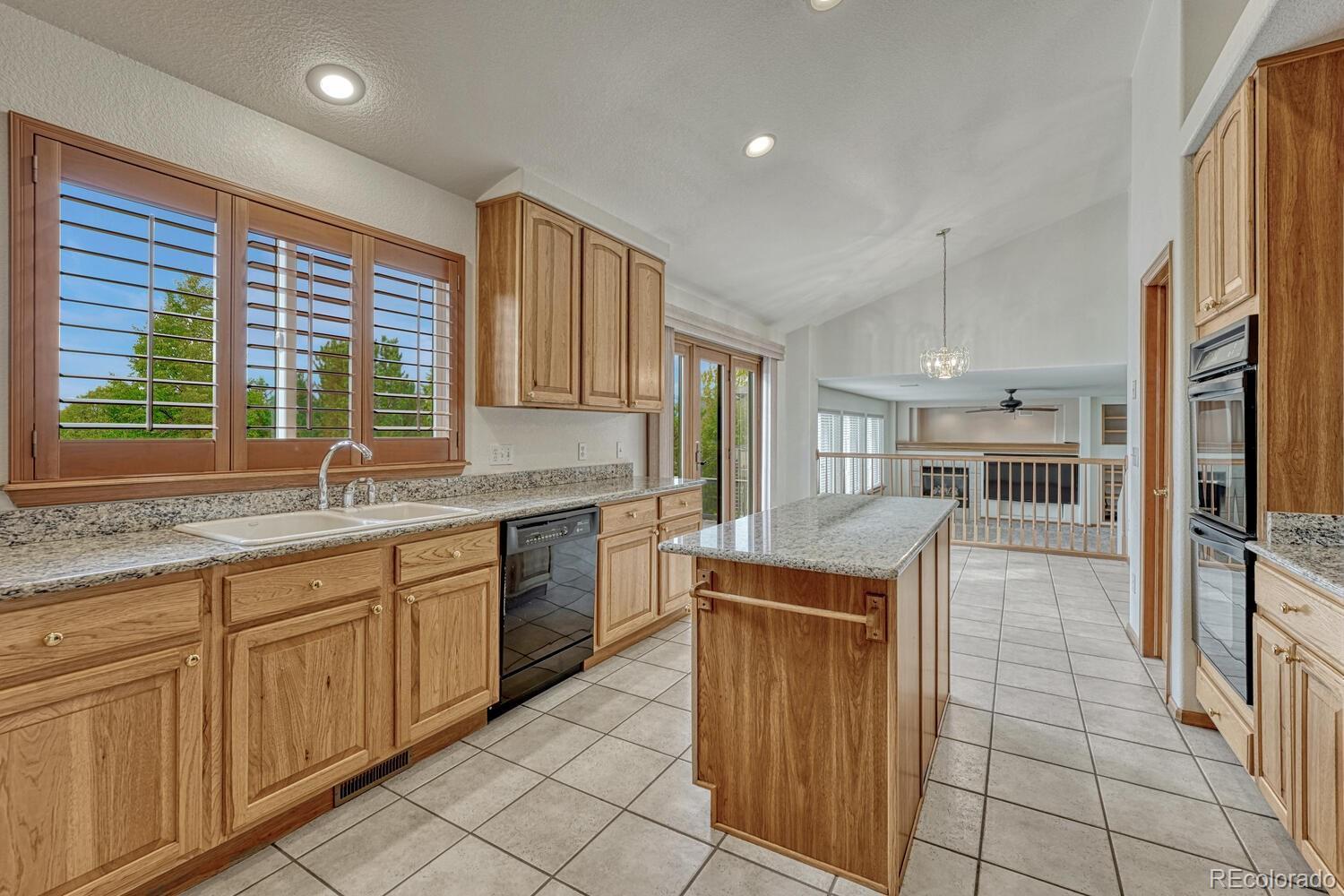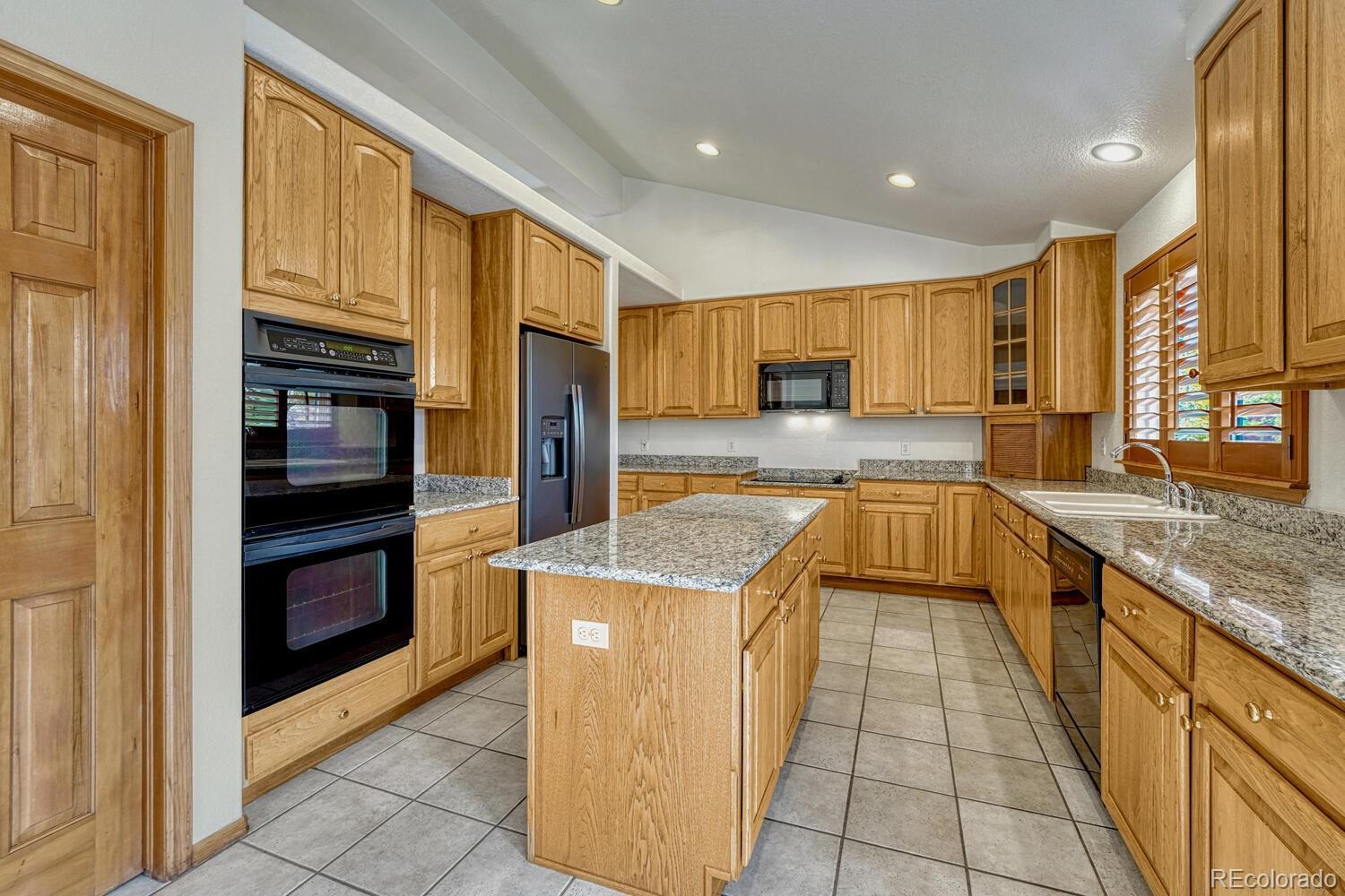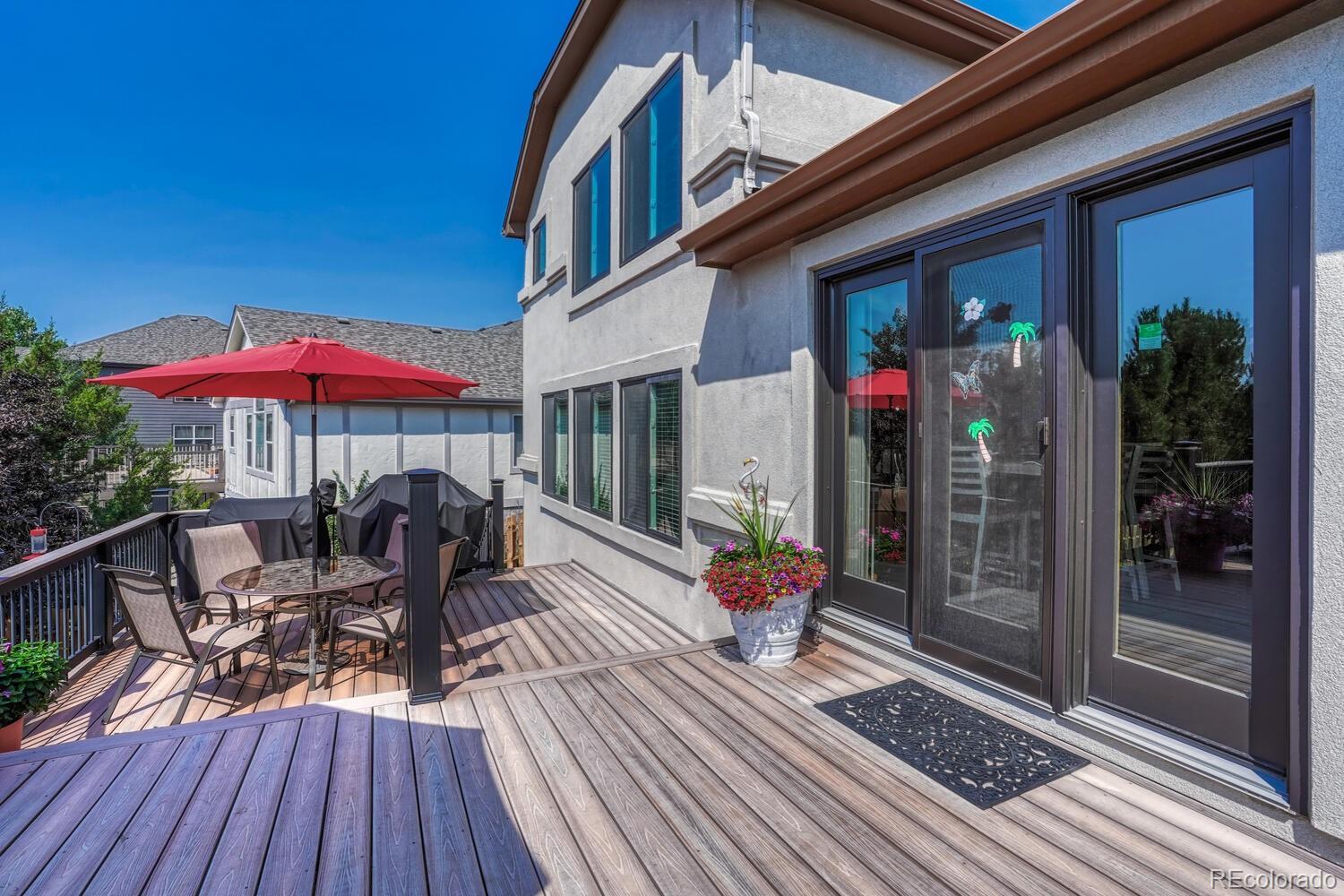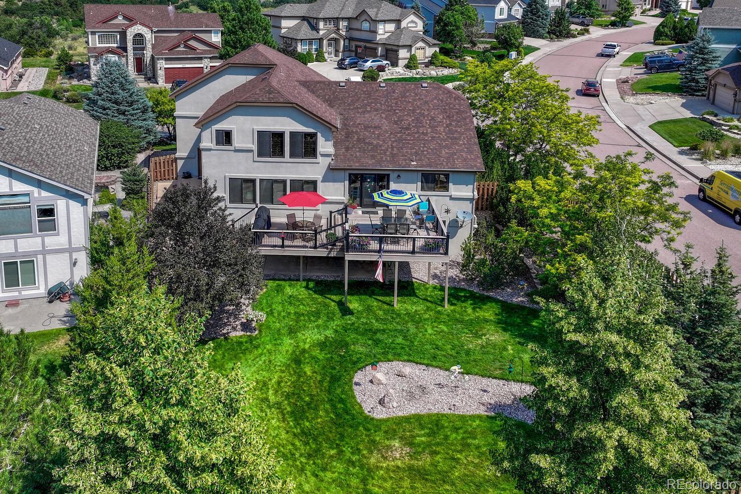 Impeccably maintained and beautifully appointed, this stunning 6-bedroom, 4-bath home offers over 4,100 square feet of elegant living space in a peaceful cul-de-sac location. Adjacent to acres of open space with scenic hiking trails, a creek, and a tranquil pond, as well as tons of restaurants and entertainment, this property perfectly balances nature and convenience. Step inside to soaring vaulted ceilings and an abundance of natural light pouring through upgraded high-end windows installed just four years ago. The open layout flows seamlessly from the formal living and dining areas into a spacious kitchen featuring granite countertops, double ovens, and extensive cabinetry—perfect for entertaining. The kitchen walks out to a sprawling custom deck overlooking pristine landscaping, mature trees, and expansive mountain views. The family room offers warmth and comfort with a cozy fireplace and tons of windows for natural light. Upstairs, the primary suite is a true retreat with breathtaking mountain views, a huge walk-in closet, and a fully remodeled spa-like bathroom showcasing granite counters, dual sinks, a soaking tub, and an oversized glass shower. Downstairs, the fully finished basement is an entertainer’s dream, complete with a 20-foot custom wet bar designed in the style of an English pub—ideal for hosting gatherings or relaxing with friends. Additional highlights include high-end plantation blinds, ample storage in the 5' tall sealed crawlspace, a huge 3-car garage, and a lush backyard oasis that’s both inviting and low-maintenance. From top to bottom, every detail of this home reflects quality, care, and pride of ownership. Enjoy Colorado living at its finest—peaceful views, convenient to shopping and fun, outdoor adventure just steps away, and an exceptional home ready for its next chapter.